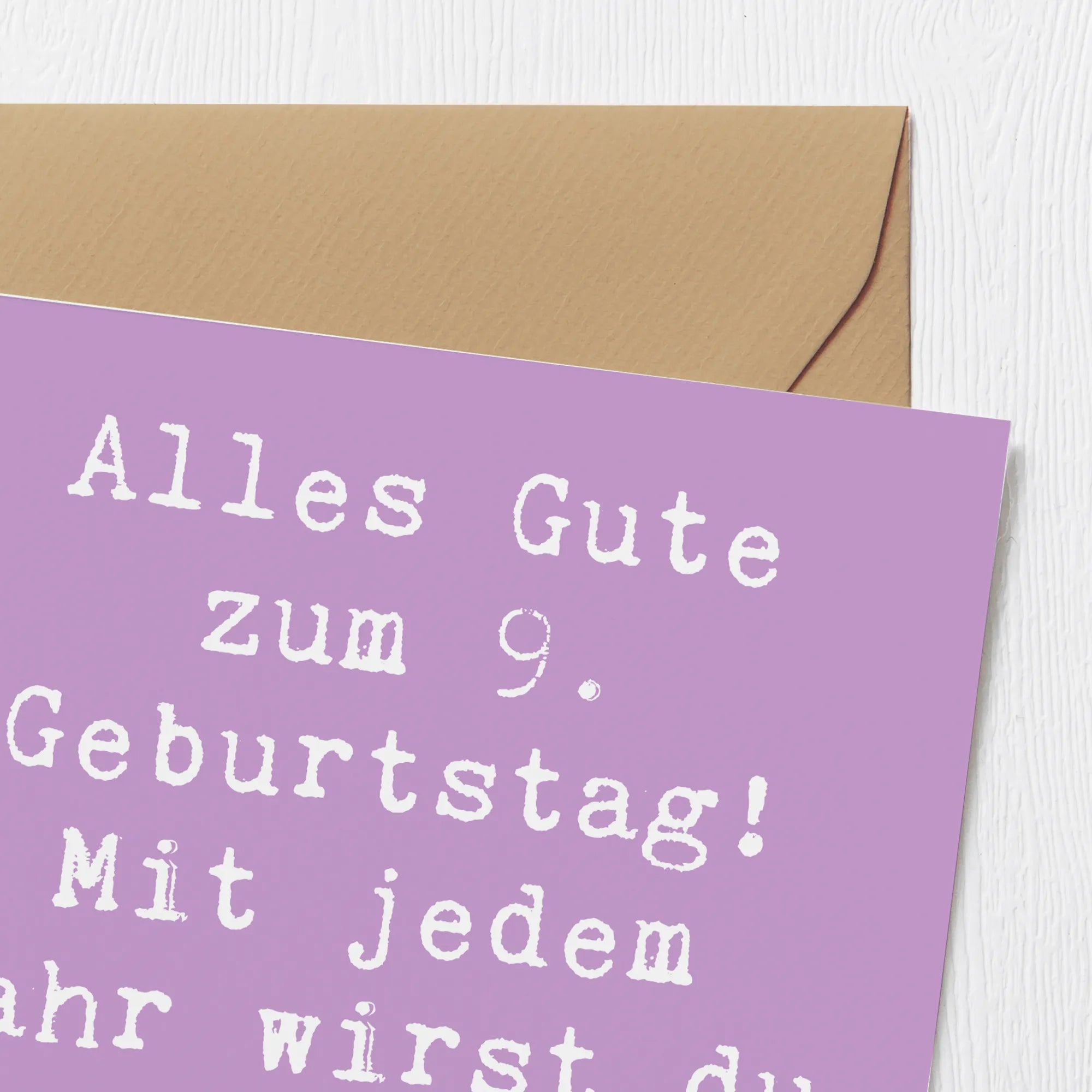 Diese wunderschöne quadratische Karte misst 140 mm x 140 mm und besteht aus edlem 300 Gramm Karton. Der hohe Papierqualität sorgt dafür, dass die Karte nicht nur schön aussieht, sondern sich auch wunderbar anfühlt. Auf der Vorderseite der Karte prangt der liebevolle Spruch: Alles Gute zum 9. Geburtstag! Mit jedem Jahr wirst du klüger und strahlender! – eine perfekte Botschaft, die das Geburtstagskind sicher zum Strahlen bringen wird.