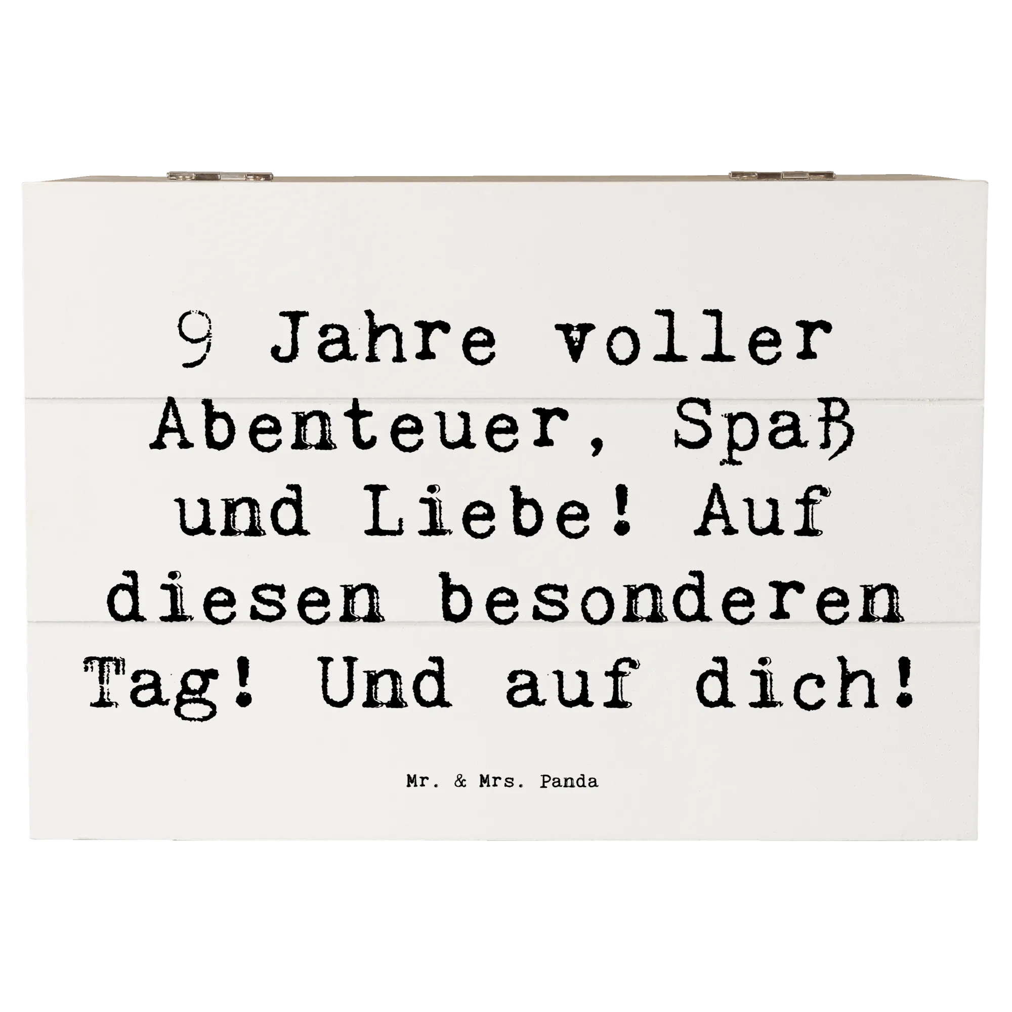 Holzkiste Spruch 9. Geburtstag Abenteuer - 22 x 15 cm - Weiß