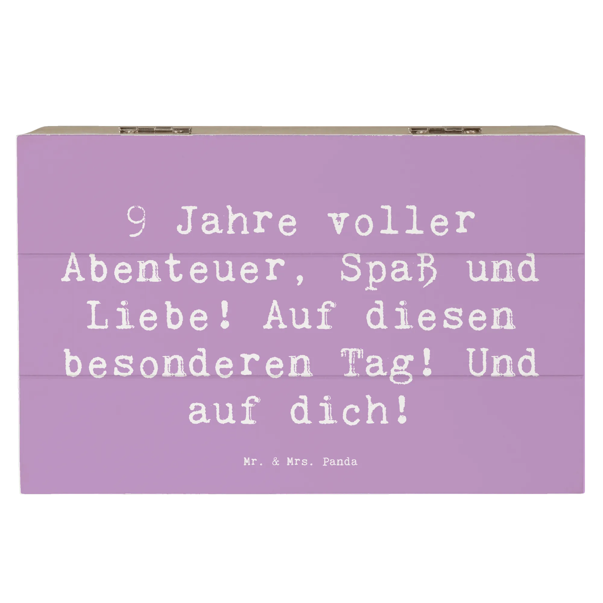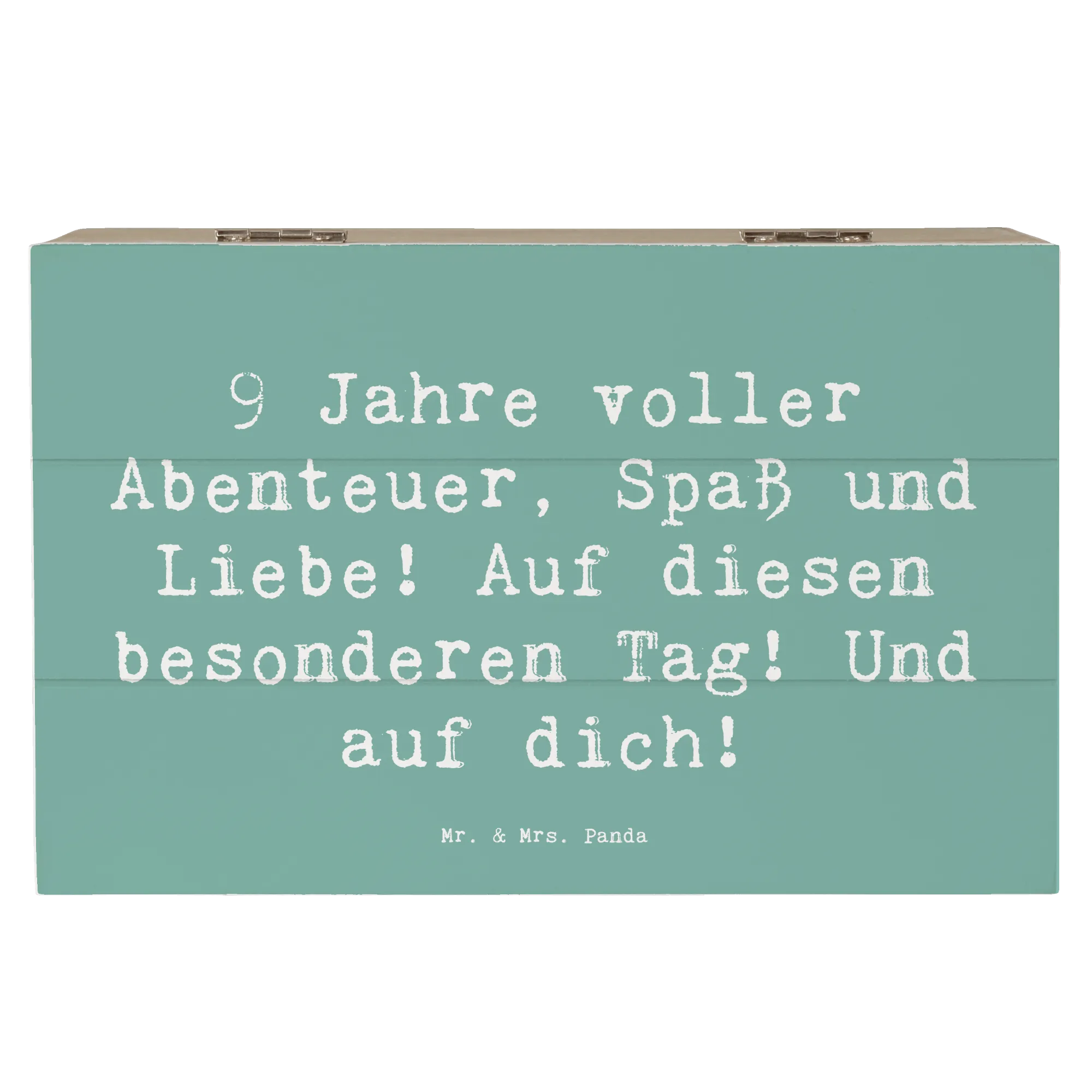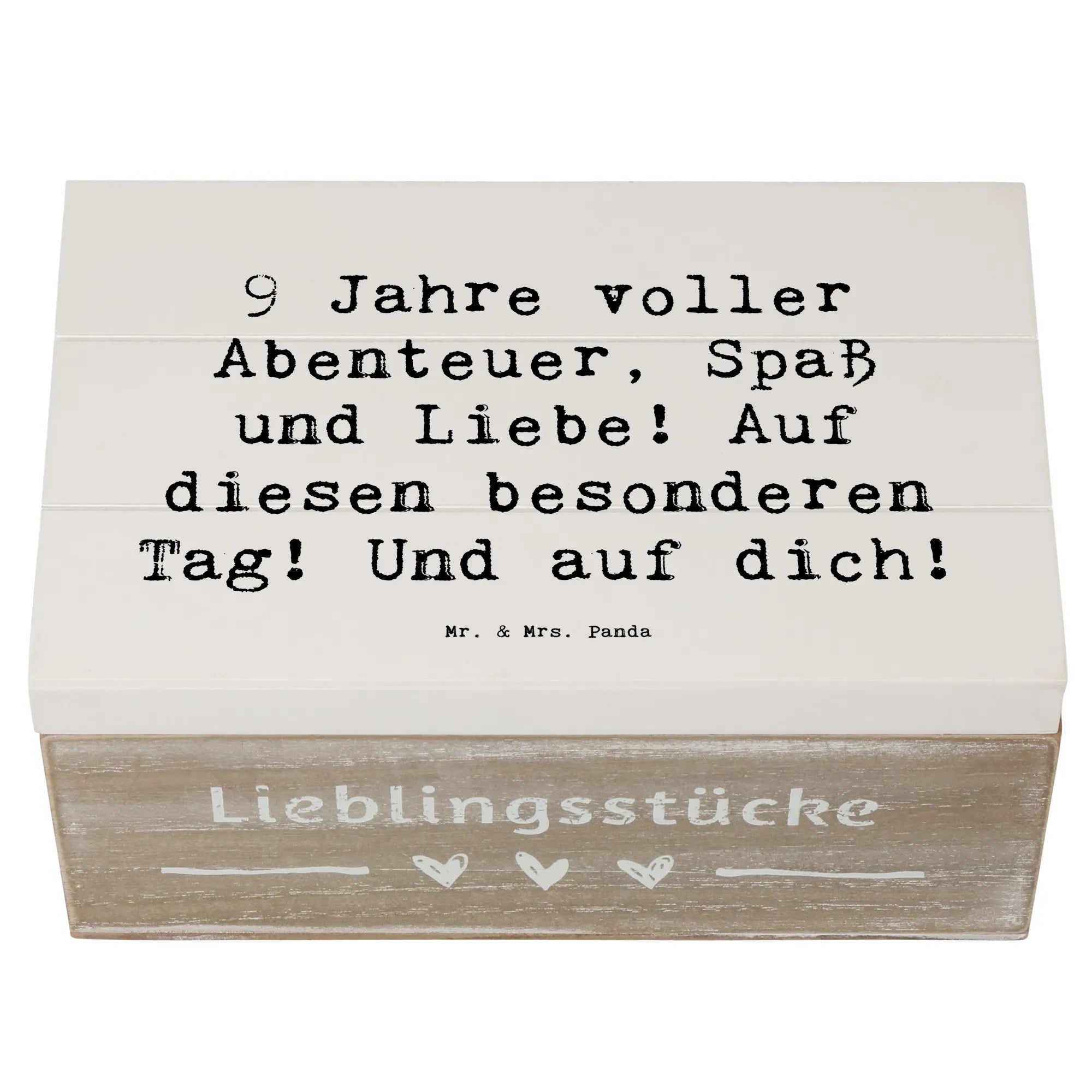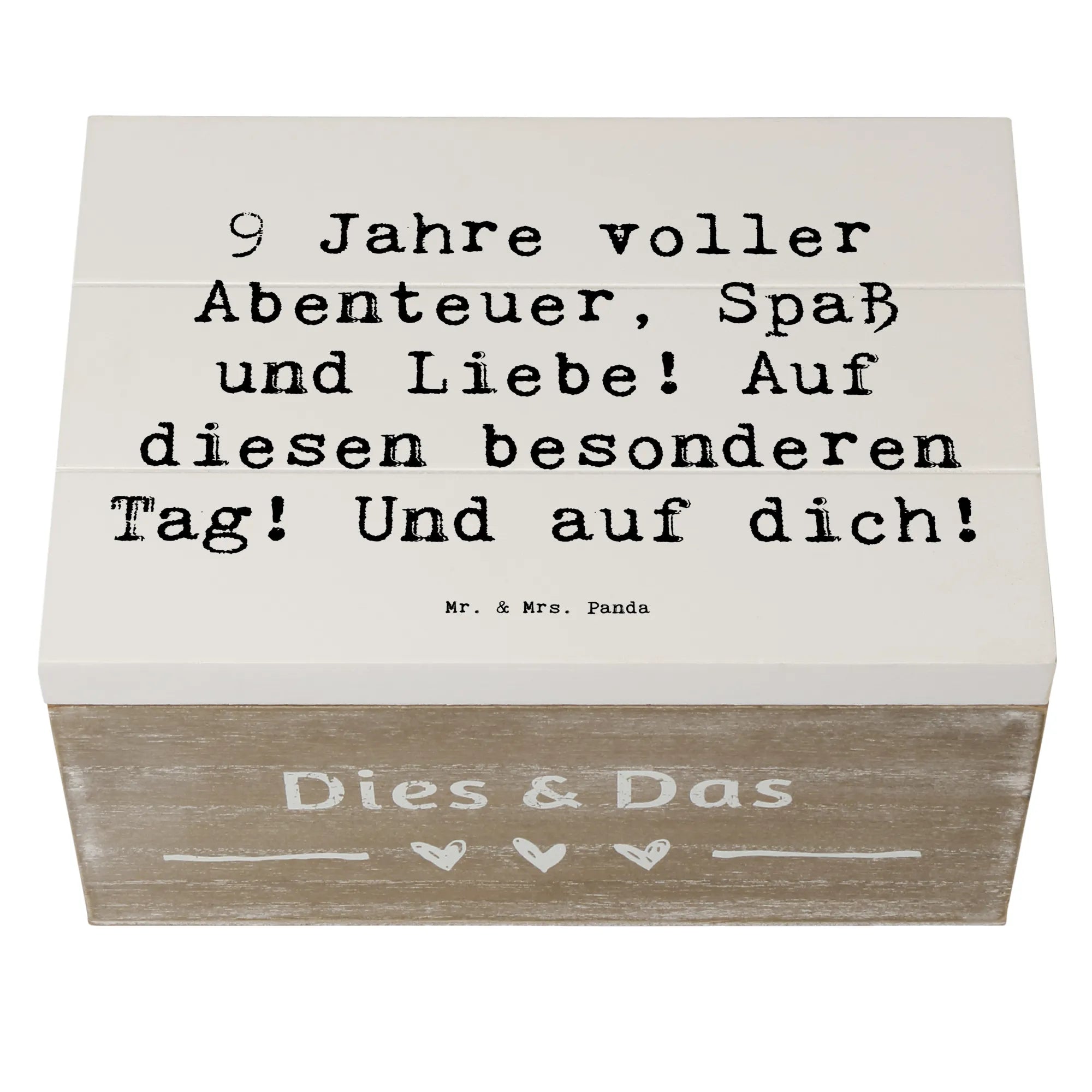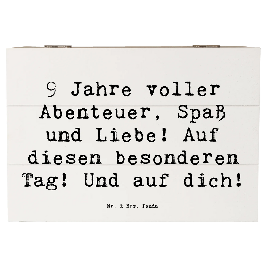 Die wunderschöne Holzkiste von Mr. & Mrs. Panda ist das perfekte Geschenk zum 9. Geburtstag und bringt Freude und Liebe in jeden Raum. Diese liebevoll gestaltete Kiste ist nicht nur praktisch, sondern auch ein echter Hingucker. Mit dem Spruch "9 Jahre voller Abenteuer, Spaß und Liebe! Auf diesen besonderen Tag! Und auf dich!" wird jeder, der diese Kiste erhält, an unvergessliche Momente seiner Kindheit erinnert.