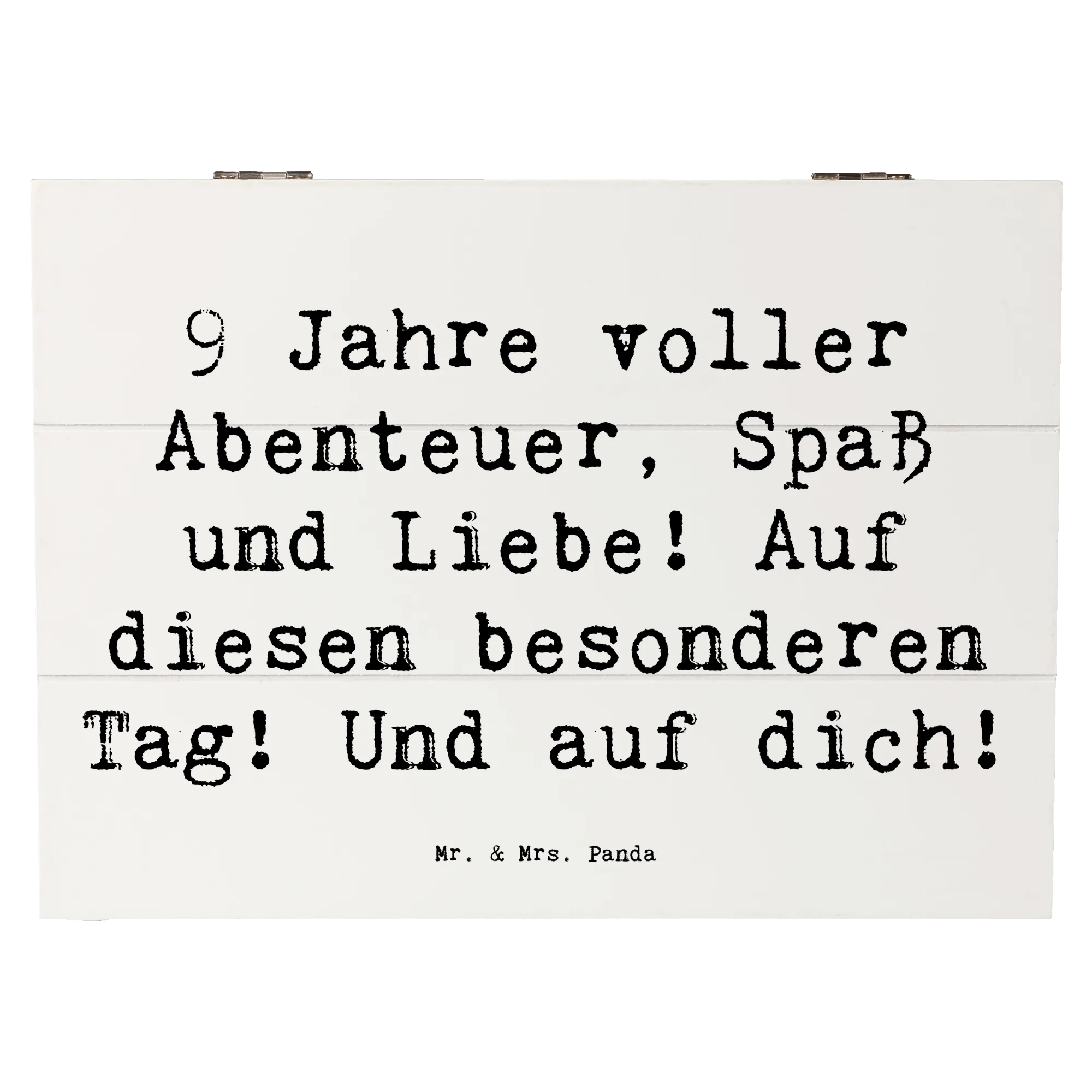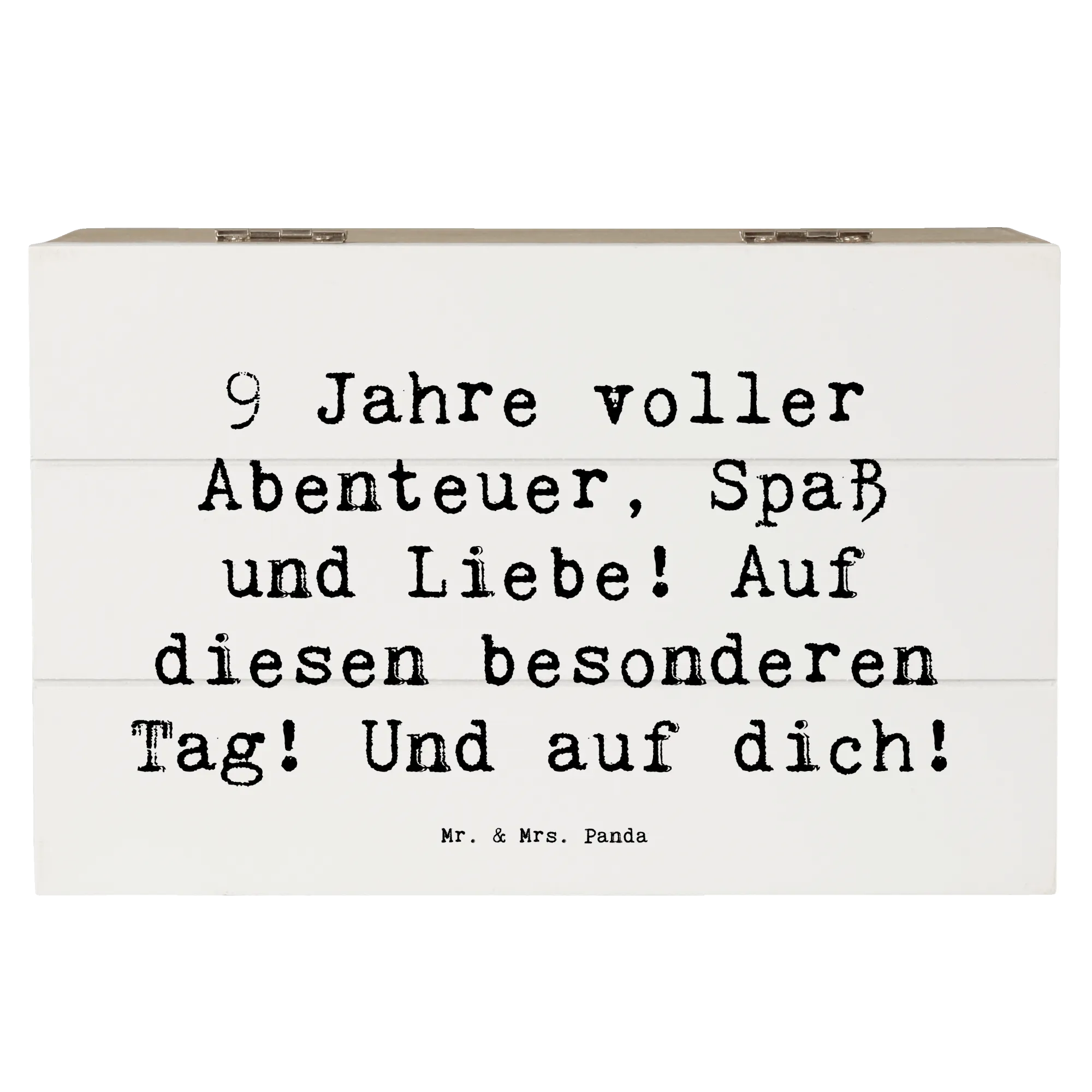 Die wunderschöne Holzkiste von Mr. & Mrs. Panda zum 9. Geburtstag ist das perfekte Geschenk für kleine Abenteurer und Abenteurerinnen! Mit ihrem fröhlichen Motiv '9 Jahre voller Abenteuer, Spaß und Liebe! Auf diesen besonderen Tag! Und auf dich!' verbreitet sie Freude und Erinnerungen.