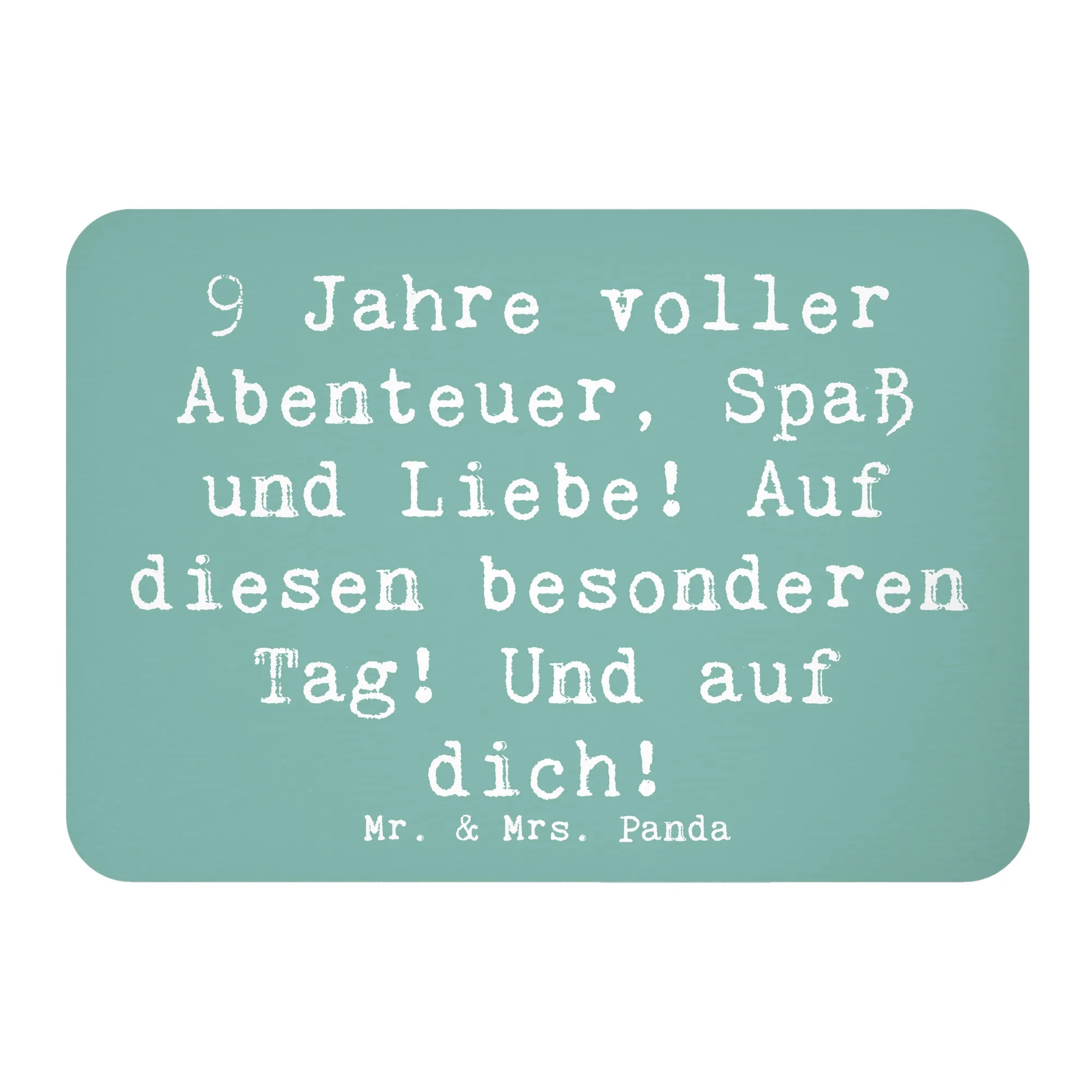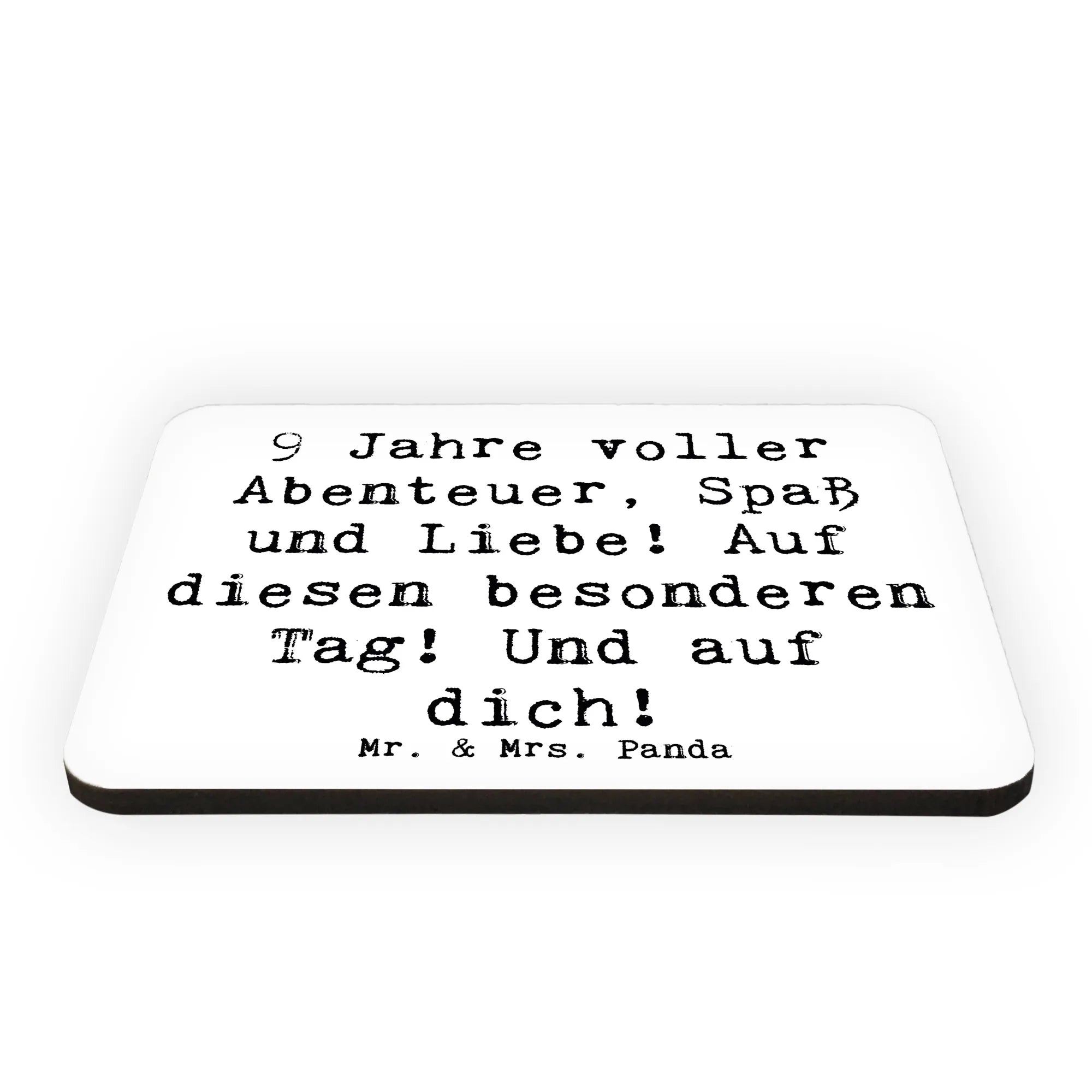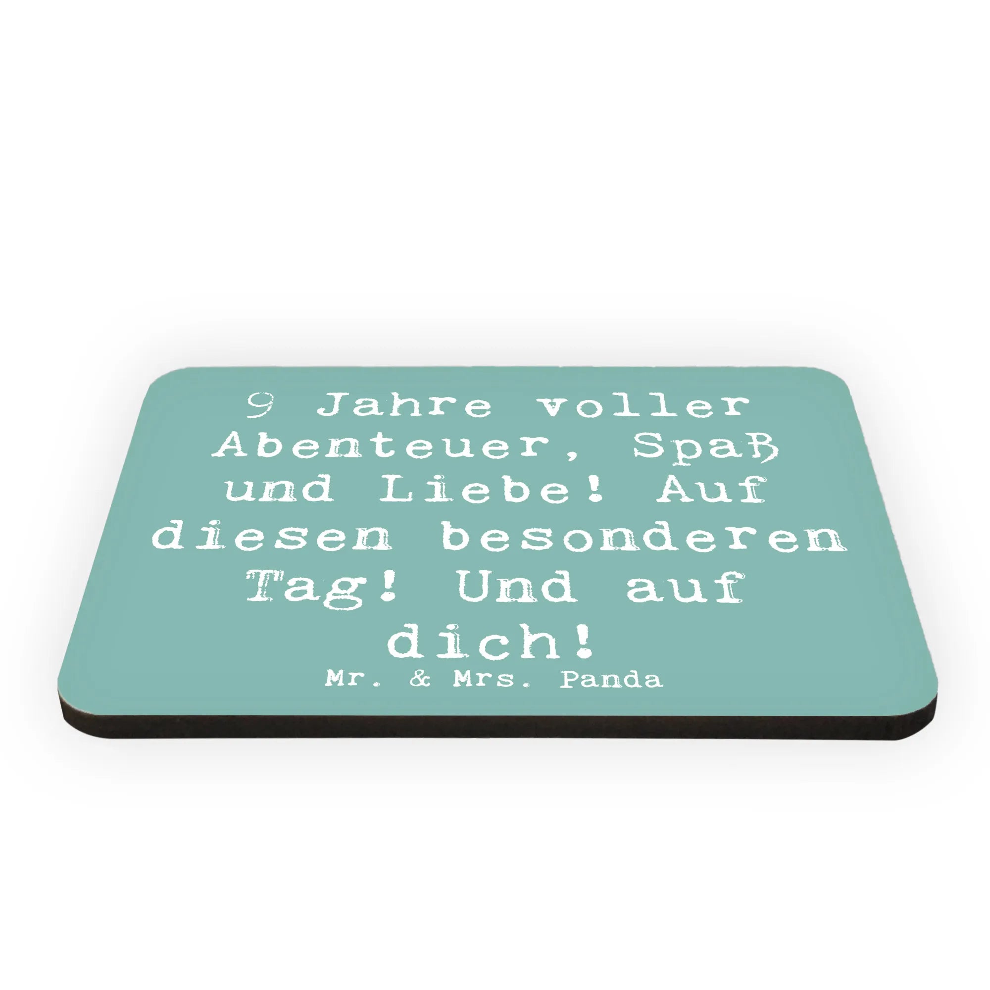 Der Kühlschrankmagnet zum 9. Geburtstag von Mr. & Mrs. Panda ist das perfekte Geschenk für alle, die diesen besonderen Tag feiern möchten! Mit dem liebevoll gestalteten Motiv zeigen wir, wie aufregend und voller Abenteuer die letzten 9 Jahre waren.