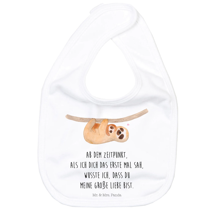 Das bezaubernde Design zeigt ein Faultier, das sich an einen Ast klammert, während sein putziges Baby ganz friedlich schläft. Die Szene strahlt pure Geborgenheit und Liebe aus und ist besonders für Mama und Papa von Bedeutung. Mit dem herzlichen Slogan 'Ab dem Zeitpunkt, als ich dich das erste Mal sah, wusste ich, dass du meine große Liebe bist.' wird dieses Lätzchen zu einem unvergesslichen Andenken an den ersten Lebensmonat deines kleinen Lieblings.