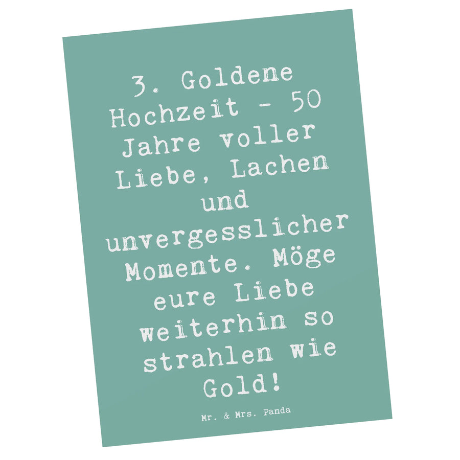 Entdecke die perfekte Postkarte zur Feier des 50. Hochzeitstags - der Goldenen Hochzeit! Diese einzigartige Postkarte von Mr. & Mrs. Panda bringt mit ihrem liebevollen Slogan "50 Jahre voller Liebe, Lachen und unvergesslicher Momente. Möge eure Liebe weiterhin so strahlen wie Gold!" die Herzen von Jubilaren zum Schmelzen.