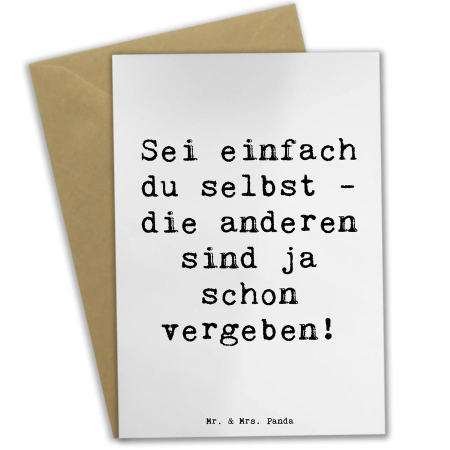 Der spritzige Spruch "Sei einfach du selbst - die anderen sind ja schon vergeben!" wird jedem ein Lächeln ins Gesicht zaubern. Die Karte hat die idealen Maße von 148 mm x 105 mm und bietet damit genügend Platz auf der blanko Innenseite für persönliche Botschaften und individuelle Grüße.