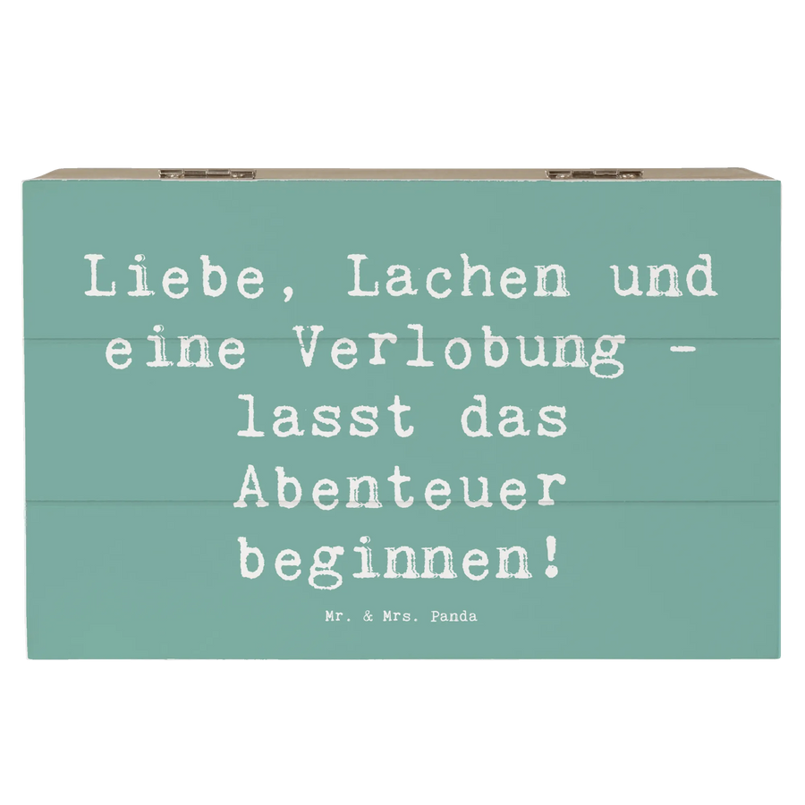 Du bist auf der Suche nach dem perfekten Geschenk für eine Verlobungsfeier? Dann ist die wunderschöne Holzkiste von Mr. & Mrs. Panda genau das richtige für dich! Mit dem liebevollen Motiv "Verlobungsfeier" und dem Spruch "Liebe, Lachen und eine Verlobung - lasst das Abenteuer beginnen!" ist sie ein Highlight für jedes künftige Brautpaar. Diese Holzkiste ist nicht nur stabil und nachhaltig, sondern auch ein idealer Aufbewahrungsort für all die besonderen Dinge, die während der Hochzeitsvorbereitungen oder bei der Verlobung gesammelt werden.