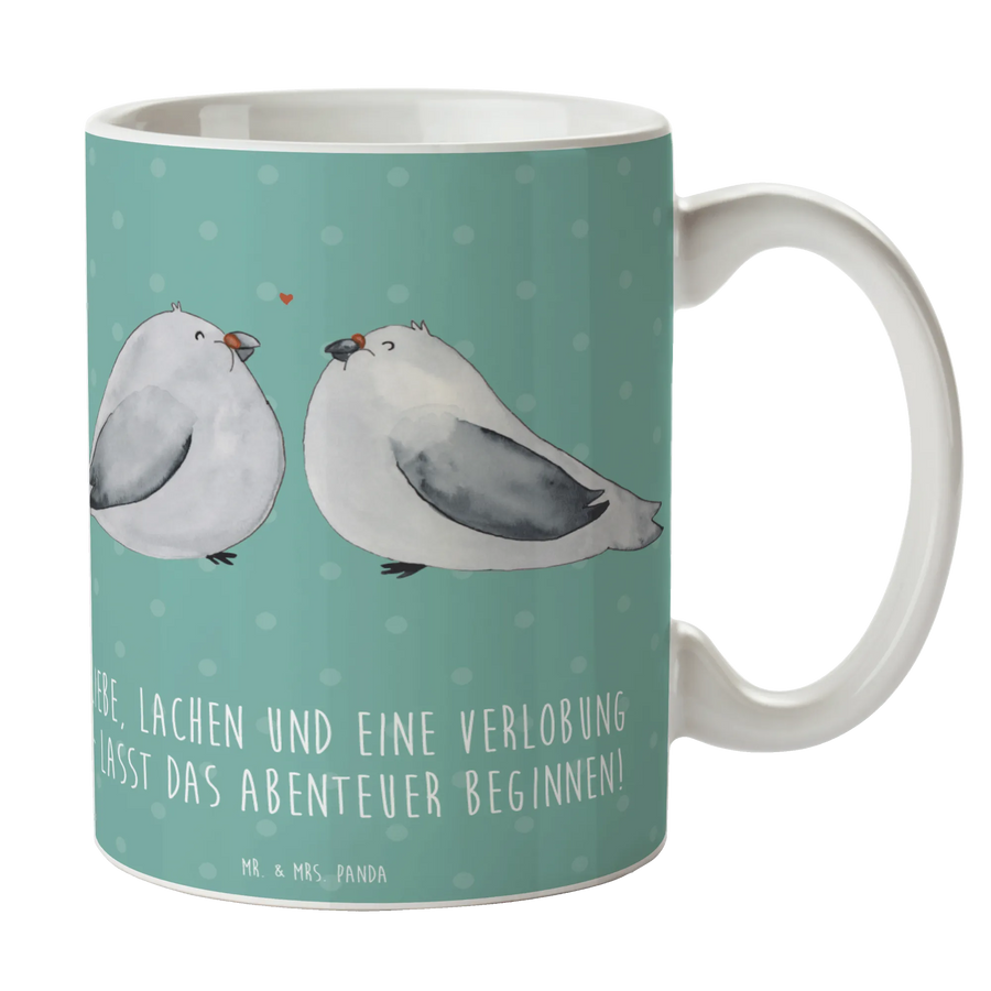 Suchst Du das perfekte Geschenk zur Verlobung? Dann schau Dir die wunderschöne Tasse "Verlobungsfeier" von Mr. & Mrs. Panda an!