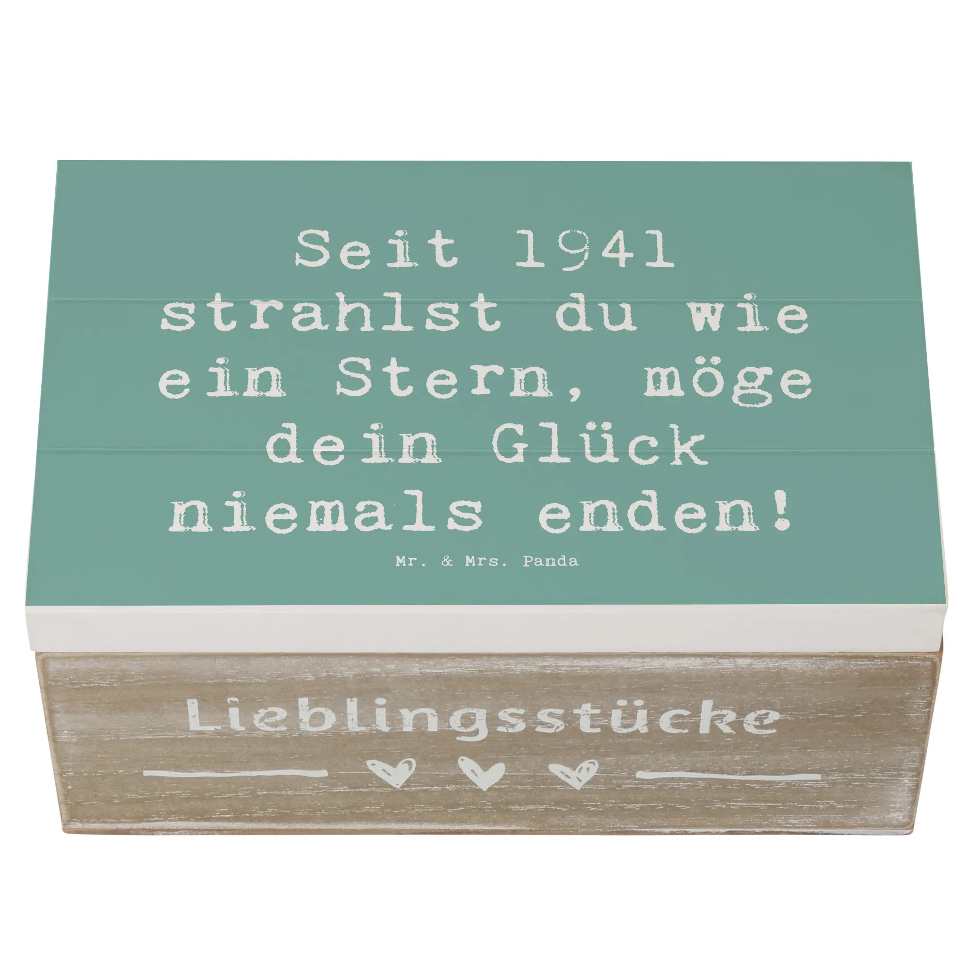 Die wunderschöne Holzkiste von Mr. & Mrs. Panda ist das perfekte Geschenk für all diejenigen, die 1941 das Licht der Welt erblickt haben. Mit dem liebevoll gestalteten Spruch "Seit 1941 strahlst du wie ein Stern, möge dein Glück niemals enden!" wird diese Erinnerungskiste zu einem ganz besonderen Schatz.