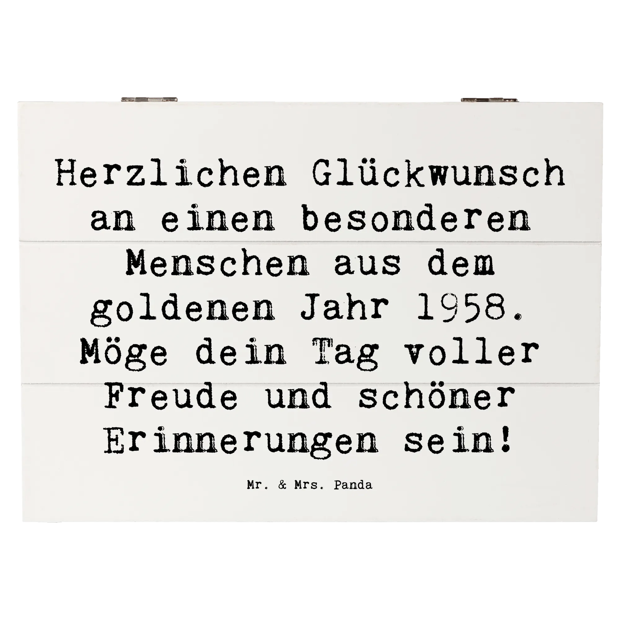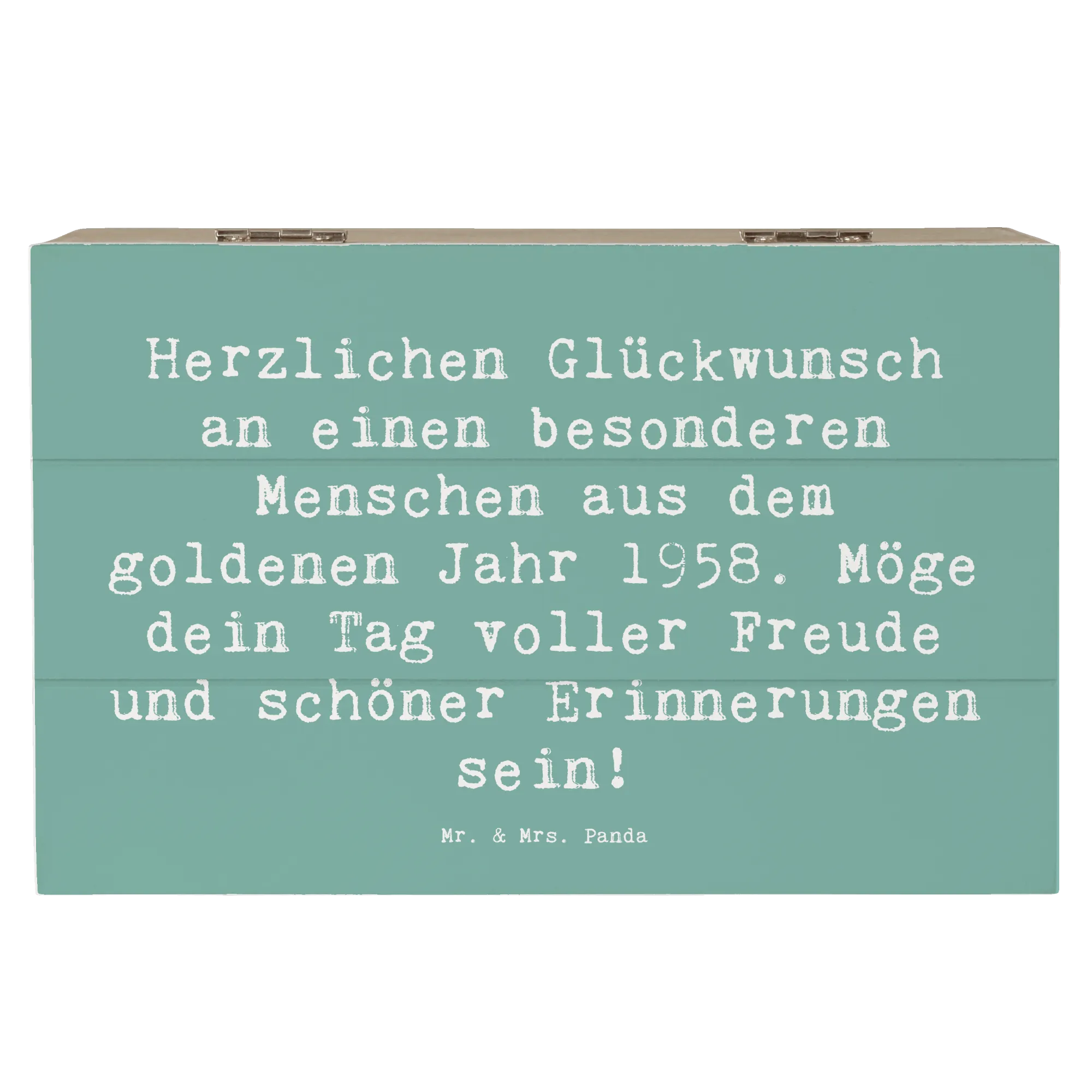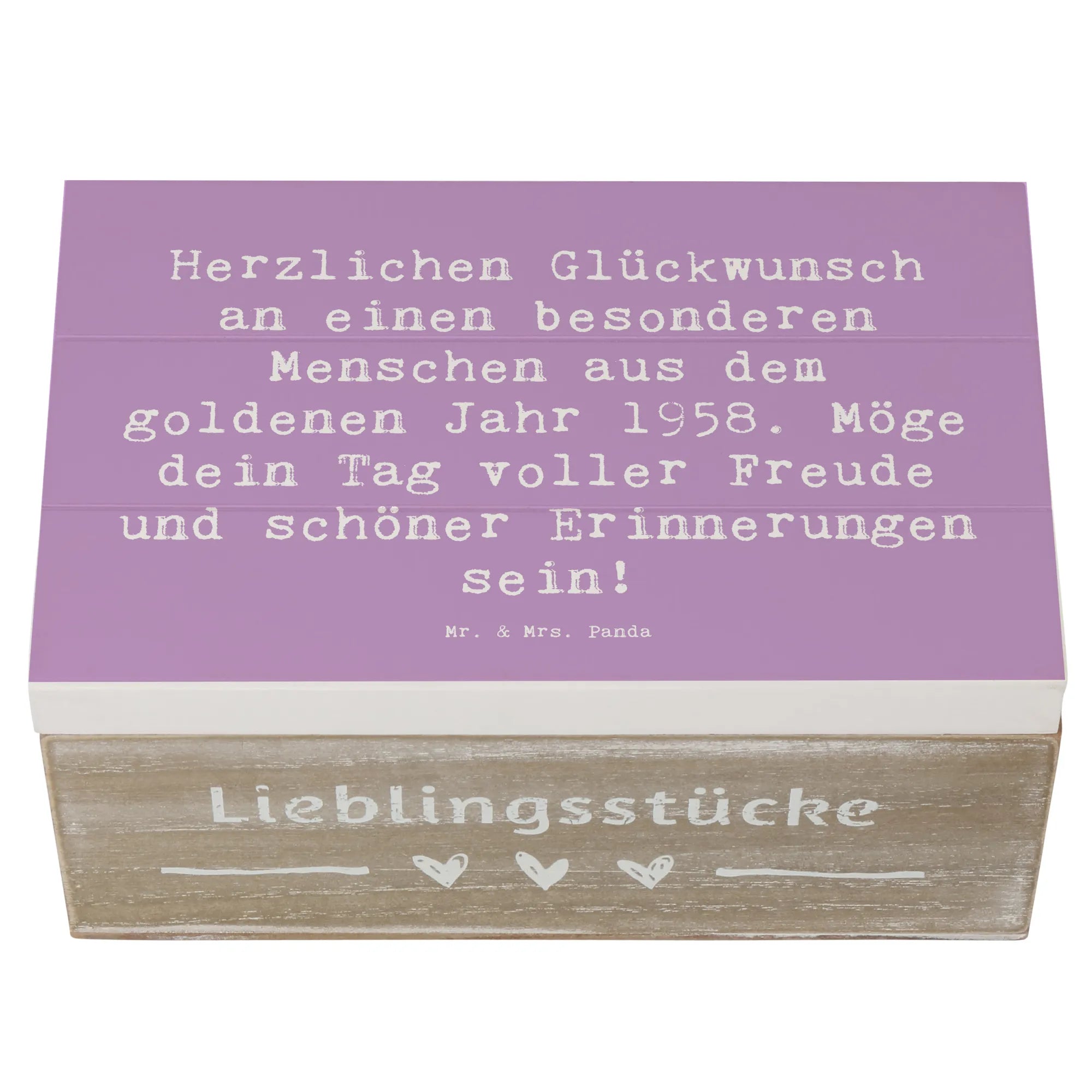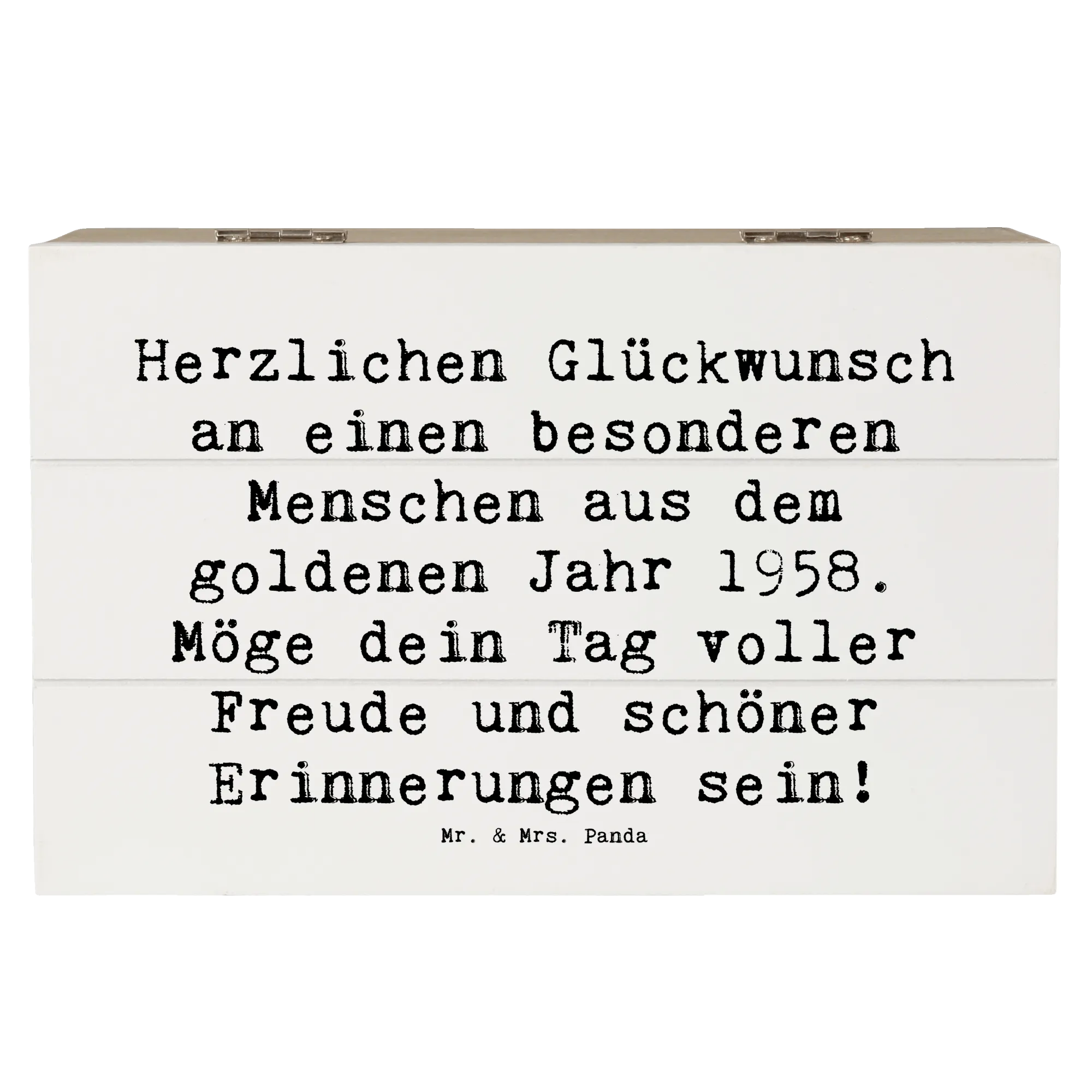 Die wunderschöne Holzkiste von Mr. & Mrs. Panda ist das perfekte Geschenk für jeden, der im goldenen Jahr 1958 das Licht der Welt erblickte! Diese liebevoll gestaltete Erinnerungskiste begeistert nicht nur durch ihr ansprechendes Design, sondern bietet auch ausreichend Platz, um die schönsten Erinnerungen und Schätze aufzubewahren.