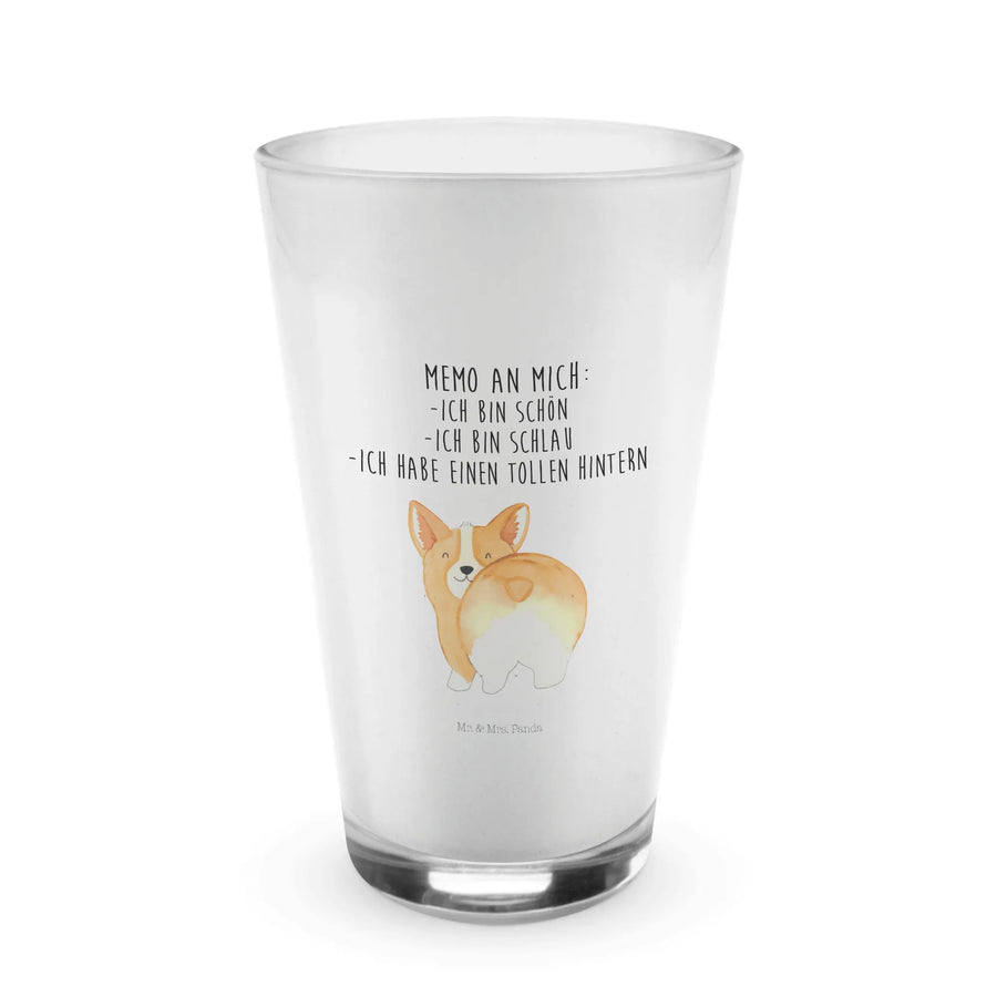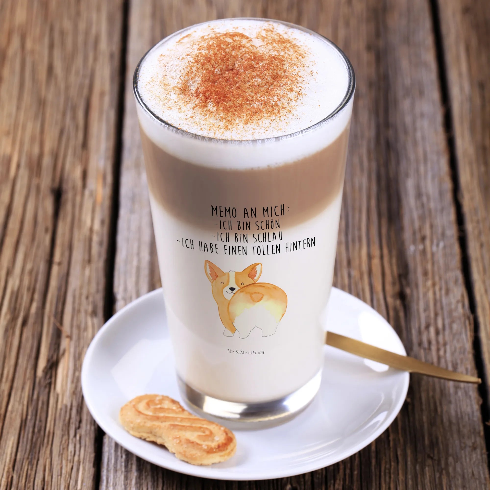 Entdecke unser wunderbares Cappuccino Glas mit dem niedlichen Corgie Po Motiv aus der Hunde Kollektion von Mr. & Mrs. Panda! Dieses edle und hochwertige Glas ist nicht nur ein echter Hingucker, sondern auch der perfekte Begleiter für alle Kaffee- und Tierliebhaber.