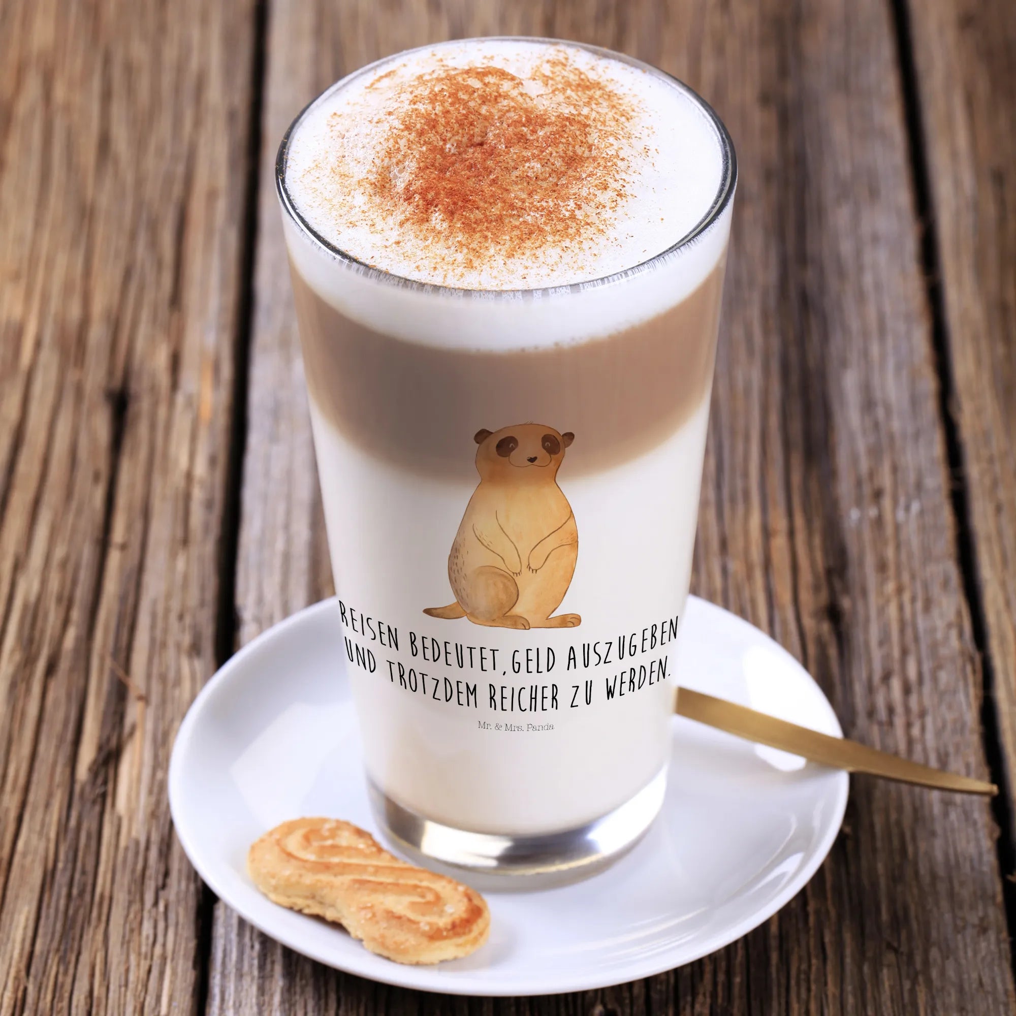 Ob als Geschenk oder für Dich selbst – dieses Cappuccino Glas mit dem Erdmännchen ist das Must-Have für alle, die Afrika und das Reisen lieben!