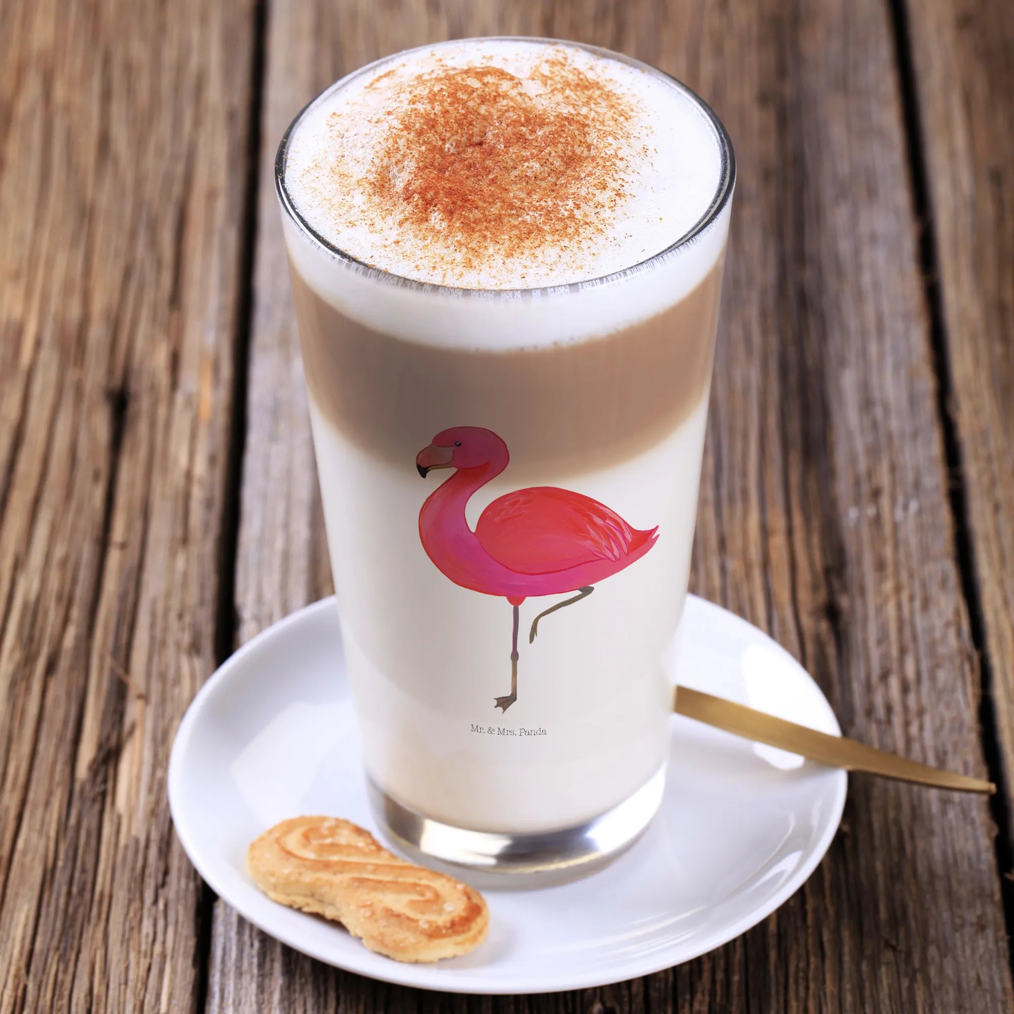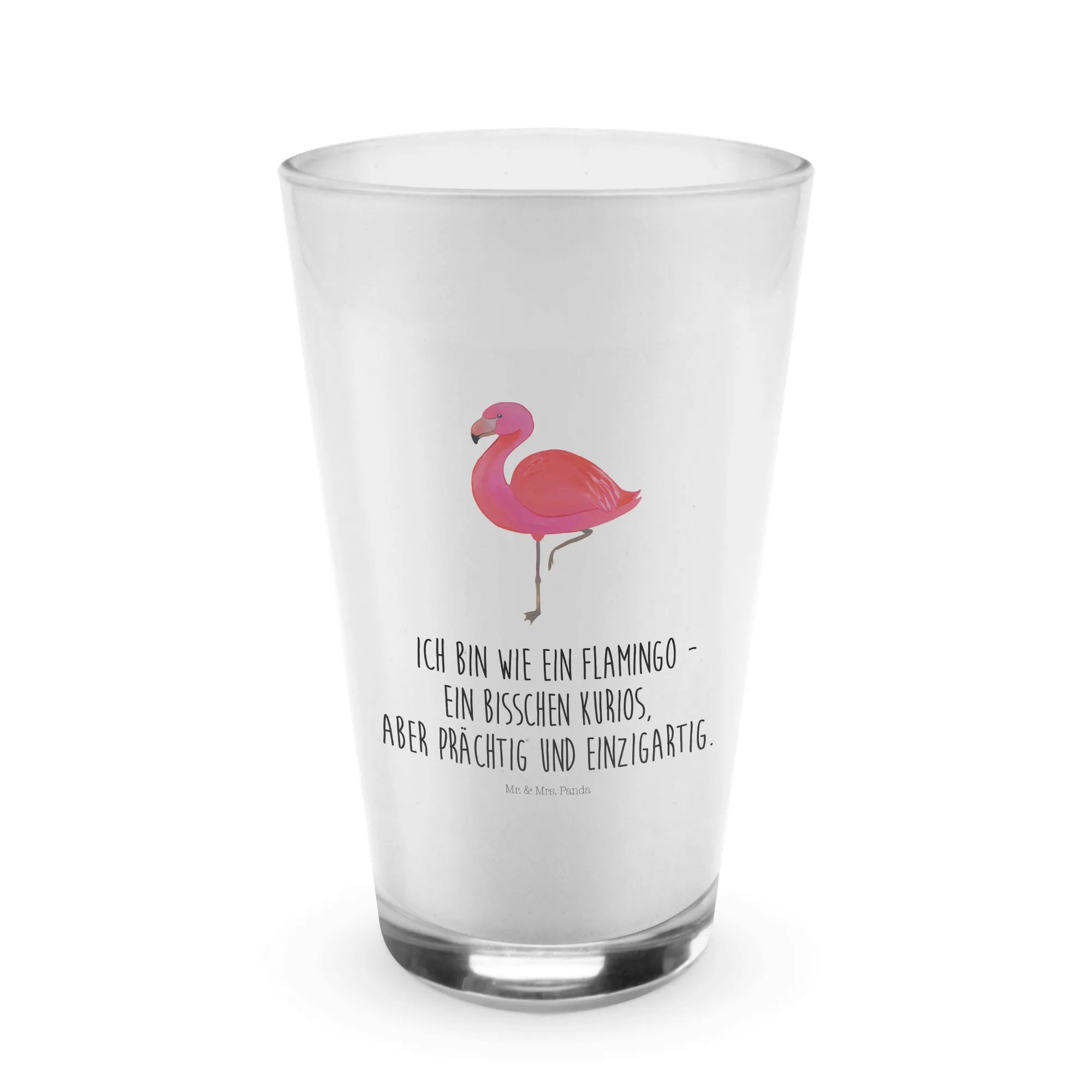 Willkommen in der bezaubernden Welt der Flamingos! Unser edles und wunderschönes Glas aus der exklusiven Flamingo-Kollektion von Mr. & Mrs. Panda ist der perfekte Begleiter für all deine köstlichen Getränke. Egal, ob du ein Café-Liebhaber bist, der seine Latte Macchiato stilvoll genießen möchte, oder einfach nur ein erfrischendes Getränk mit Freunden teilst, dieses Glas ist genau das, was du brauchst. Mit einer Höhe von 150 mm und einem Durchmesser von 88 mm bietet es ausreichend Platz für deine Lieblingsgetränke, ohne dabei an Eleganz zu verlieren.