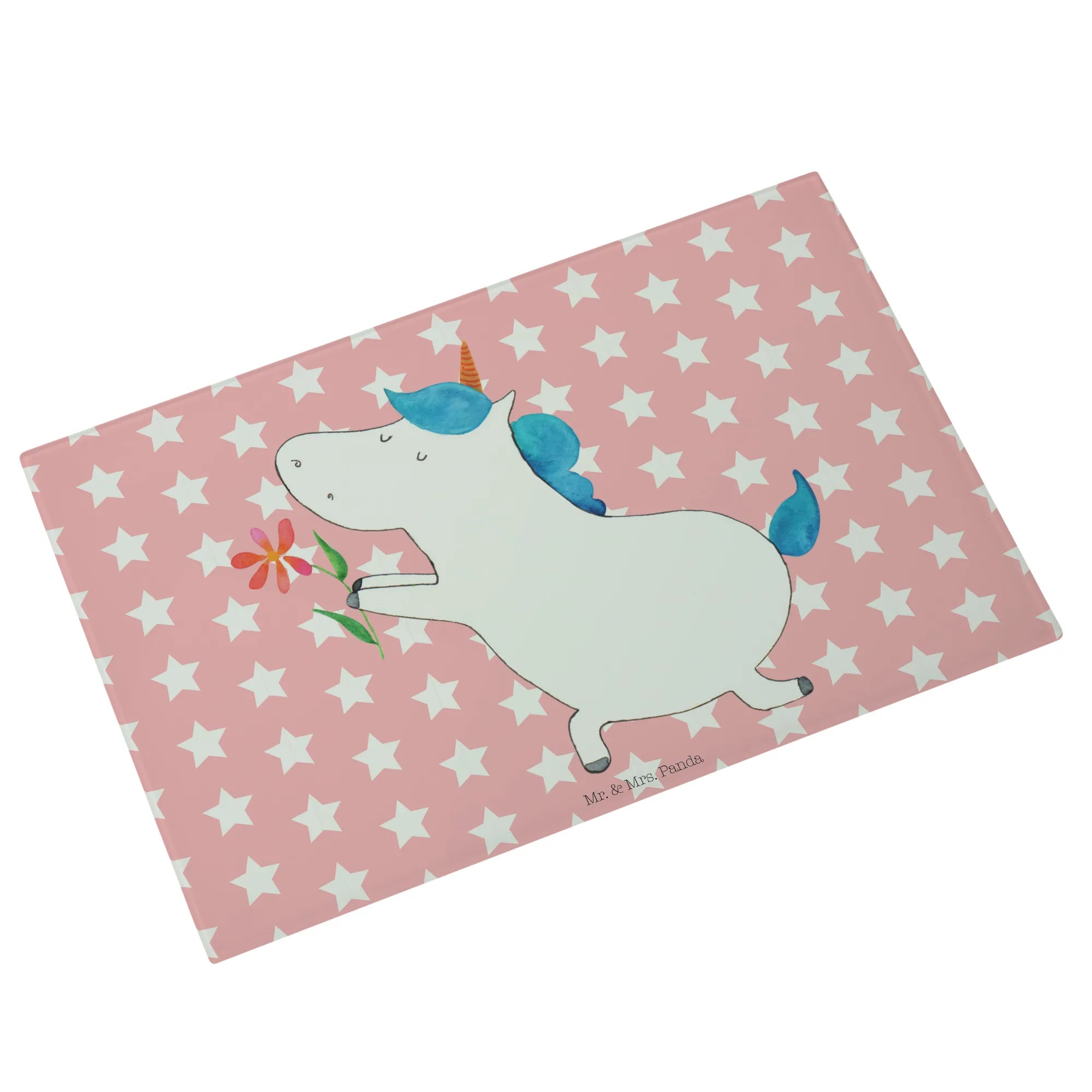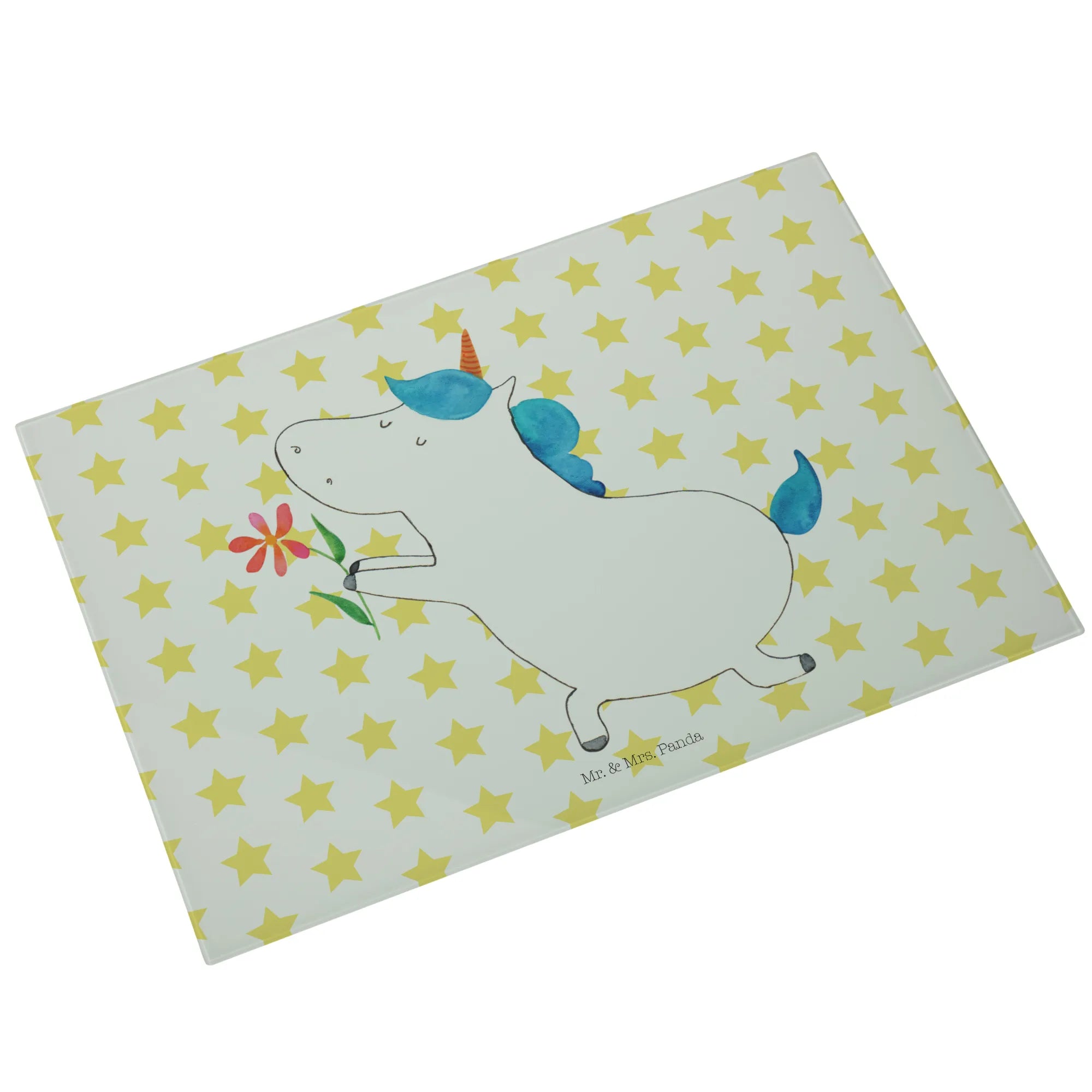 Das Medium Glas Schneidbrett mit dem zauberhaften Einhorn Blume Motiv von Mr. & Mrs. Panda ist der perfekte Begleiter für alle, die die magische Welt der Einhörner lieben! Ob für die eigene Küche oder als Geschenk für einen besonderen Menschen, dieses Schneidebrett bringt Farbe und Freude in jede Kochsituation.