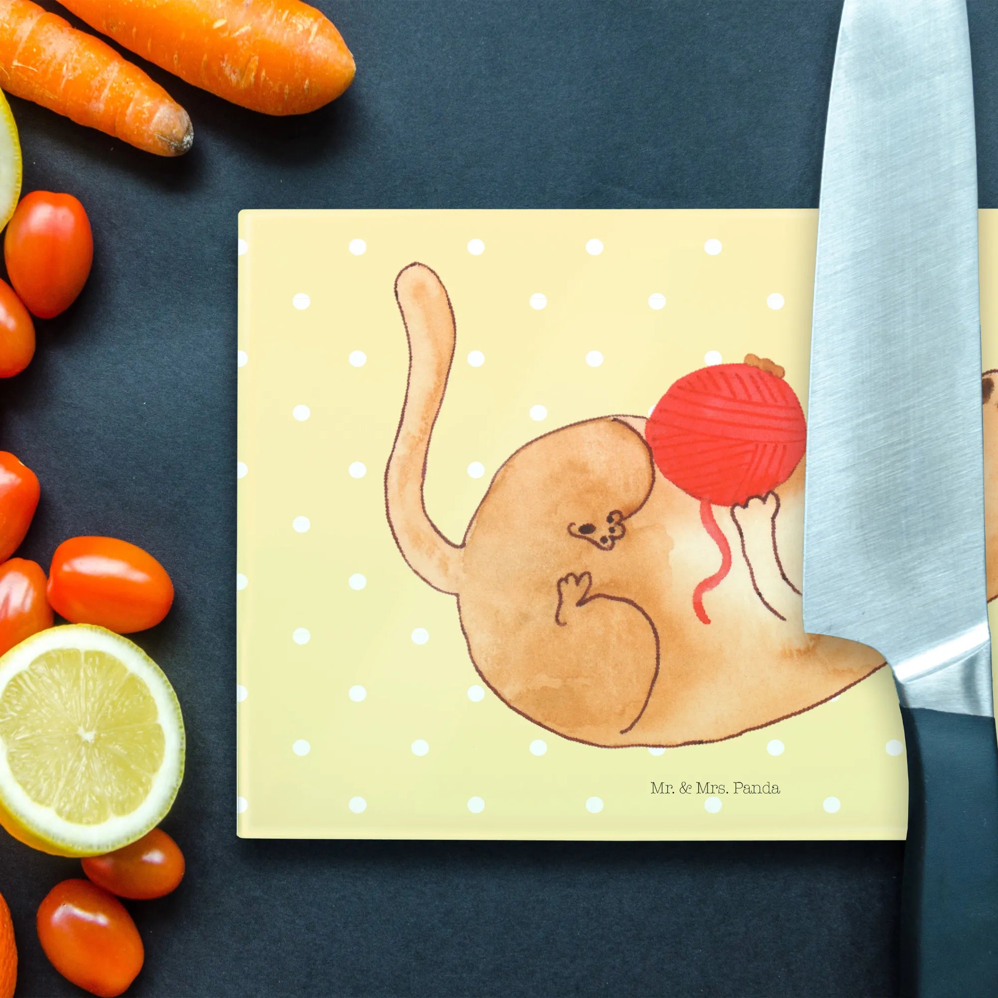 Das Medium Glas Schneidbrett Katzen Wollknäul von Mr. & Mrs. Panda ist das perfekte Geschenk für alle Katzenliebhaber und Katzenfans.