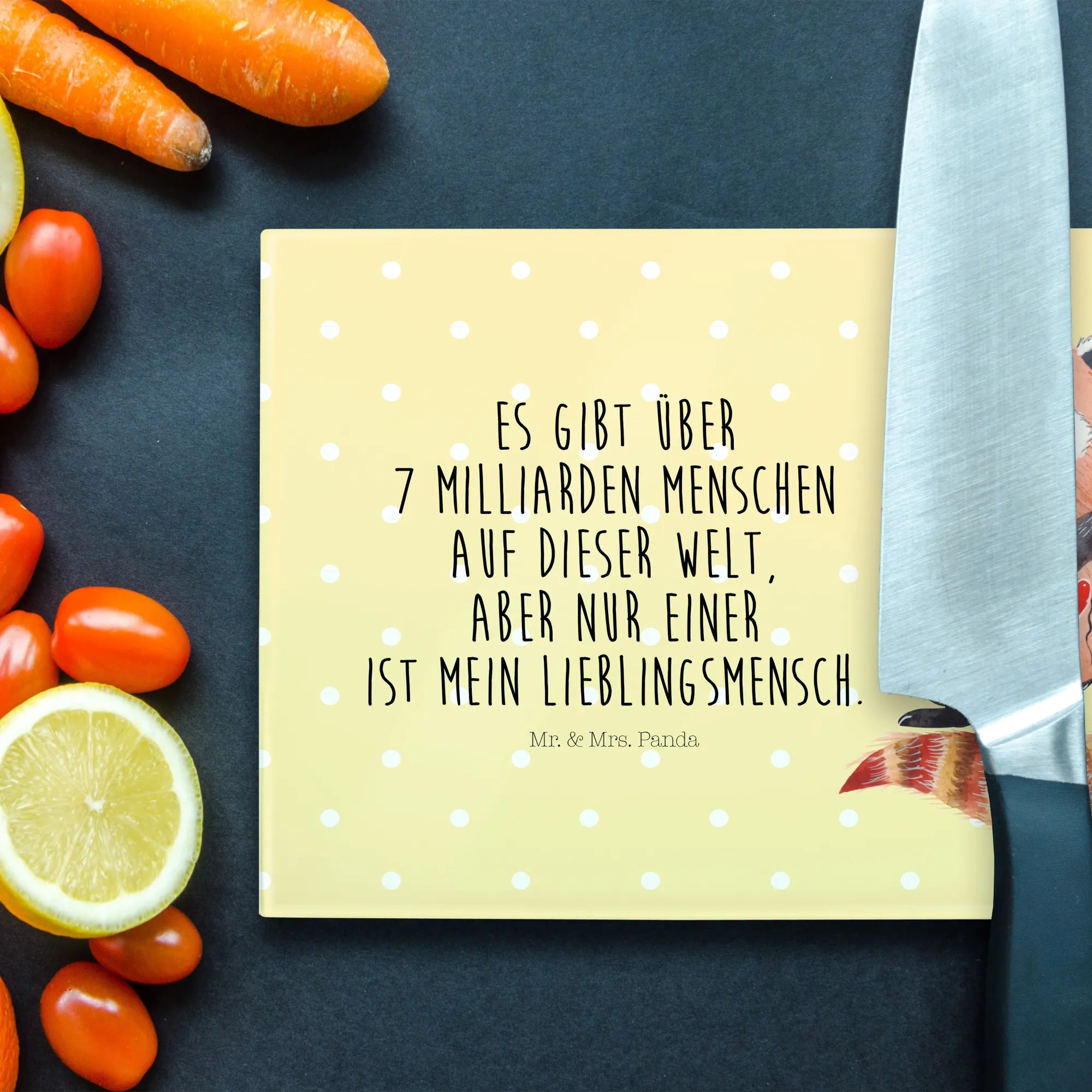 Beschenke dich selbst oder einen besonderen Menschen in deinem Leben mit diesem fantastischen Glas Schneidbrett – es wird nicht nur praktisch genutzt, sondern wird auch zur farbenfrohen Dekoration deiner Küche! Die handgezeichneten Motive und die liebevolle Gestaltung machen dieses Produkt unverwechselbar und zu einem besonderen Teil der Mr. & Mrs. Panda Familie. Lass es funkeln und bringe mehr Freude in deinen Alltag!