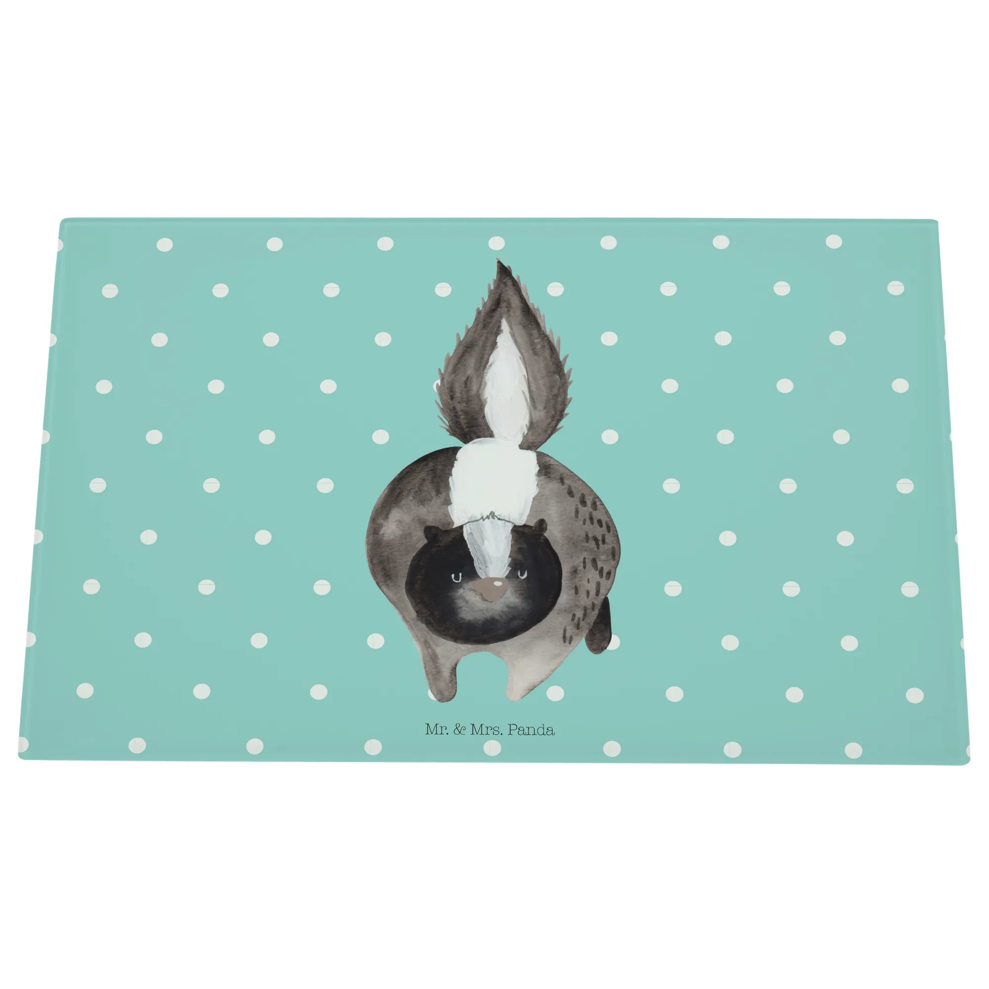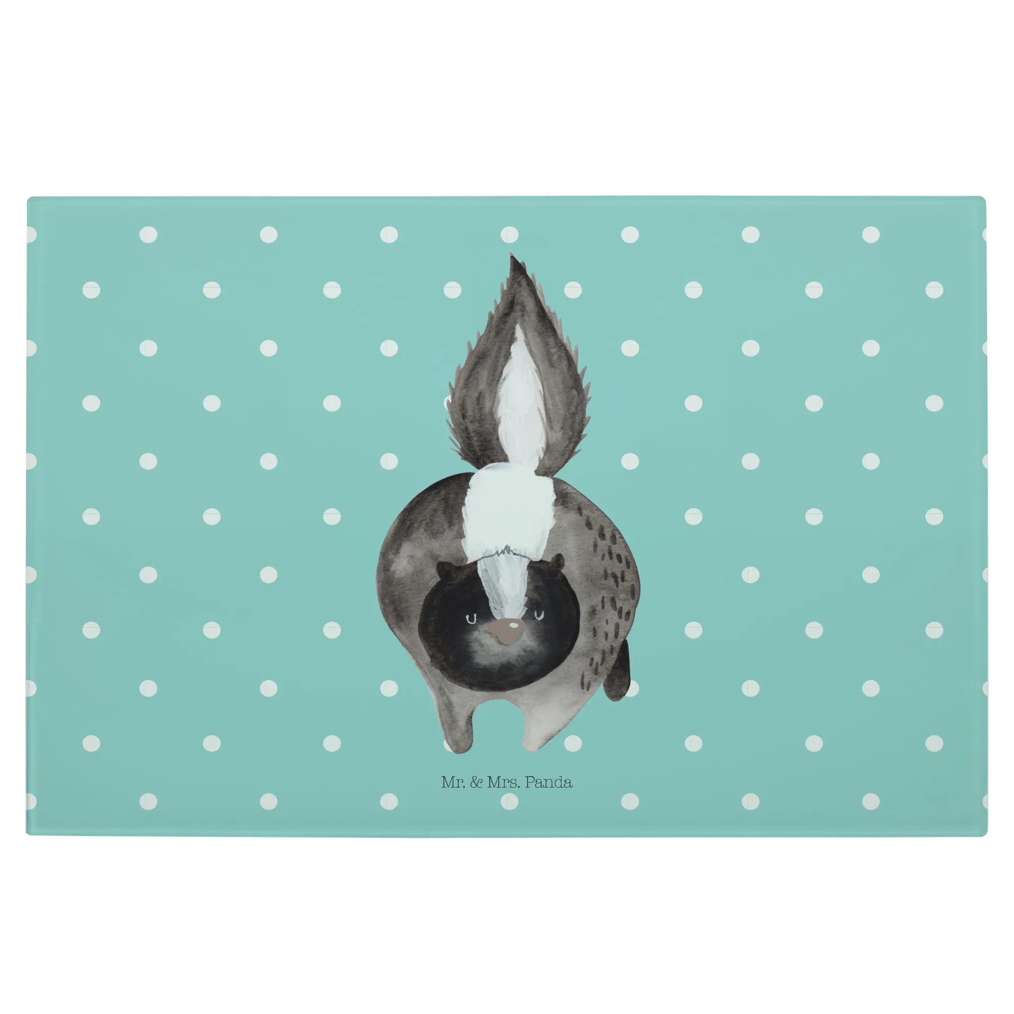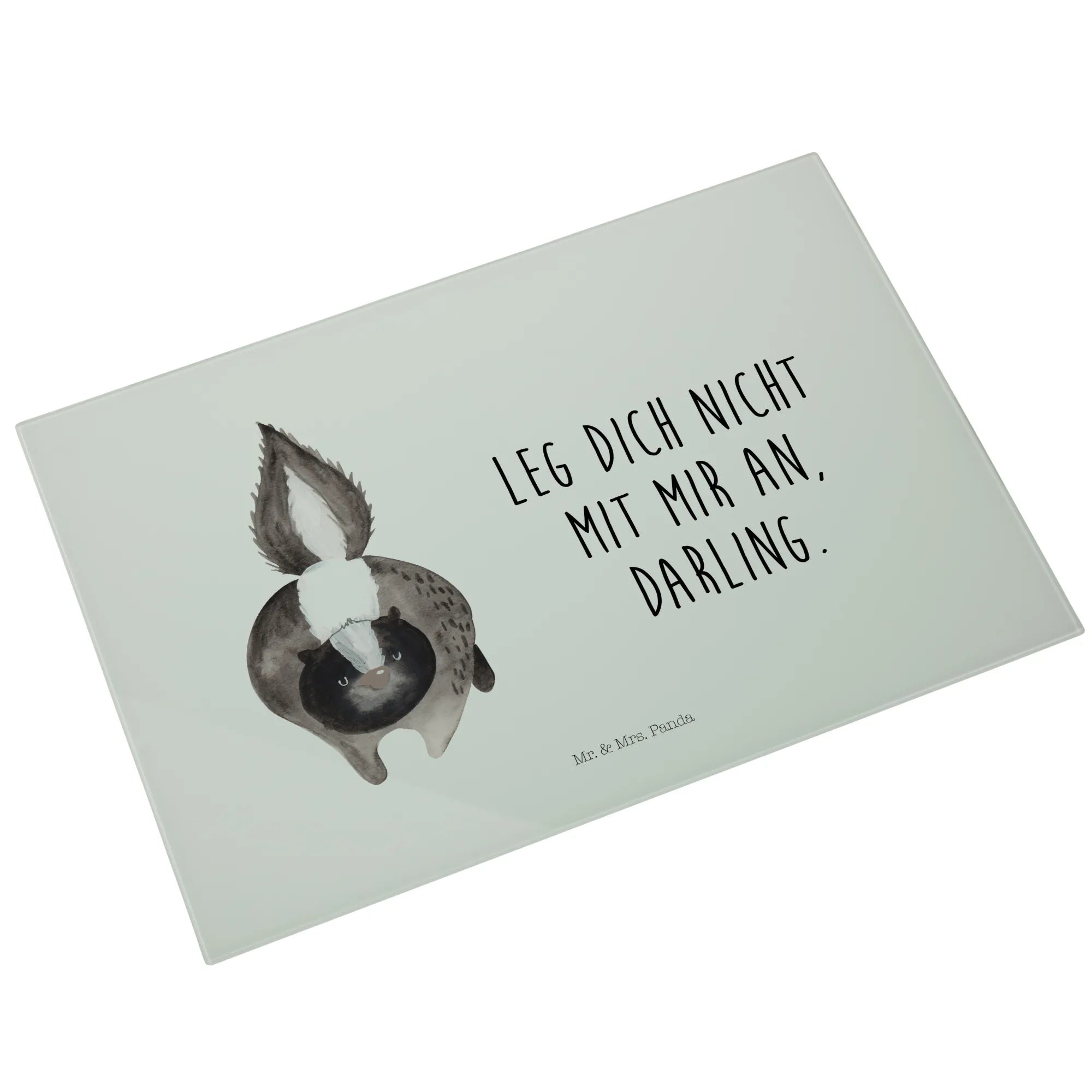 Das Medium Glas Schneidebrett mit dem liebevollen Motiv 'Stinktier Angriff' aus der Stinktier-Kollektion von Mr. & Mrs. Panda ist nicht nur ein praktisches Küchenutensil, sondern auch ein echter Hingucker in Deiner Küche! Mit einem süßen Stinktier, das sich drohend aufbaut und seinen buschigen Schwanz in die Luft hält, bringt dieses Schneidebrett nicht nur Spaß, sondern auch Charme in Deinen Kochalltag.