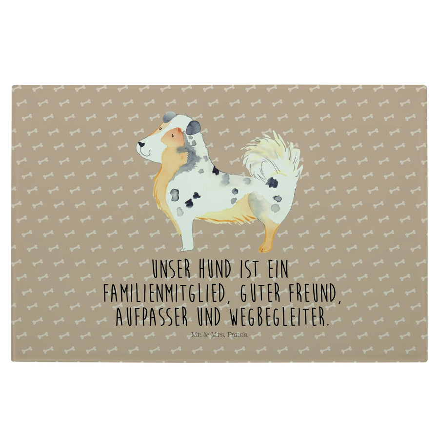 Entdecke das Medium Glas Schneidbrett mit dem süßen Motiv des Australian Shepherds aus der Hunde Kollektion von Mr. & Mrs. Panda!