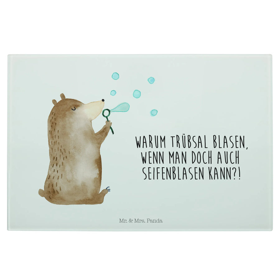 Glasschneidebrett Bär Seifenblasen - Medium Glas Schneidbrett - mit Spruch - Weiß