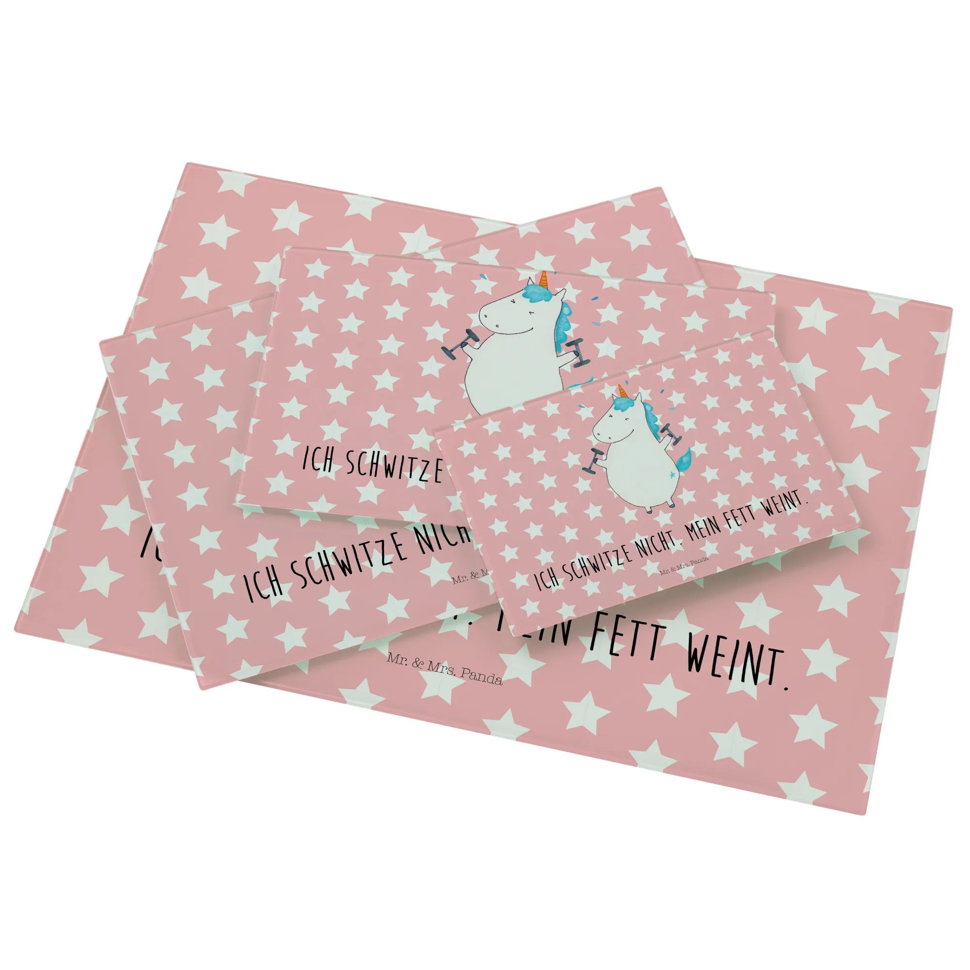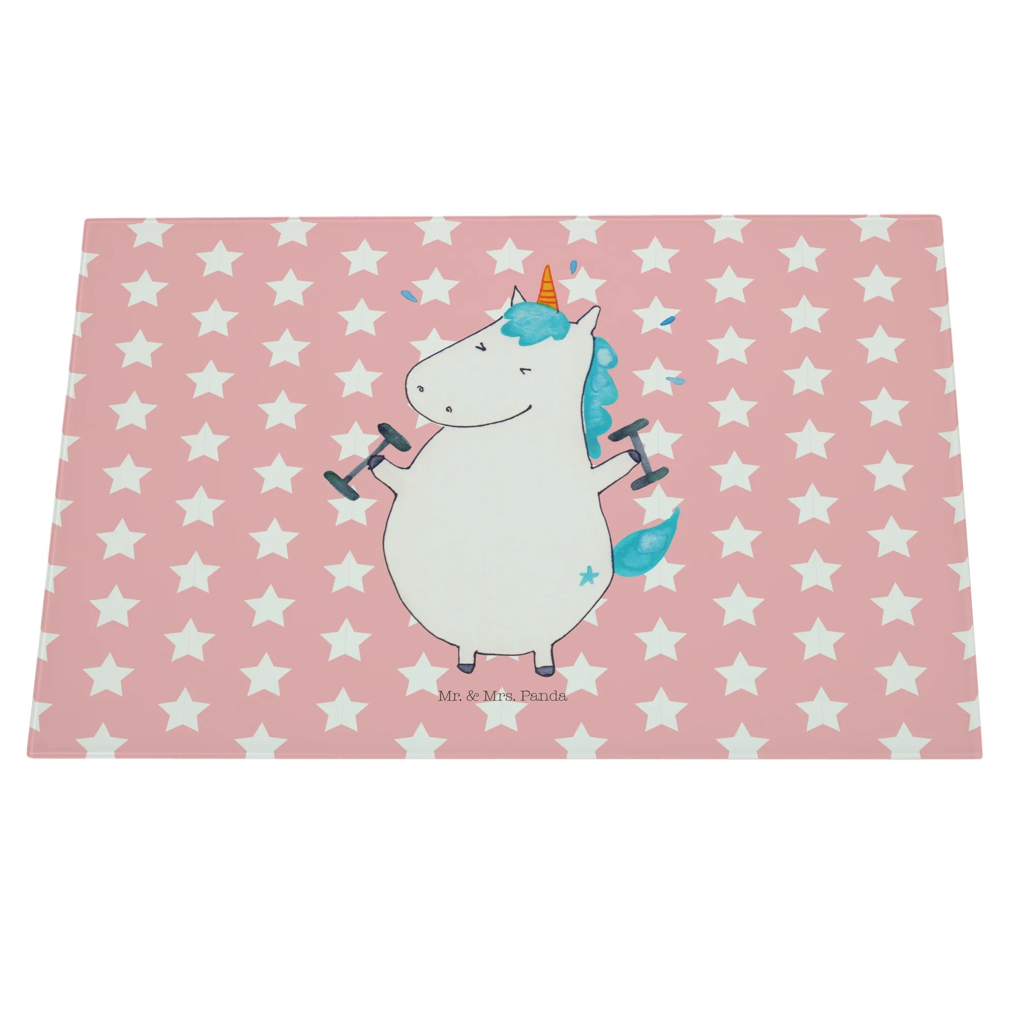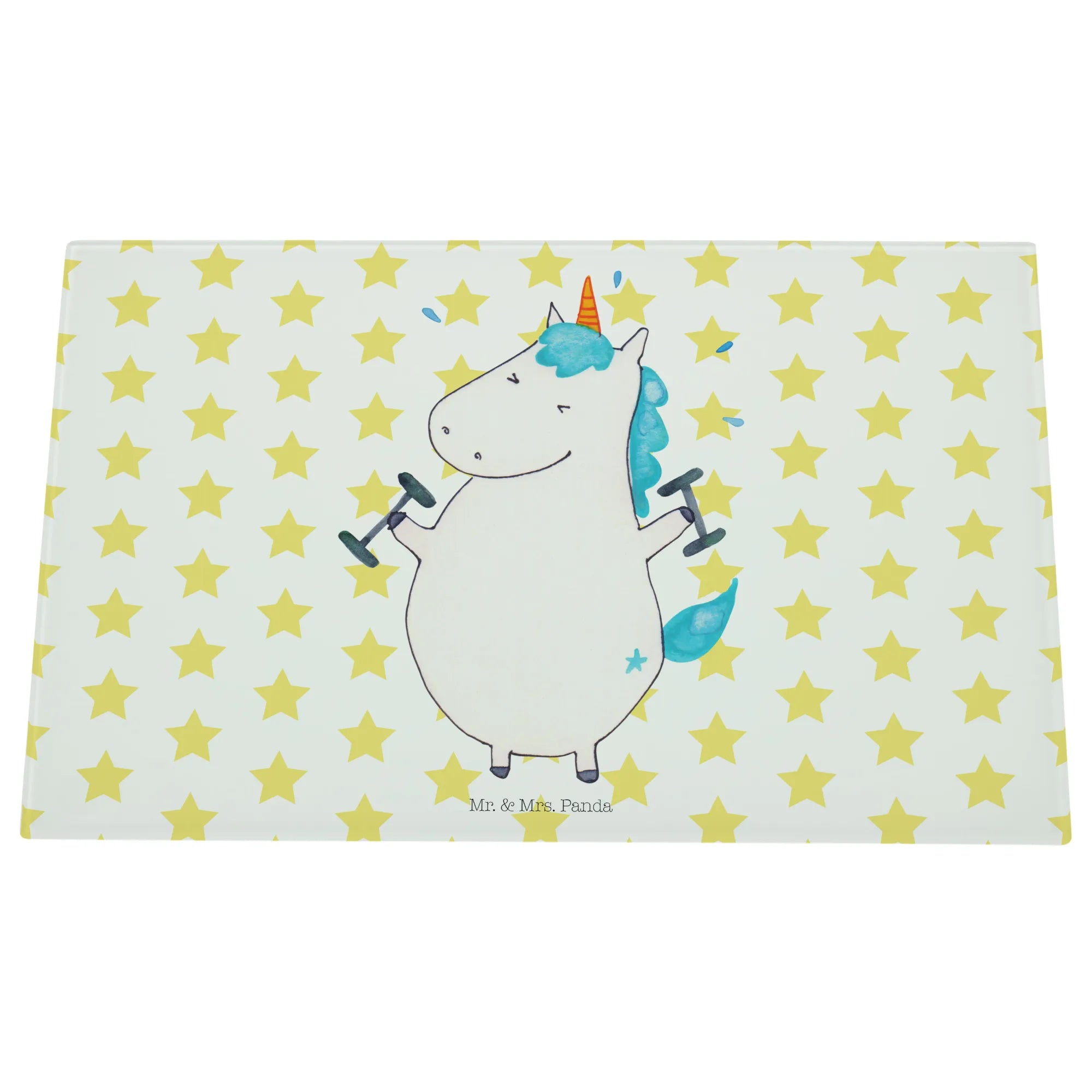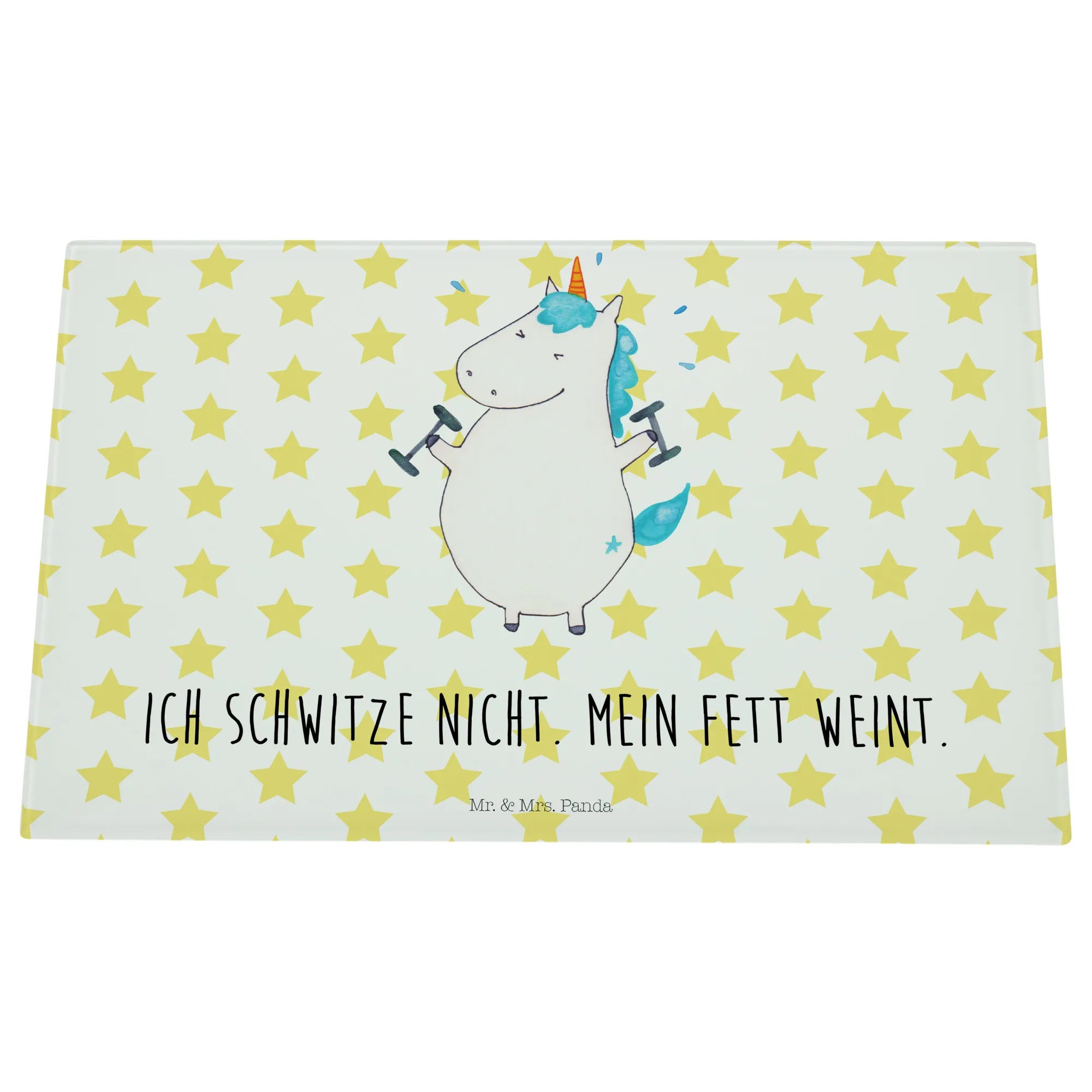 Das Medium Glas Schneidbrett "Einhorn Fitness" von Mr. & Mrs. Panda ist nicht nur ein praktisches Küchenutensil, sondern auch ein fröhliches Statement für all diejenigen, die sich für Fitness und gesunde Ernährung begeistern!