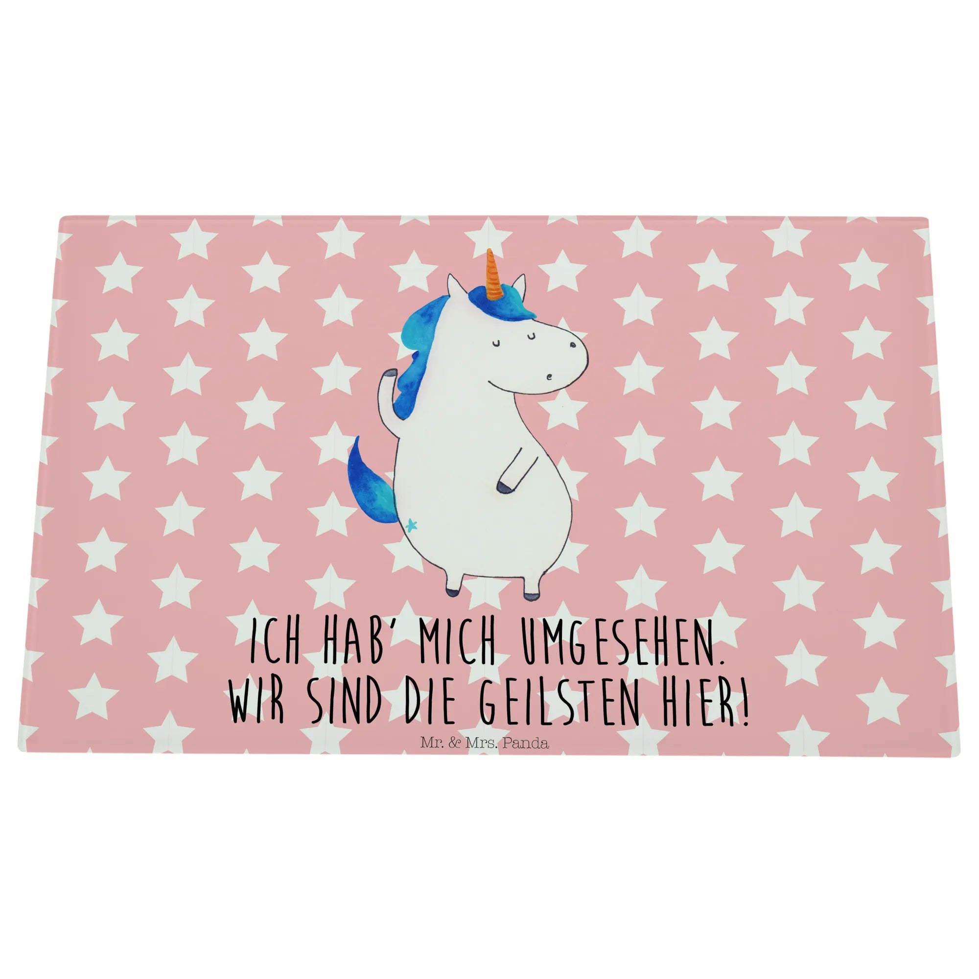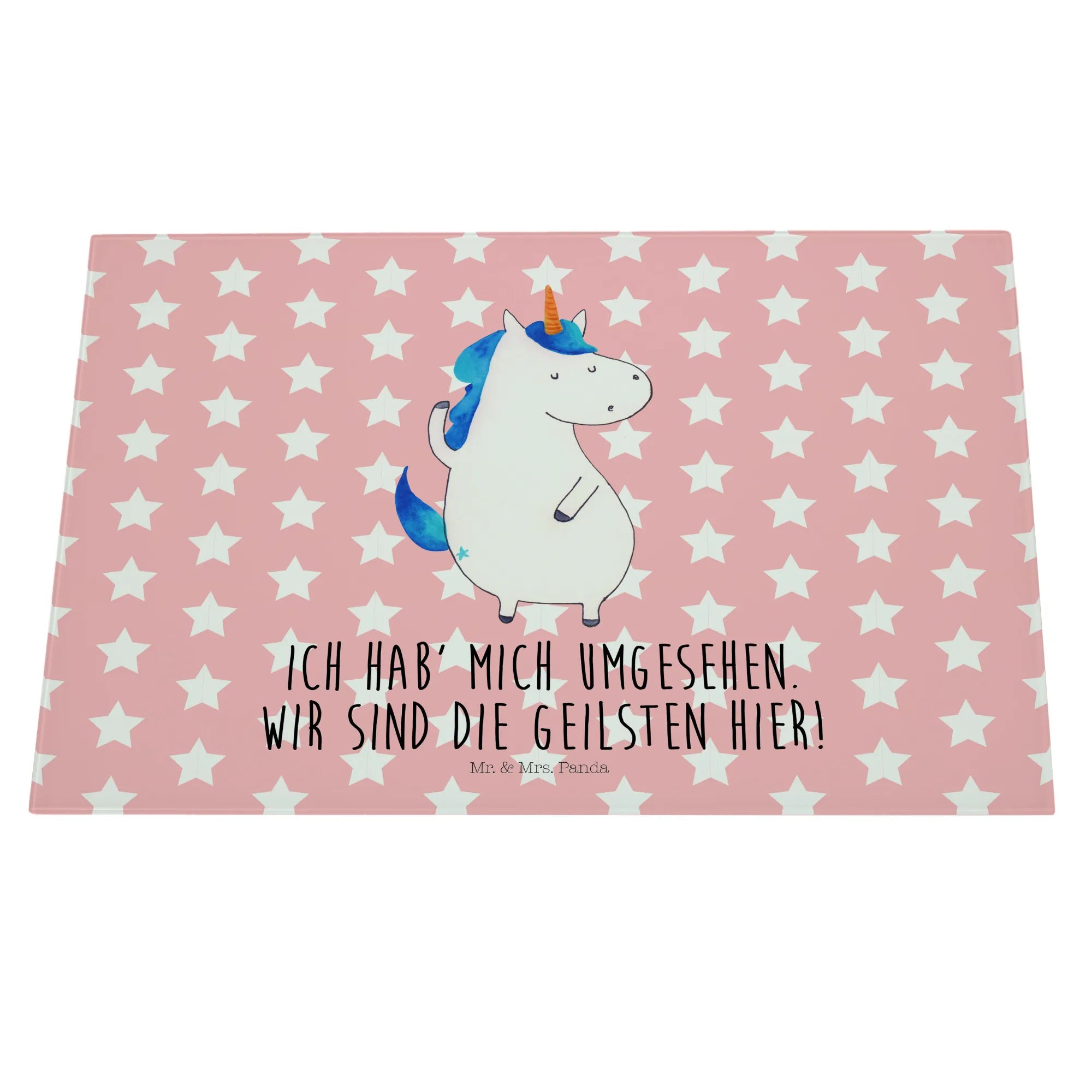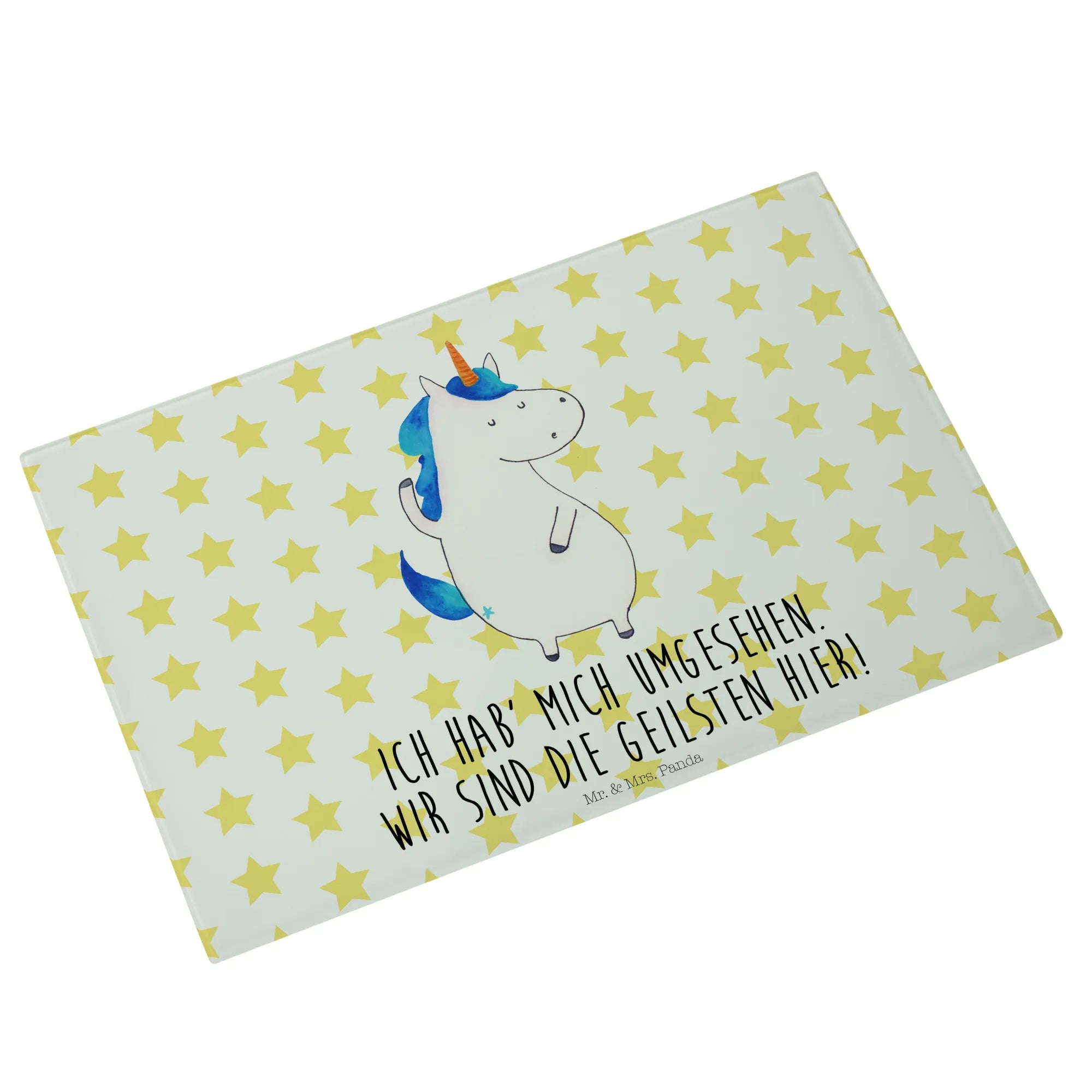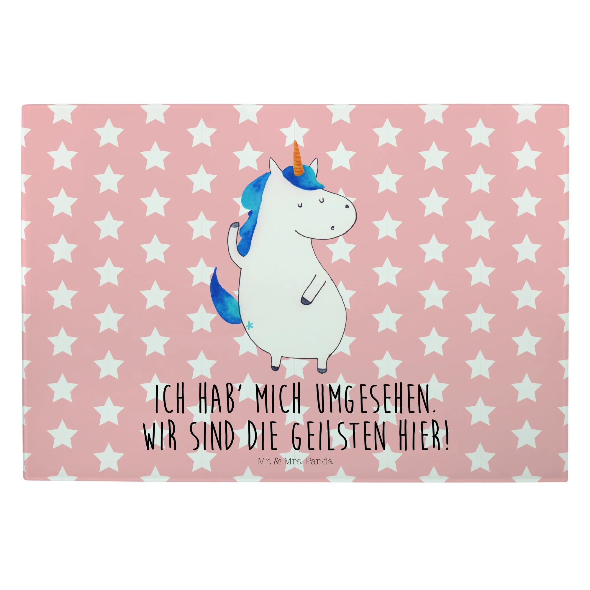 Das Medium Glas Schneidebrett "Einhorn Mann" von Mr. & Mrs. Panda ist das perfekte Geschenk für all jene, die Einhörner und die zauberhafte Welt, die sie umgibt, lieben. Mit seinem liebevoll gestalteten, handgezeichneten Einhorn-Motiv, zeigt dieses Schneidebrett nicht nur Funktionalität, sondern auch ein Stück magische Lebensfreude. Ob in der Küche oder bei der Zubereitung von leckeren Snacks auf deiner nächsten Party - dieses Schneidebrett ist ein echter Hingucker! Der spritzige Spruch "Ich hab' mich umgesehen. Wir sind die Geilsten hier!" gewährt einen humorvollen Geplänkel und bringt Freund und Familie zum Lachen.