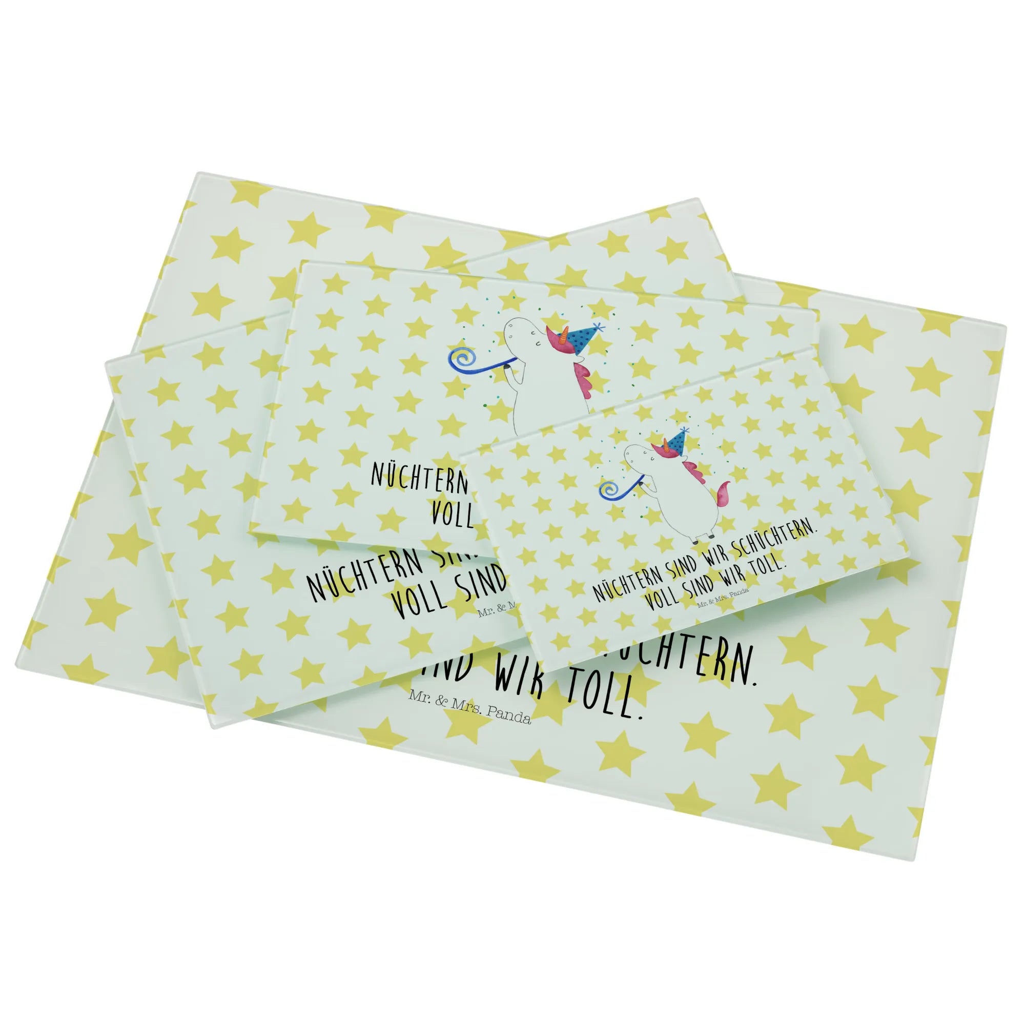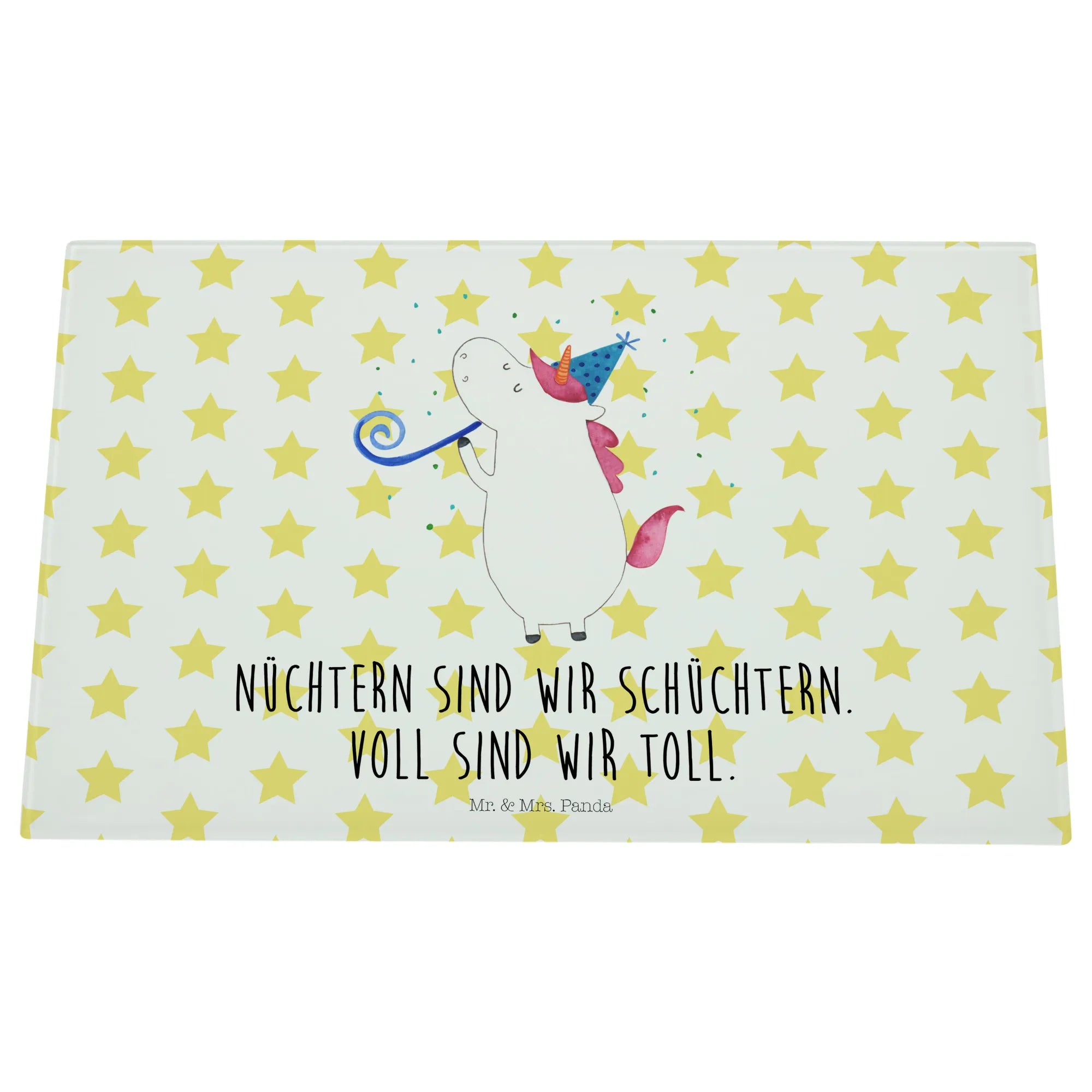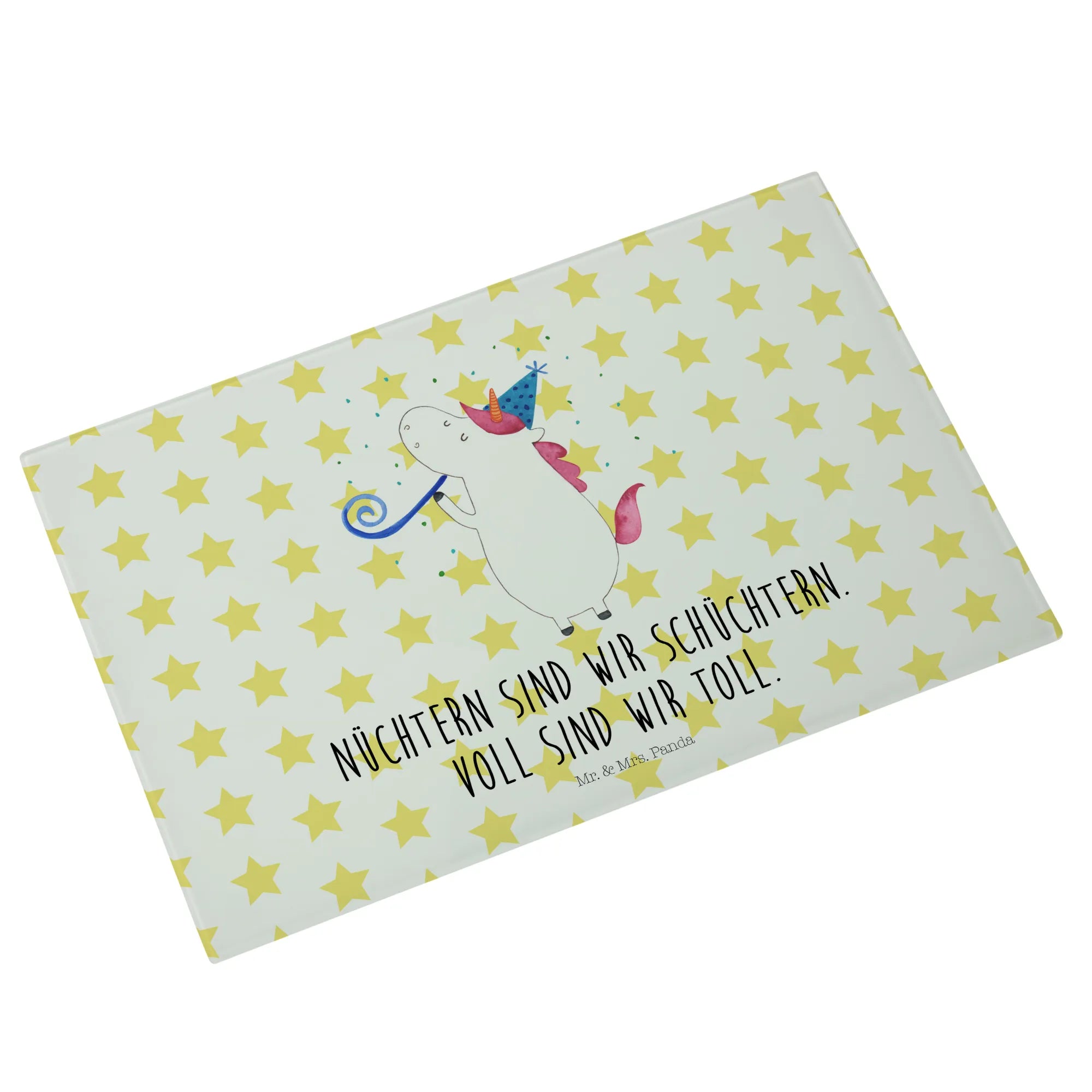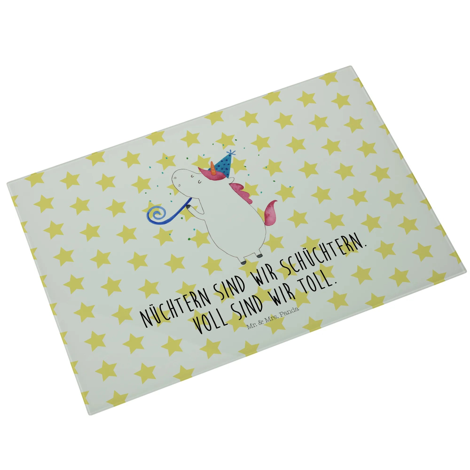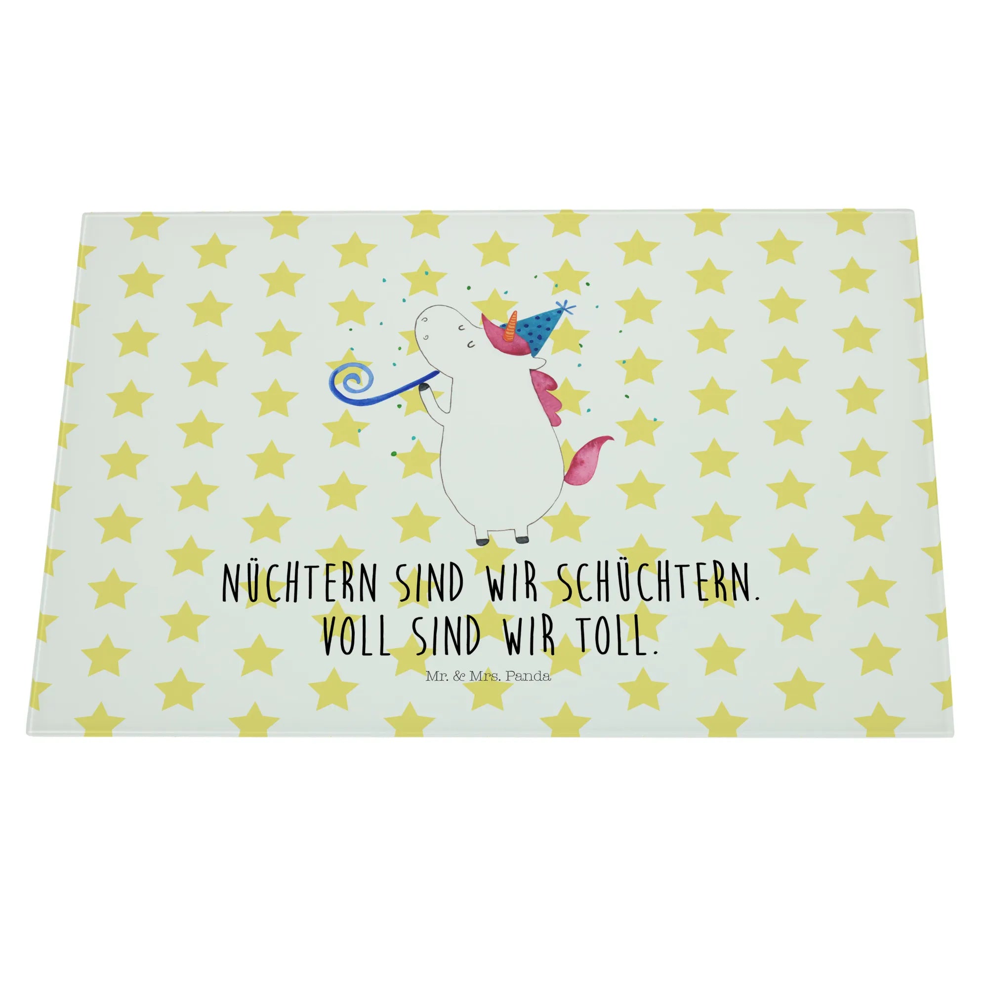 Entdecke das zauberhafte Medium Glas Schneidbrett mit dem fröhlichen Einhorn Party Motiv aus der einzigartigen Einhorn-Kollektion von Mr. & Mrs. Panda! Dieses Schneidebrett ist nicht nur funktional, sondern bringt auch Farbe und Spaß in deine Küche. Perfekt für alle Einhorn-Liebhaber, die gerne feiern und ihre Küche kreativ gestalten wollen.