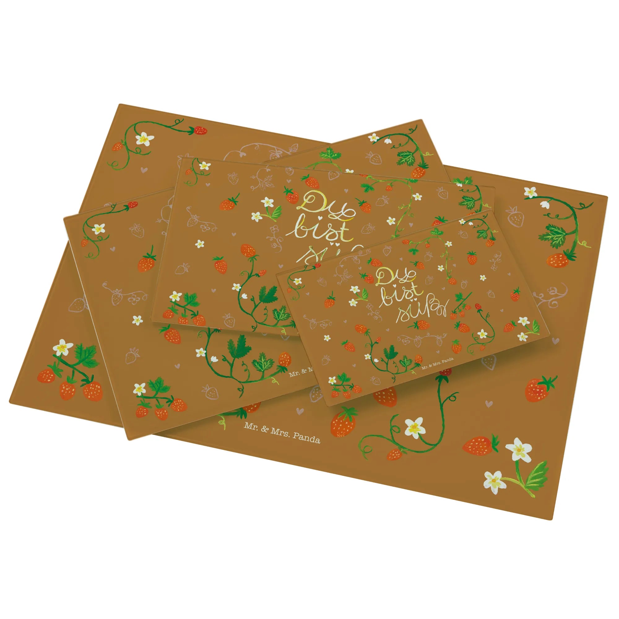 Entdecke unser XL Glas Schneidbrett mit dem süßen Erdbeeren-Motiv "Du bist süß" aus der Wild & Free-Kollektion von Mr. & Mrs. Panda. Dieses einzigartige, stabile und kratzfeste Glas Schneidbrett ist nicht nur funktional, sondern auch ein echter Hingucker in deiner Küche.