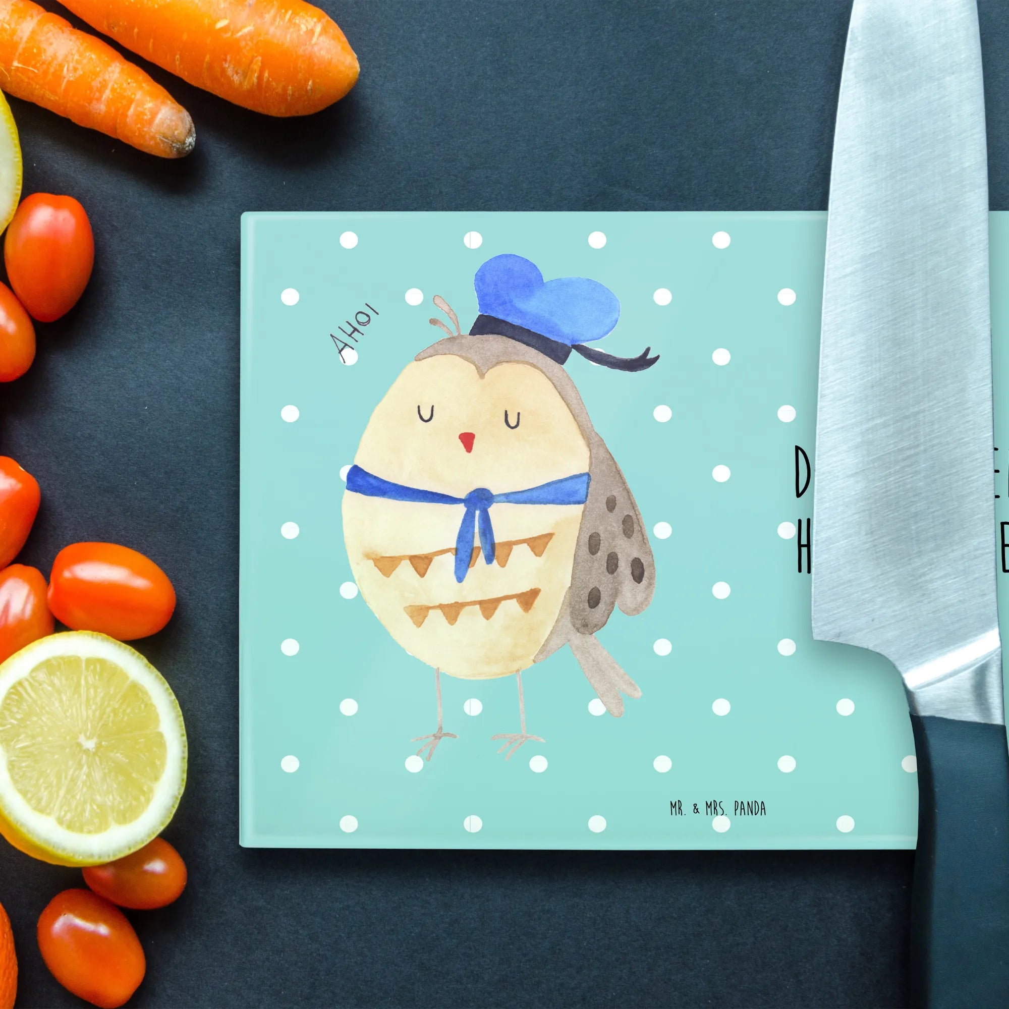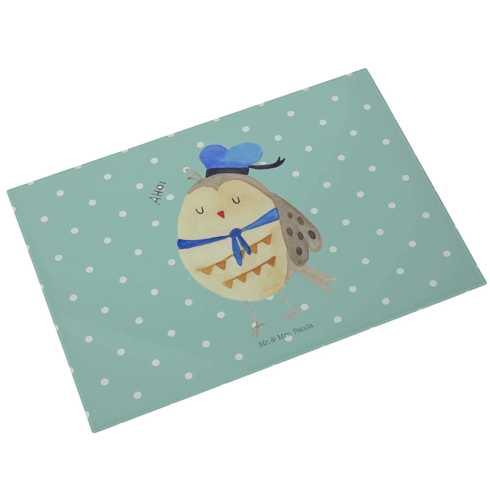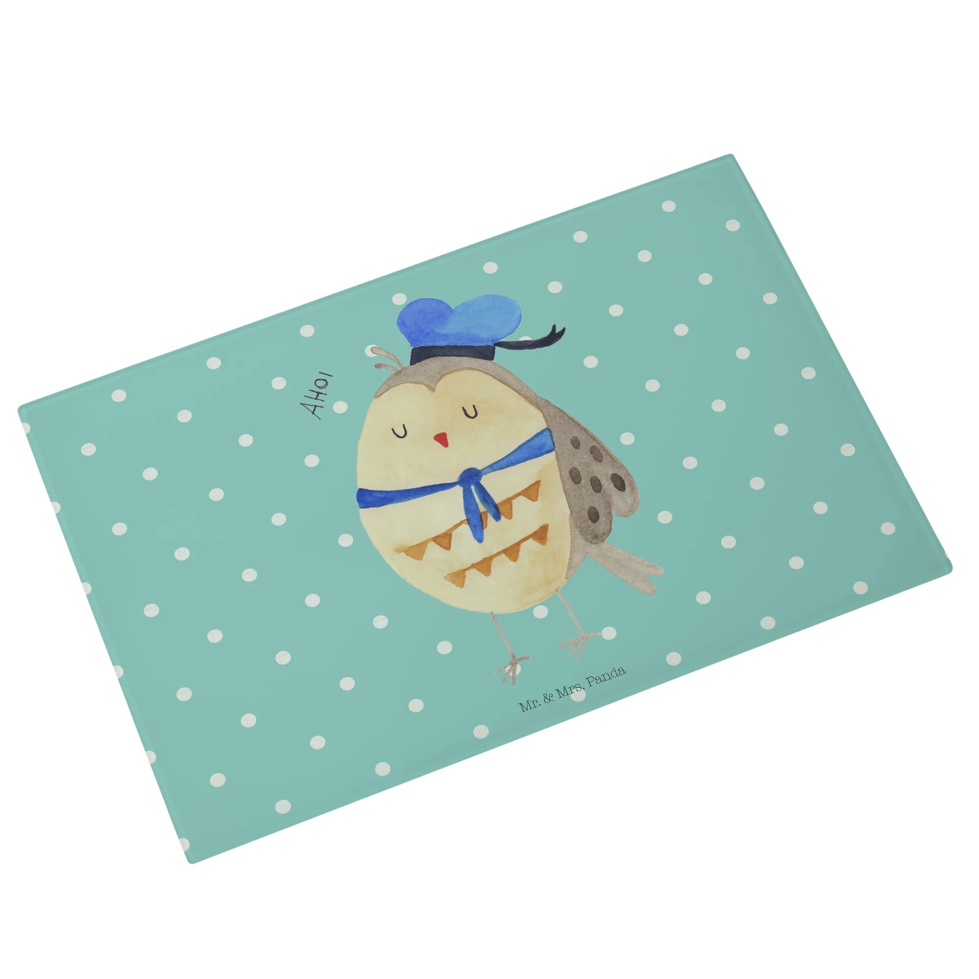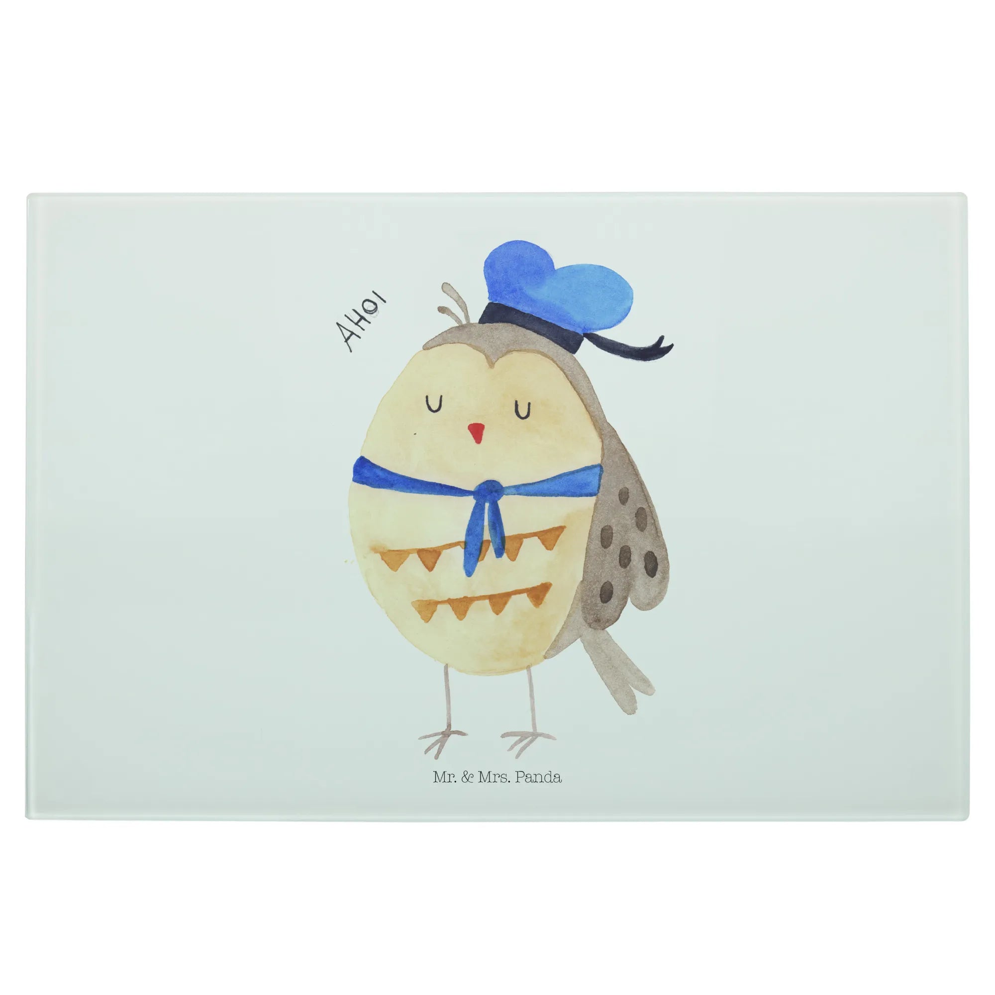 Das XL Glas Schneidbrett Eule Matrosen von Mr. & Mrs. Panda ist mehr als nur ein Küchenutensil – es ist ein liebevolles Stück Lebensfreude für deine Küche!