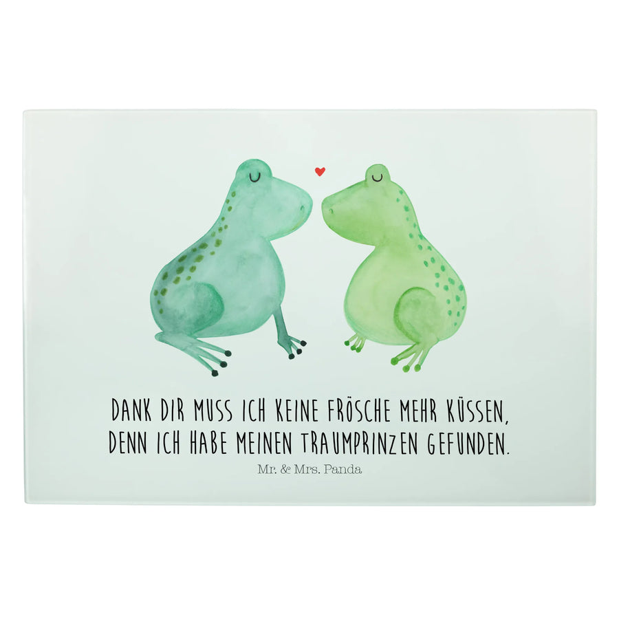 Das XL Glas Schneidbrett mit dem süßen Motiv 'Frosch Liebe' von Mr. & Mrs. Panda ist das perfekte Geschenk für Verliebte! Mit seinem herzlichen Slogan 'Dank dir muss ich keine Frösche mehr Küssen, denn ich habe meinen Traumprinzen gefunden' ist es nicht nur ein praktisches Küchenutensil, sondern auch ein liebevolles Liebesgeschenk.