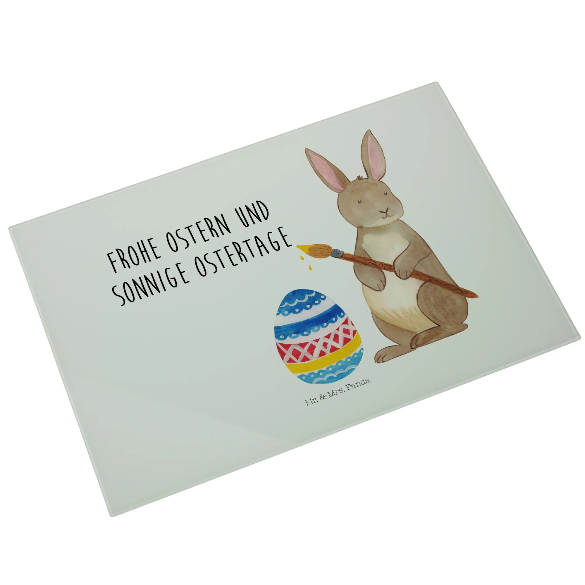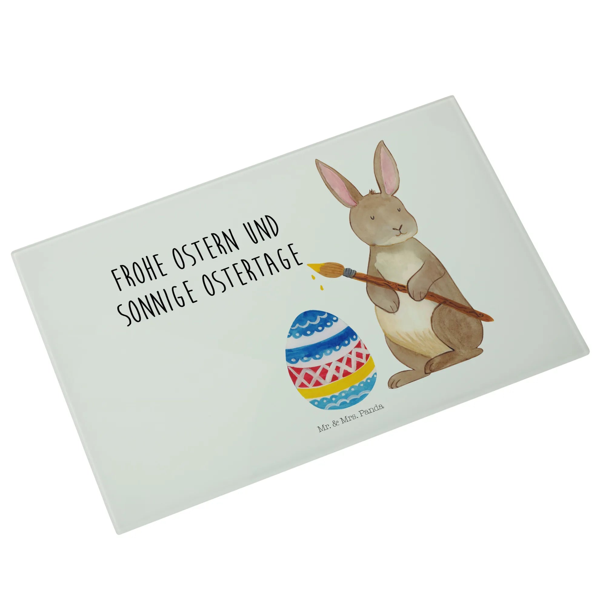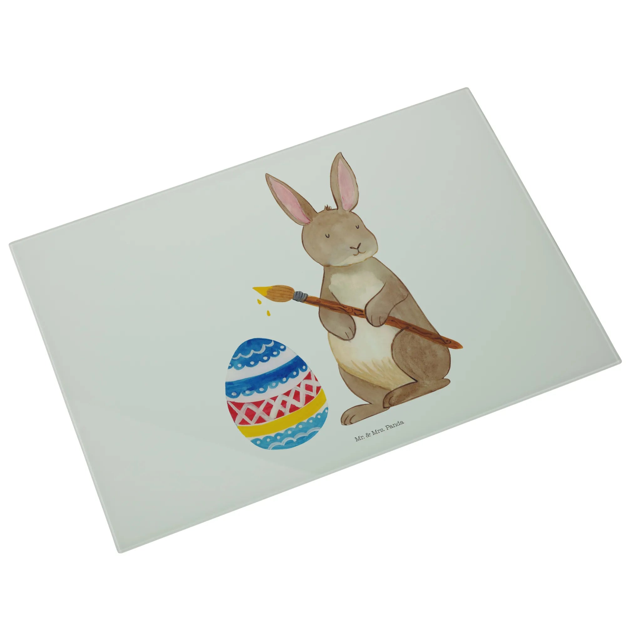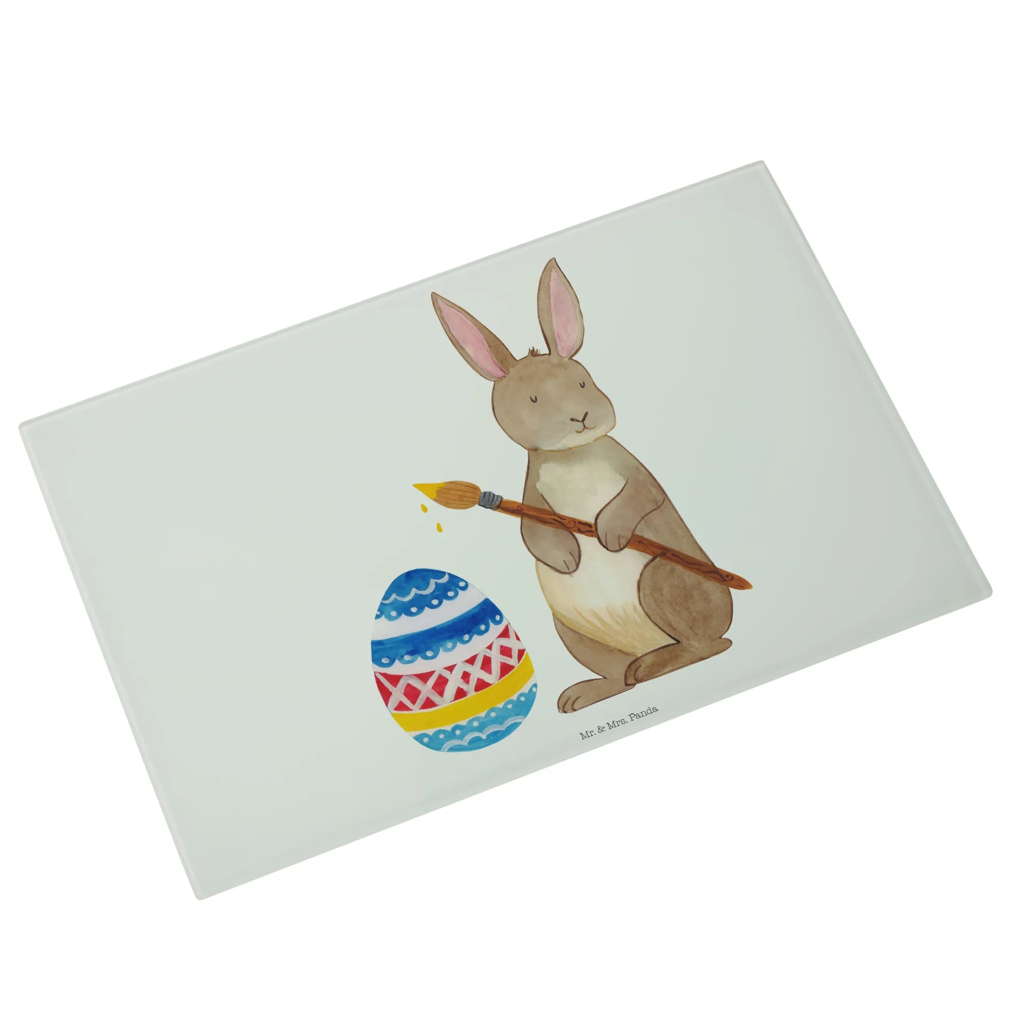 Hergestellt aus kratzfestem Glas, ist dieses Schneidbrett nicht nur strapazierfähig, sondern auch ein echter Hingucker! Die lebendige schöne Aquarellzeichnung von Mr. & Mrs. Panda zeigt einen fröhlichen Osterhasen, der das Eiermalen mit viel Begeisterung zelebriert. Dieses Geschenk eignet sich hervorragend für Kinder und Erwachsene, die mit Liebe und Freude Ostern feiern möchten.