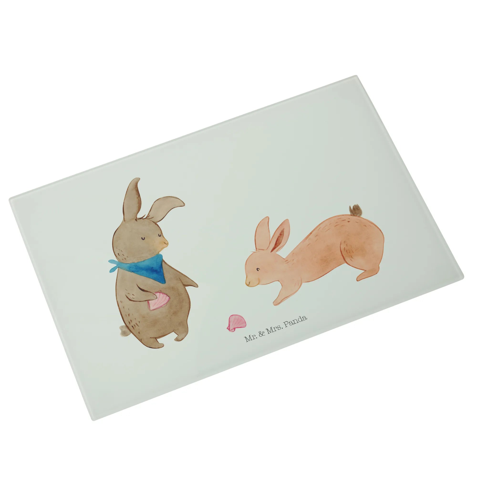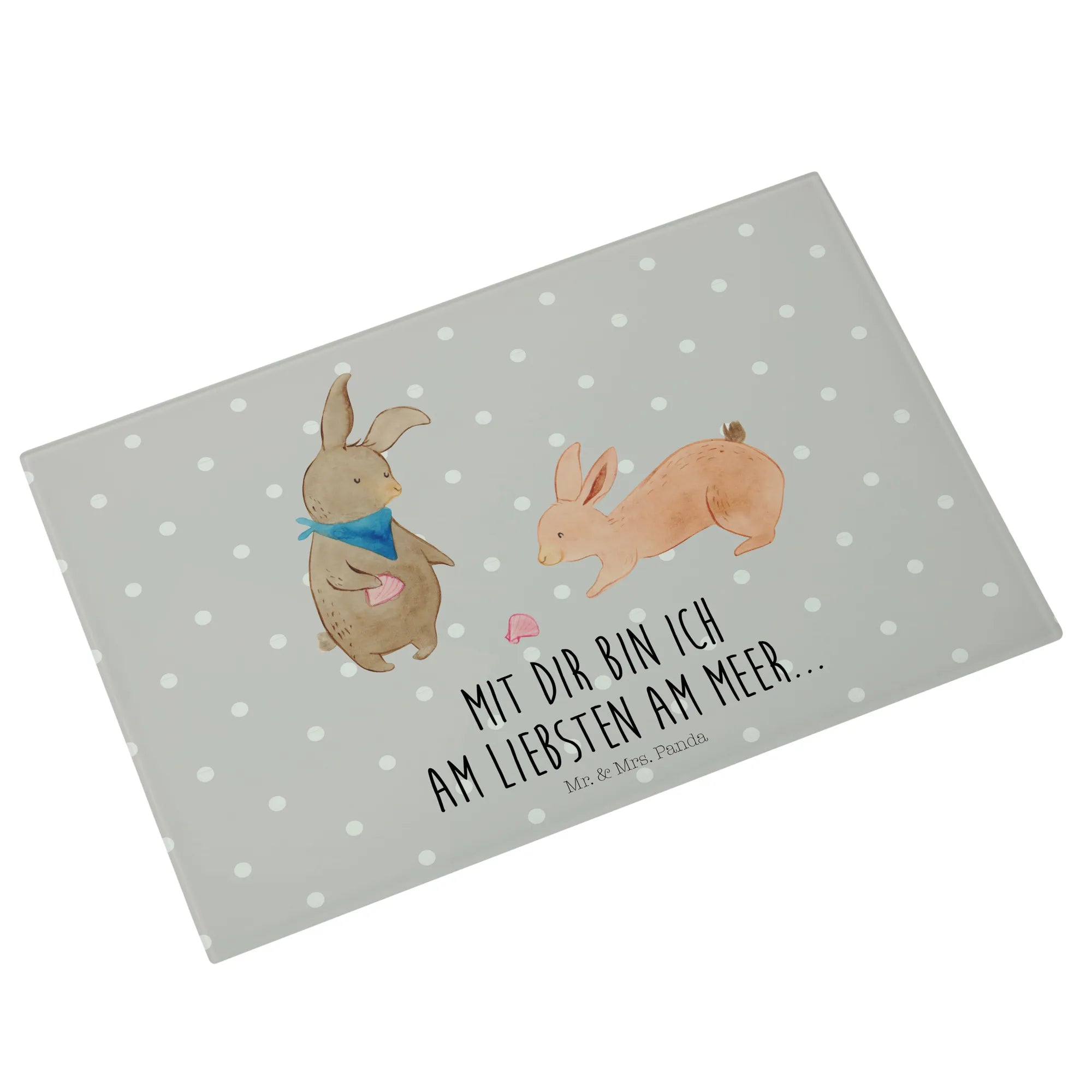 Das Medium Glas Schneidbrett mit dem zuckersüßen Hasen Muschel-Motiv von Mr. & Mrs. Panda ist die perfekte Geschenkidee für alle, die das Besondere lieben! Dieses hochwertige Schneidbrett bringt nicht nur Freude in die Küche, sondern zaubert auch ein Lächeln auf die Gesichter Deiner Liebsten.