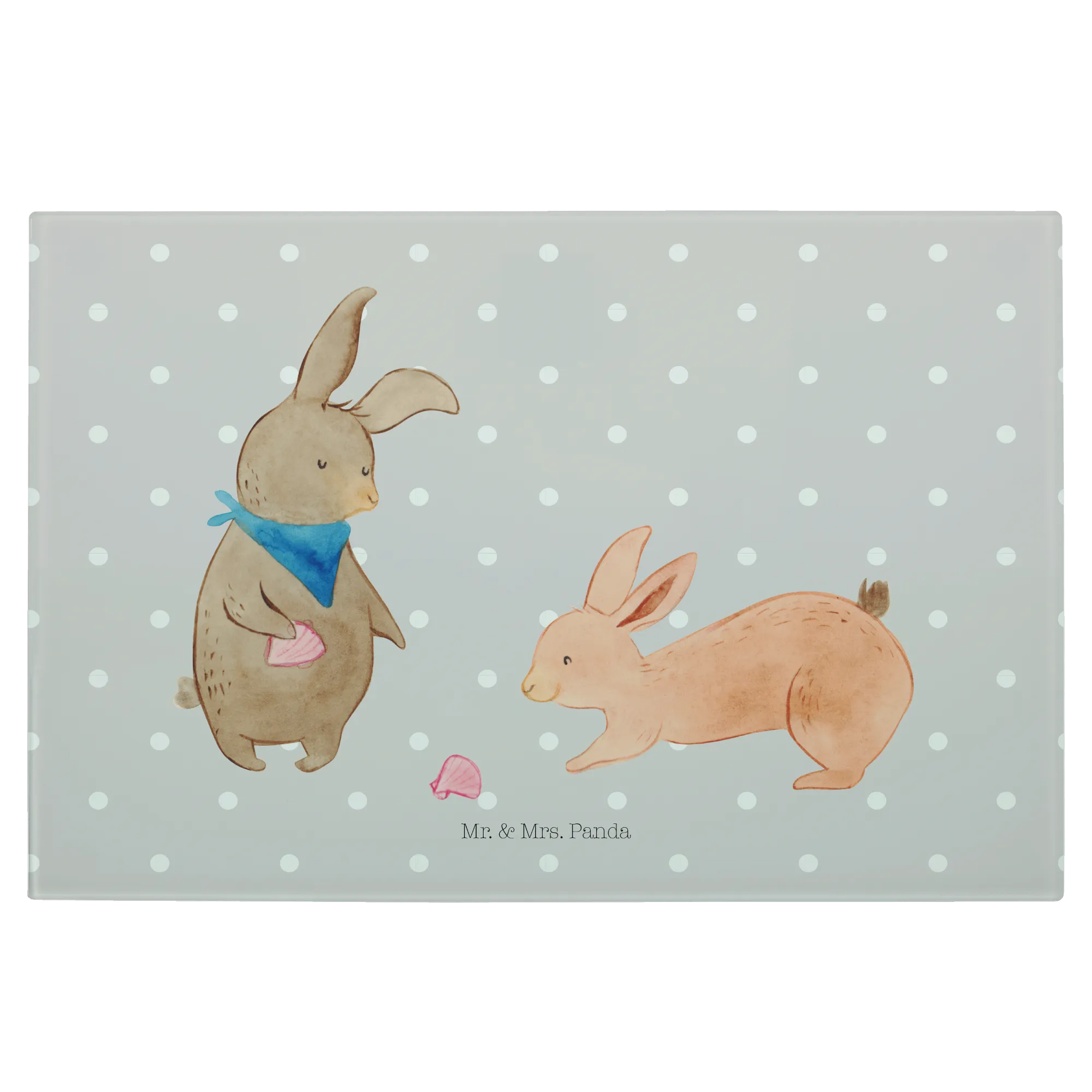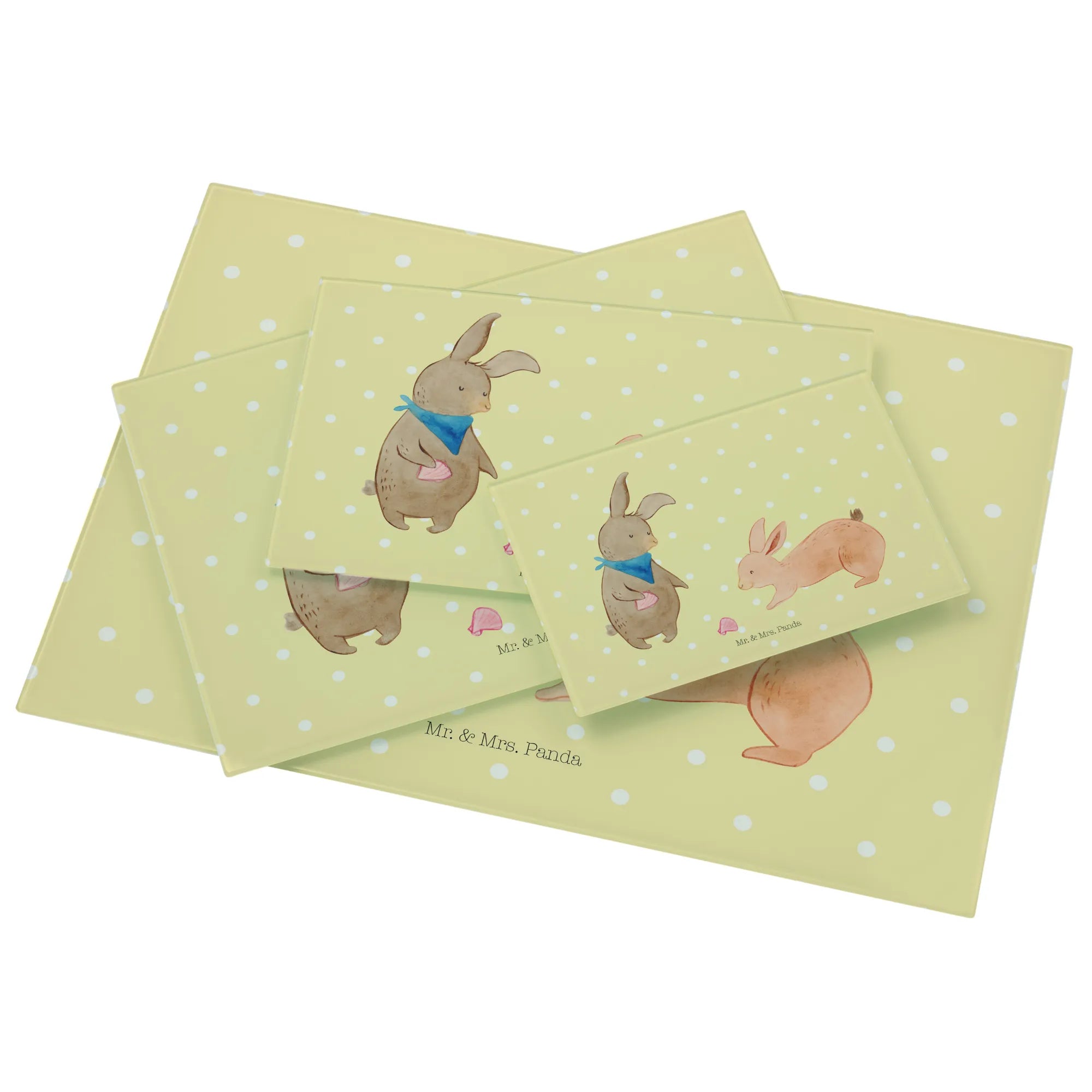 Ein einzigartiges und stabiles Medium Glas Schneidbrett von Mr. & Mrs. Panda mit fröhlichem Hasen-Motiv ist das perfekte Geschenk für Freunde und Familie! Du fragst dich, warum dieses Schneidebrett das ideale Geschenk ist? Lassen wir die Hasen sprechen!