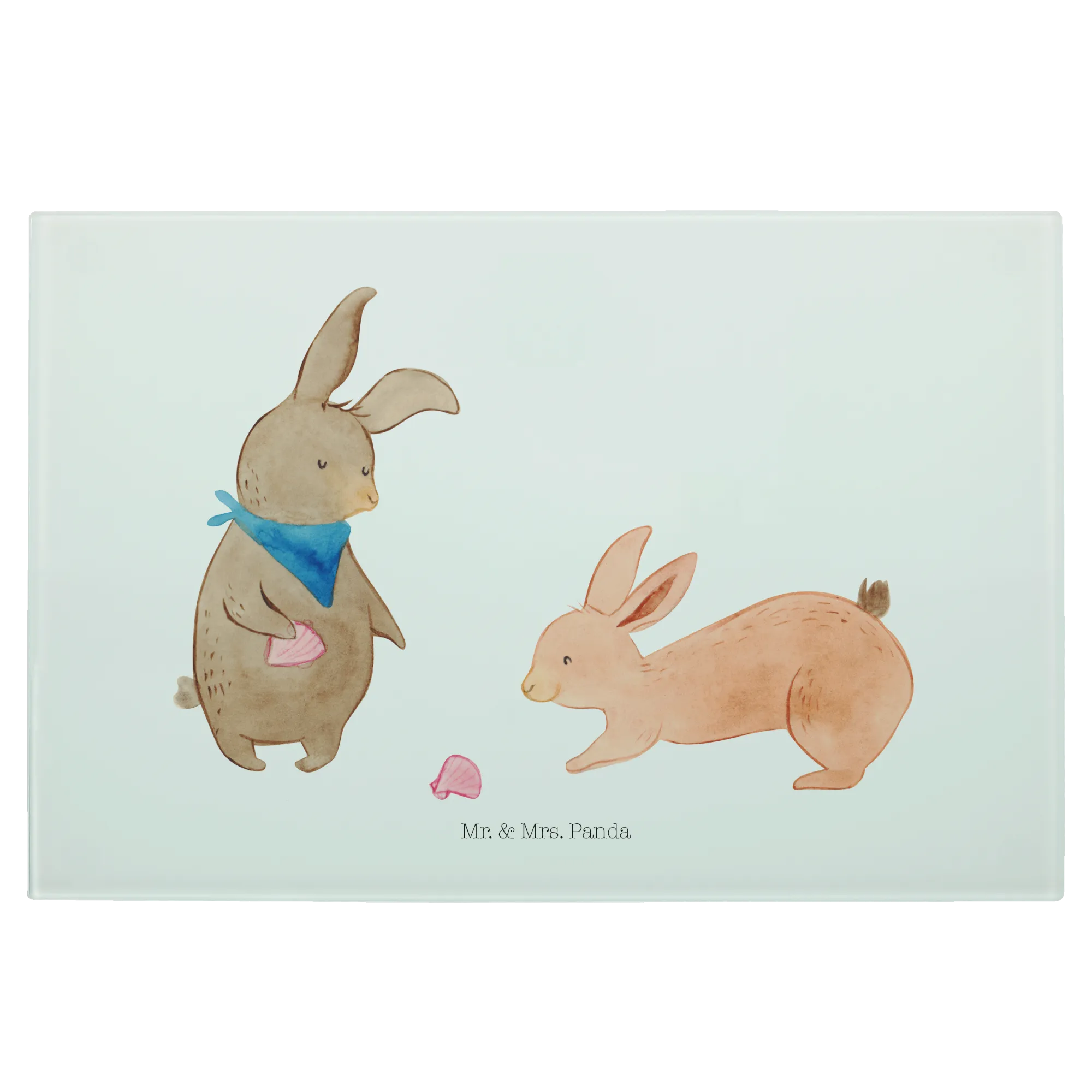 Das Medium Glas Schneidbrett mit dem zauberhaften Motiv "Hasen Muschel" von Mr. & Mrs. Panda ist das perfekte Geschenk für deine Liebsten! Es bringt eine ganz besondere Note in die Küche und sorgt dafür, dass das Zubereiten von Speisen zu einem echten Erlebnis wird. Die liebevoll gestaltete Illustration zeigt zwei stilisierte Hasen, die zusammen Muscheln sammeln, und strahlt eine harmonische, freundliche Atmosphäre aus.