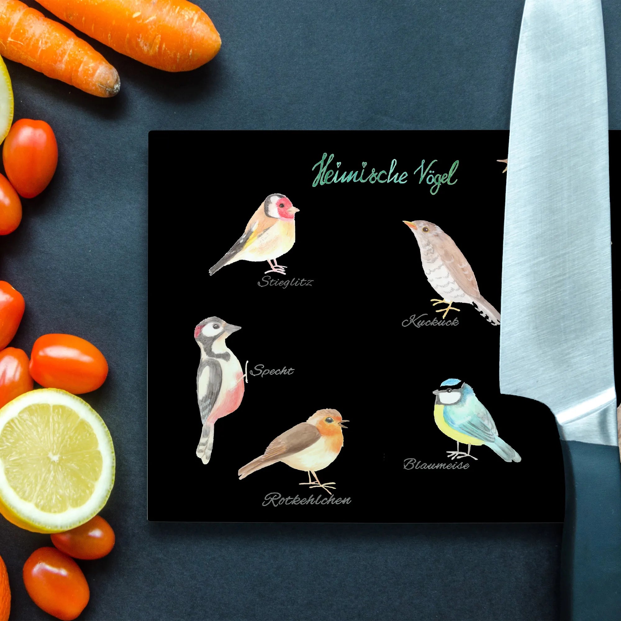 Das XL Glas Schneidbrett mit dem zauberhaften Motiv der heimischen Vögel ist das perfekte Geschenk für Naturliebhaber und Küchenfreunde! Egal ob fürs Frühstück, beim Kochen oder einfach als dekorativer Hingucker in deiner Küche, dieses wunderschöne Schneidebrett wird jede Stelle erhellen und einen Hauch von Natur in dein Zuhause bringen. Mit den filigranen, handgezeichneten Aquarellen von Mrs. Panda zeigen sich hier die heimischen Vogelarten wie Stieglitz, Kuckuck, Nachtigall, Dompfaff, Specht, Rotkehlchen, Blaumeise und Zaunkönig – ein wahres Fest für die Sinne!