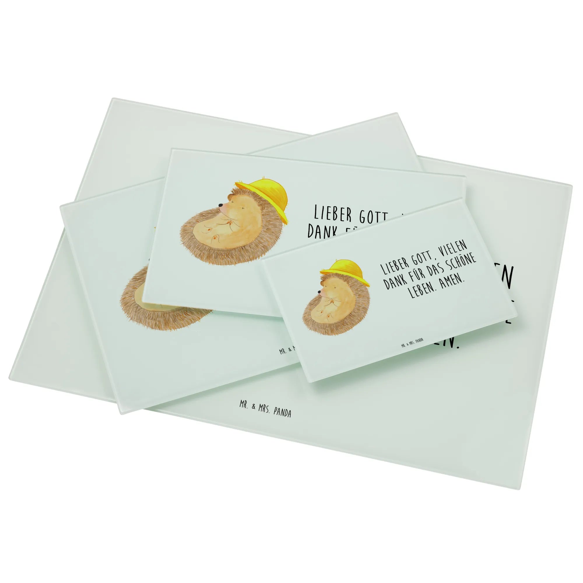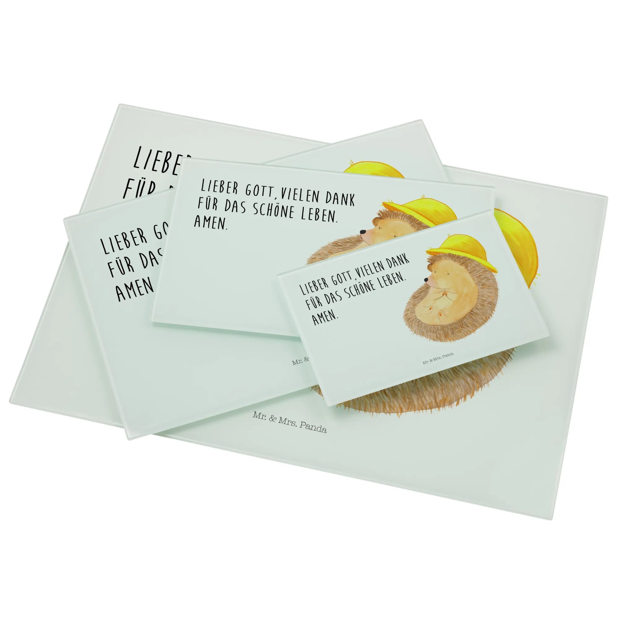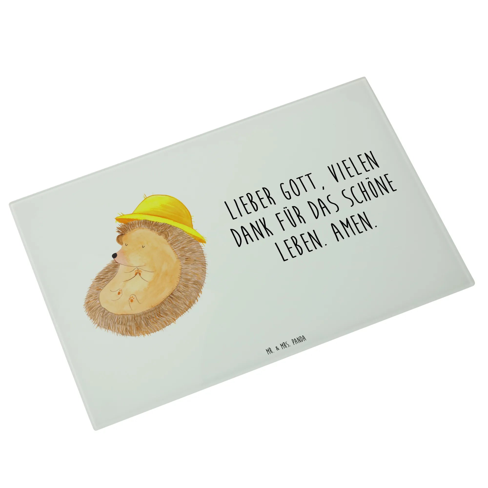 Glasschneidebrett Igel Beten - Medium Glas Schneidbrett - mit Spruch - Weiß