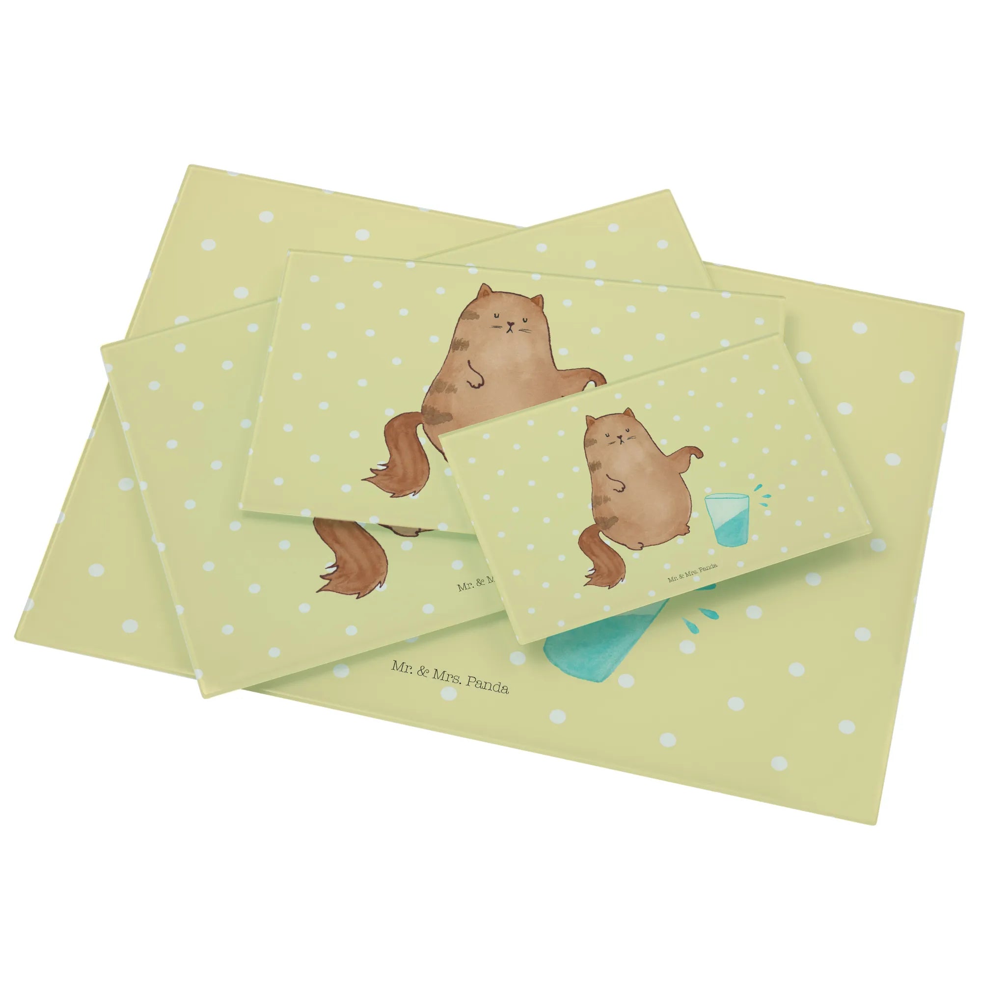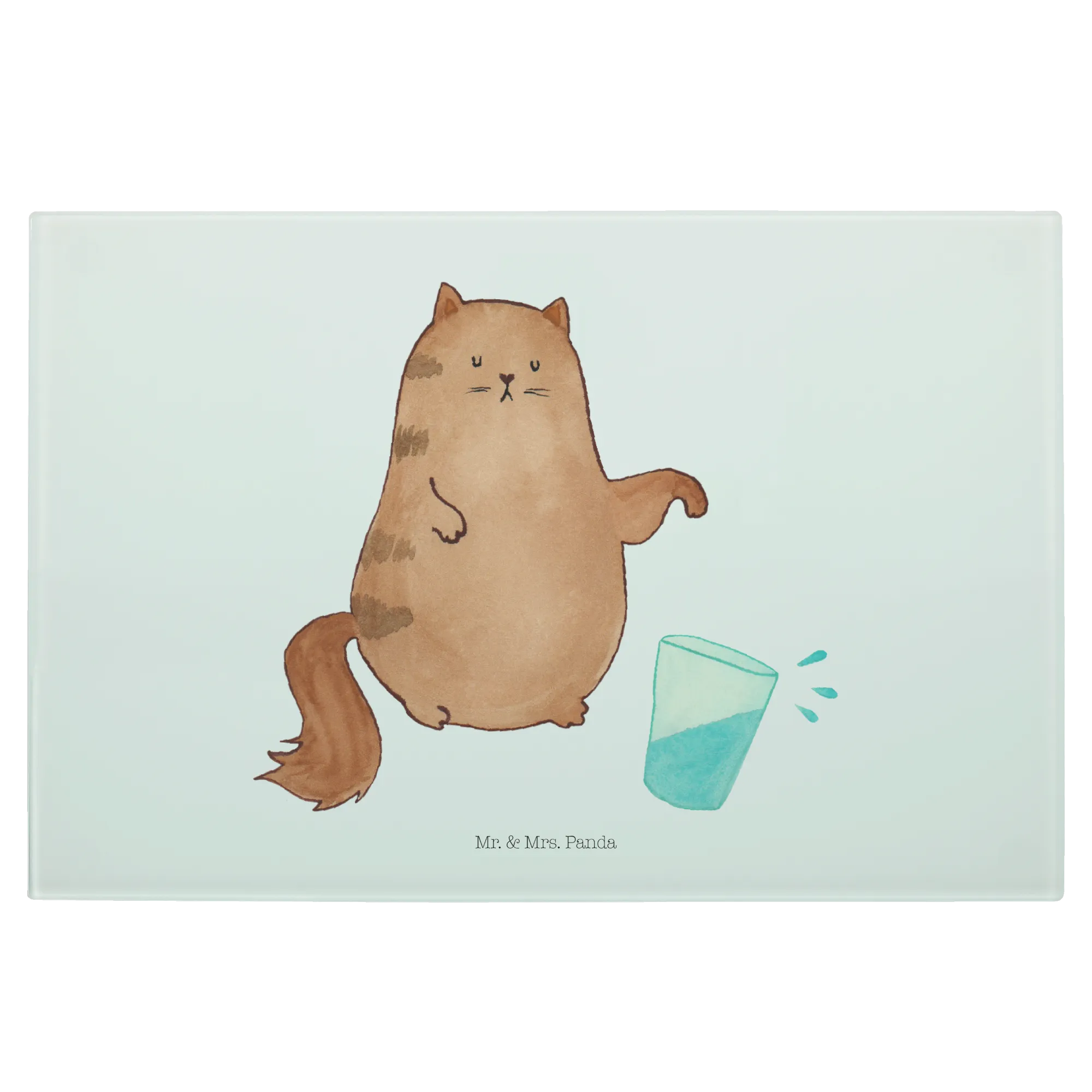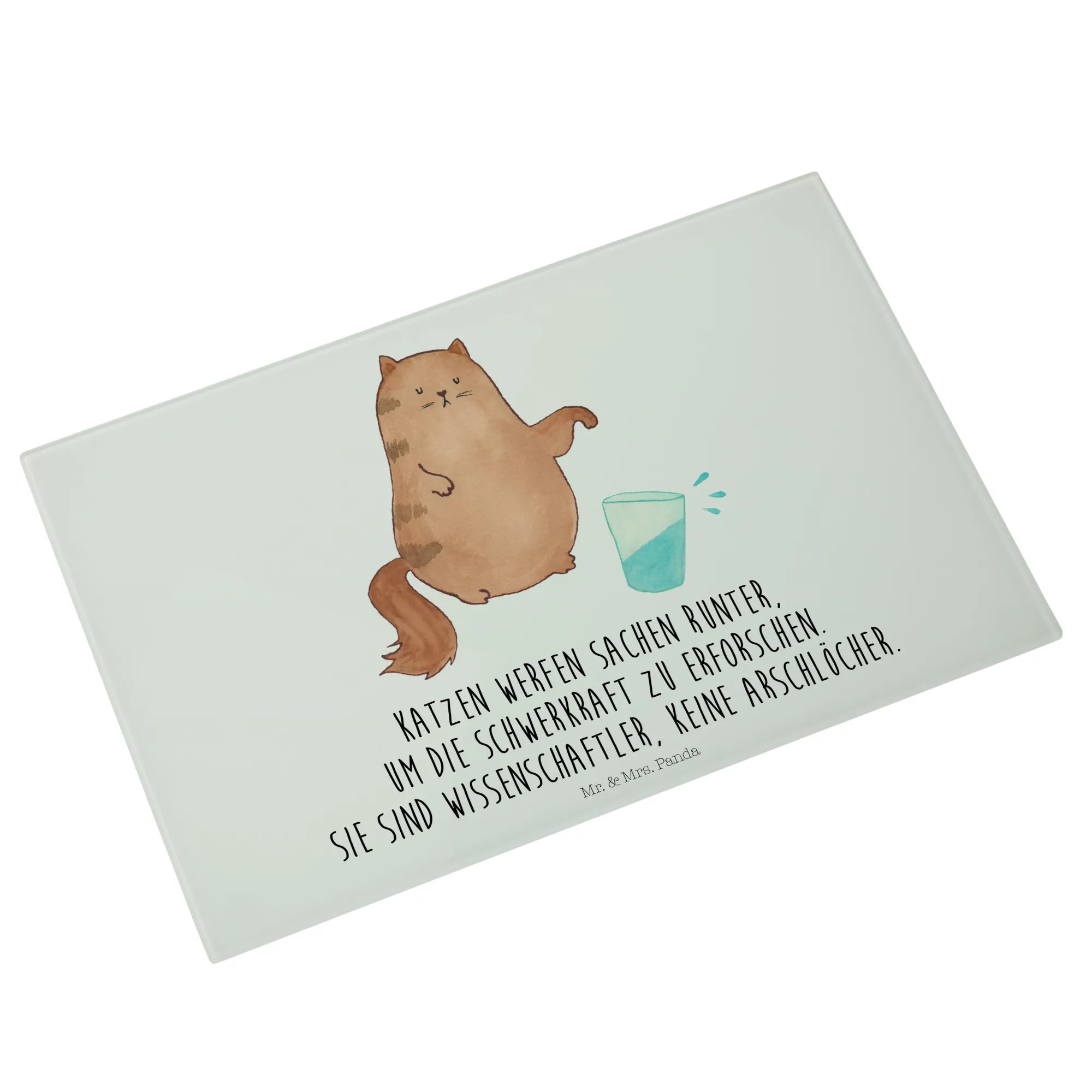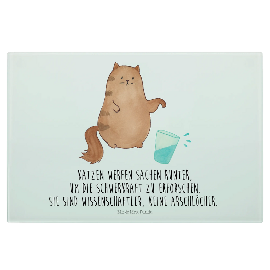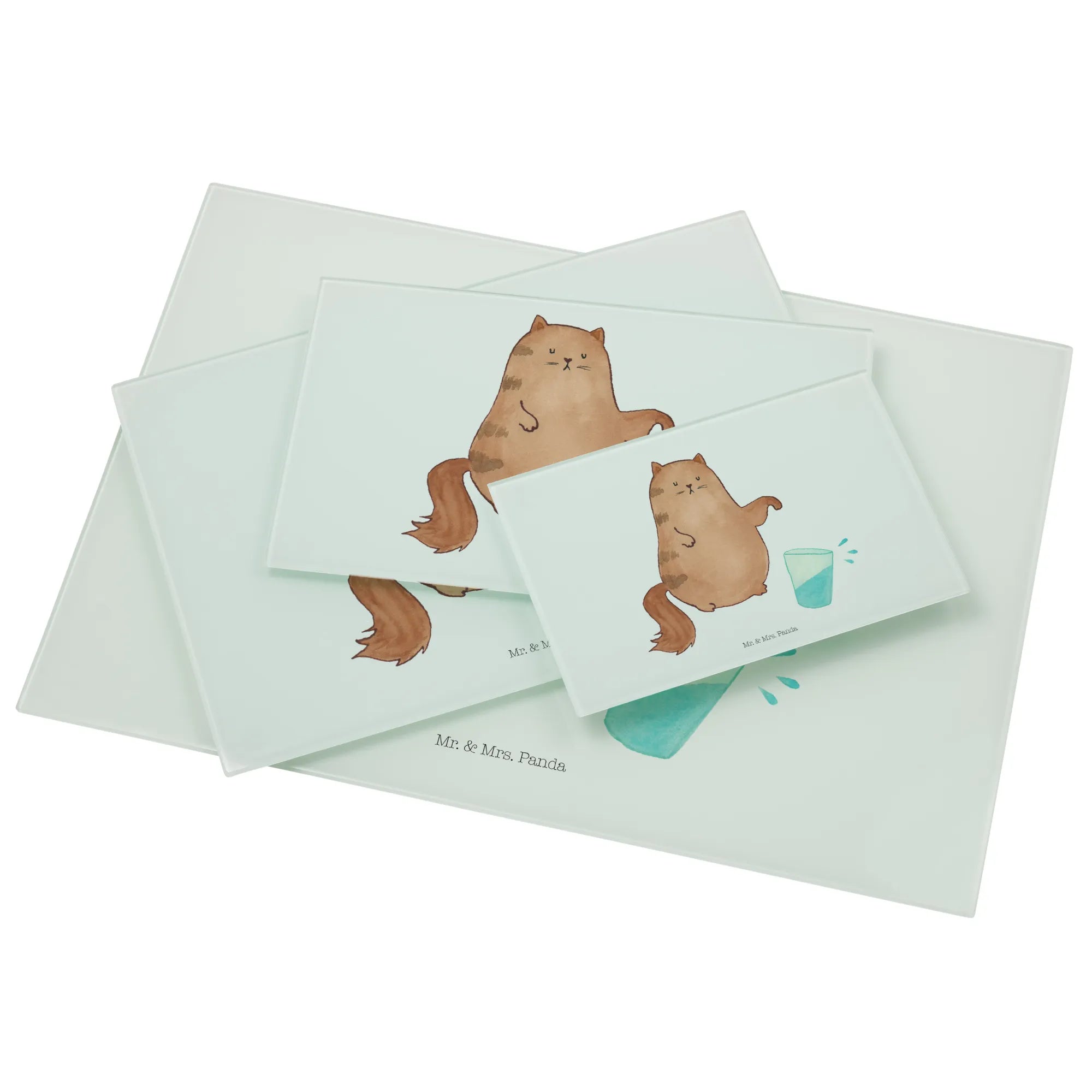 Das Medium Glas Schneidbrett mit dem herzerwärmenden Motiv 'Katze Wasserglas' aus der wundervollen Katzen-Kollektion von Mr. & Mrs. Panda ist das perfekte Geschenk für Katzenliebhaber und -besitzer.