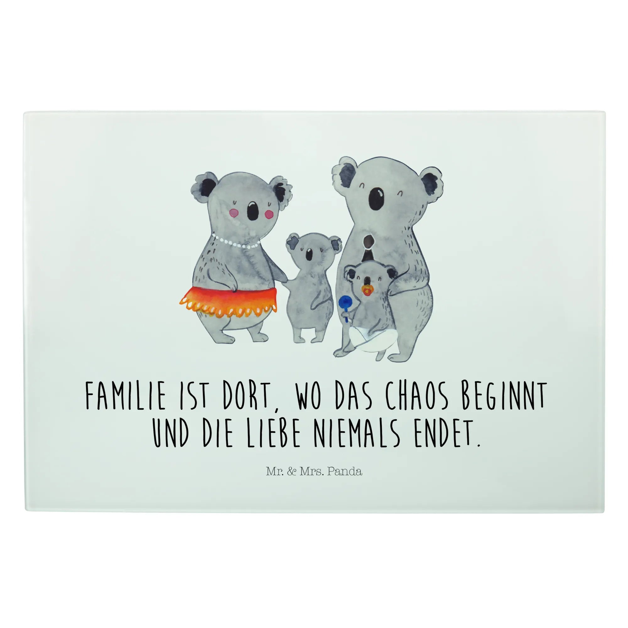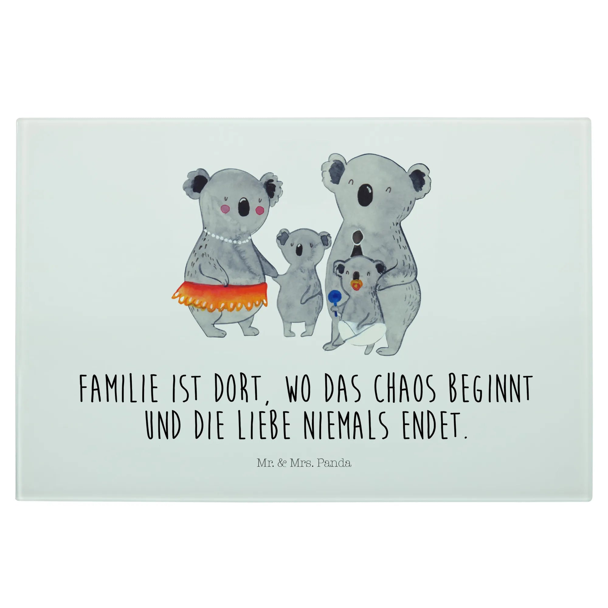 Glasschneidebrett Koala Familie - Medium Glas Schneidbrett - mit Spruch - Weiß