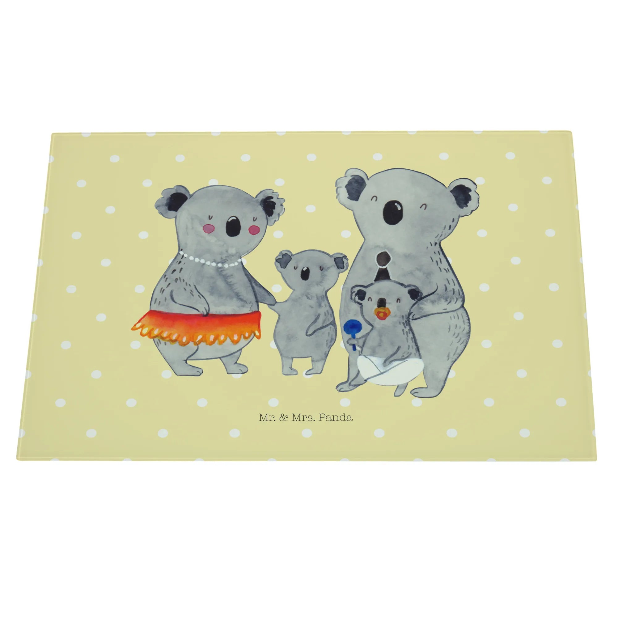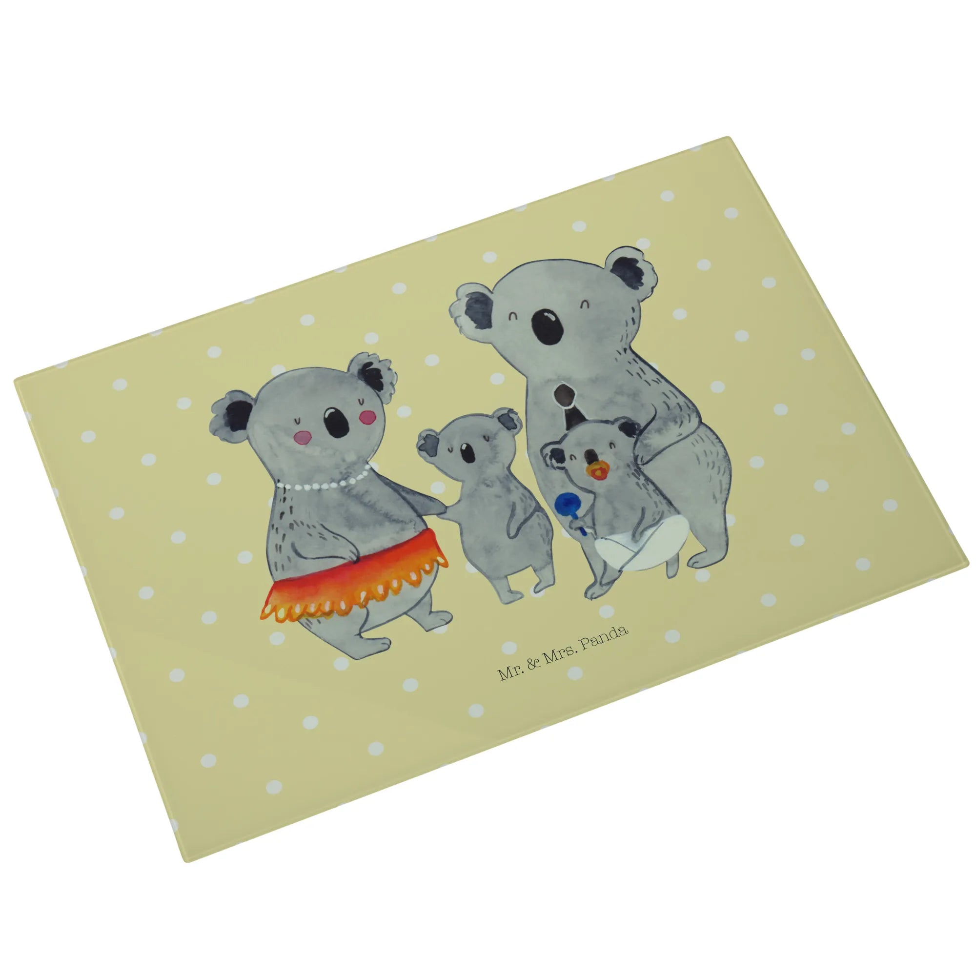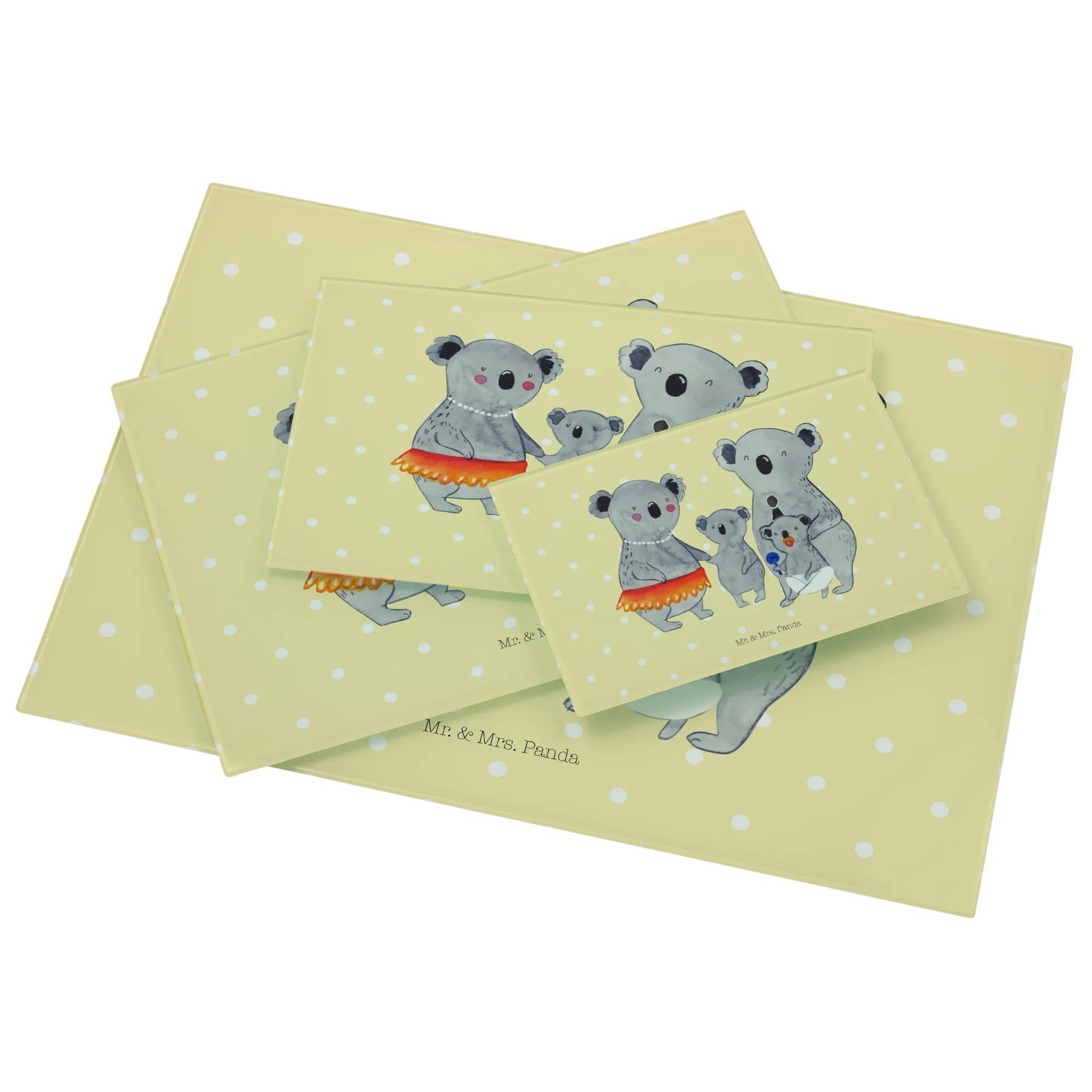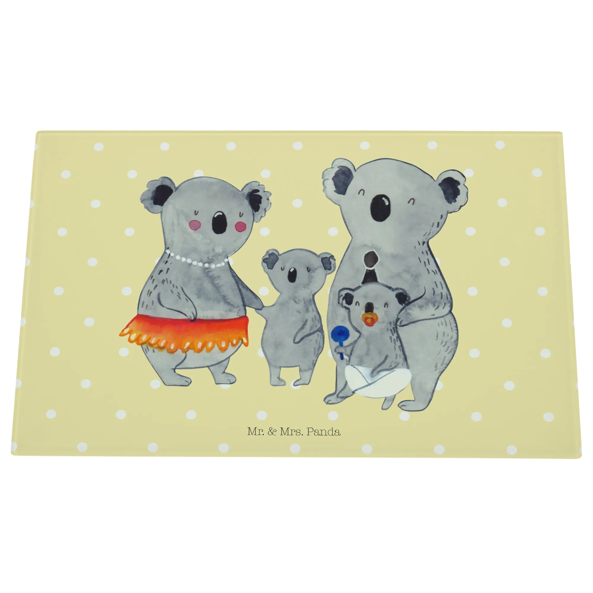 Entdecke das bezaubernde Medium Glas Schneidbrett mit dem niedlichen Koala Familienmotiv von Mr. & Mrs. Panda! Dieses wunderschöne, in einem hellen Design gehaltene Schneidebrett ist nicht nur funktional, sondern auch ein wahrer Hingucker in jeder Küche.