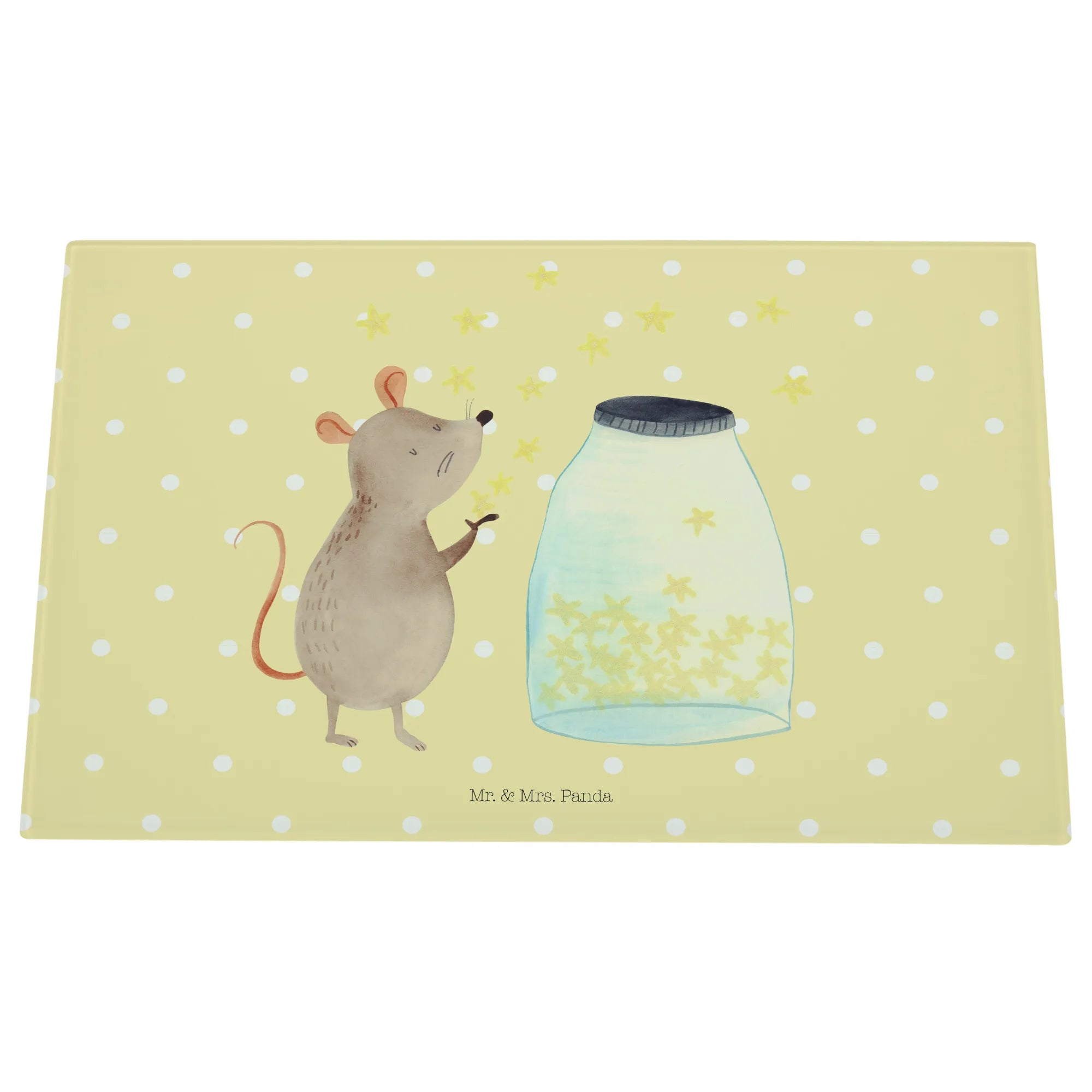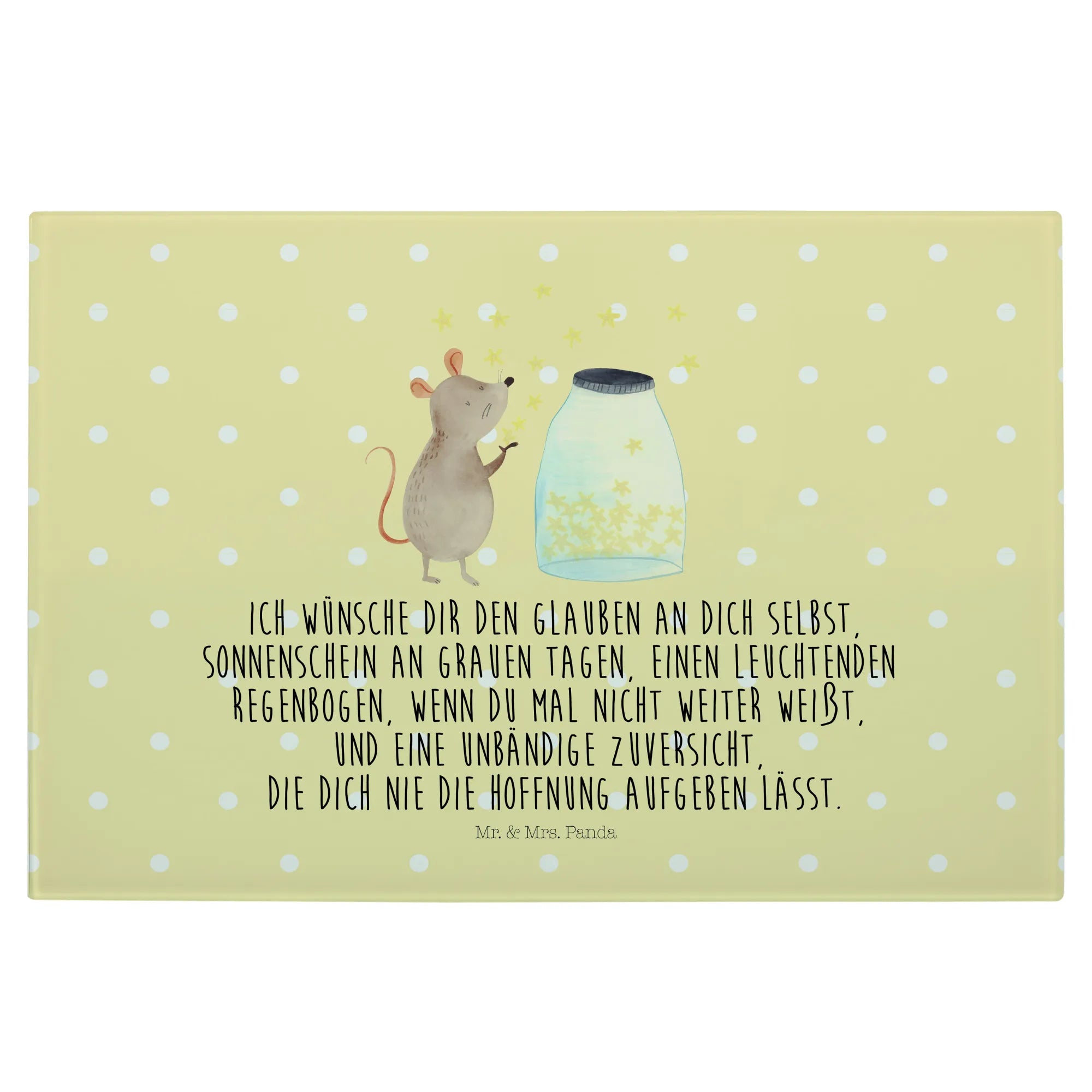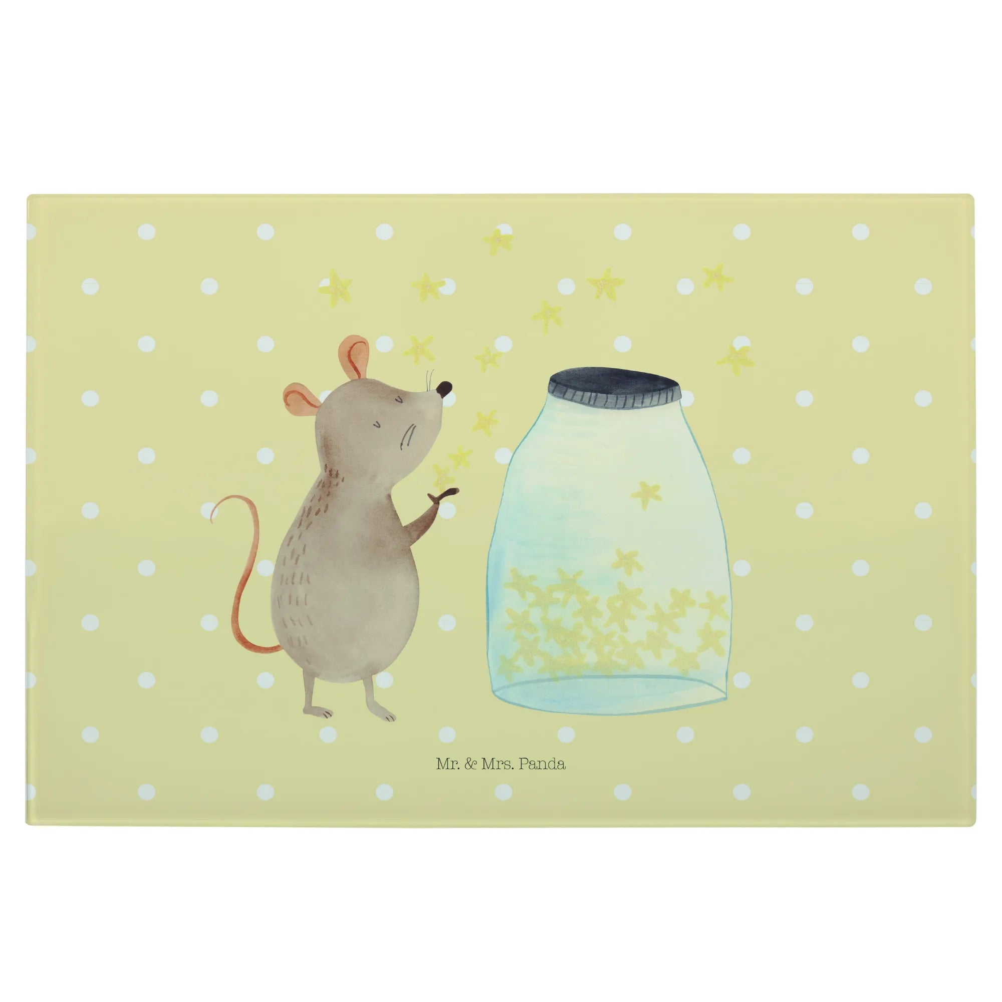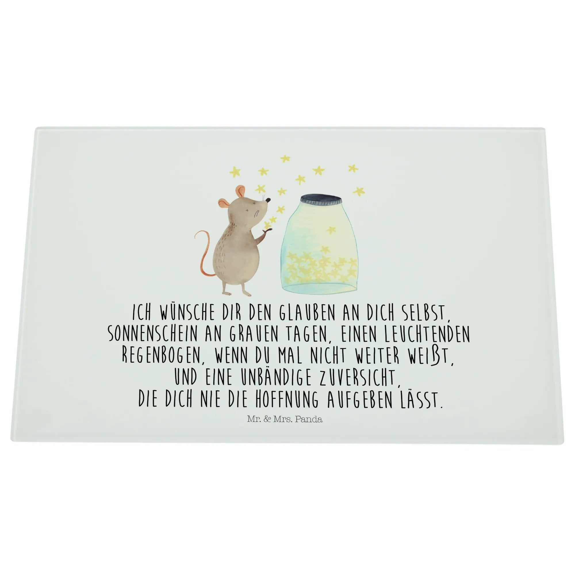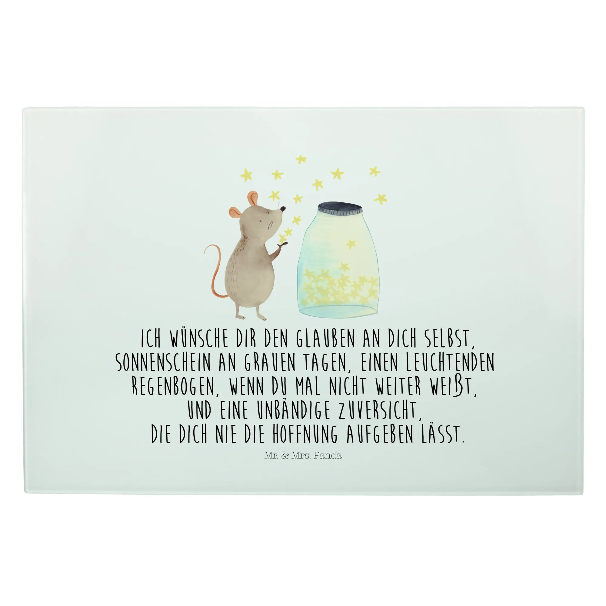 Das XL Glas Schneidbrett mit dem bezaubernden Motiv Maus Sterne von Mr. & Mrs. Panda ist das perfekte Geschenk für jeden Kochliebhaber und ist ideal für besondere Anlässe wie Taufen, Geburtstage oder zur Geburt eines Kindes. Mit seiner auffälligen Grafik einer kleinen Maus, die schelmisch vor funkelnden Sternen sitzt, bringt es Freude und gute Laune in jede Küche.