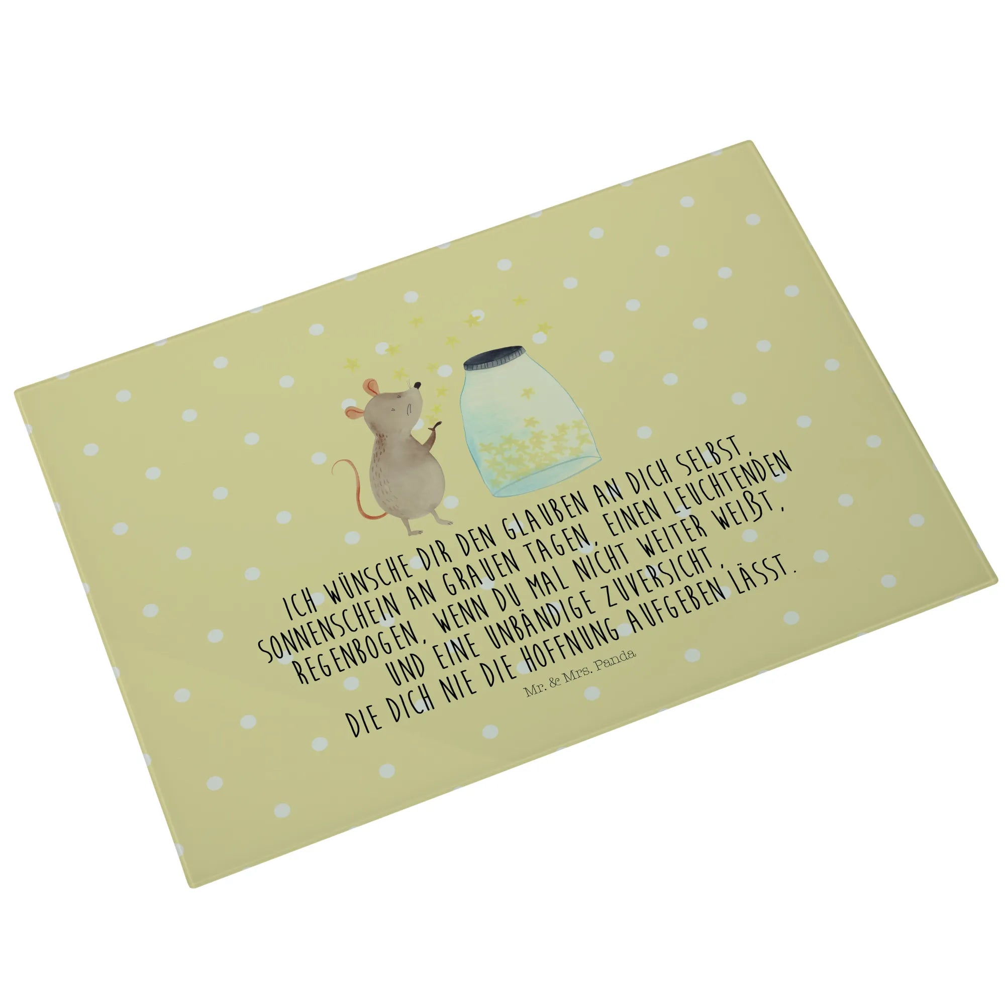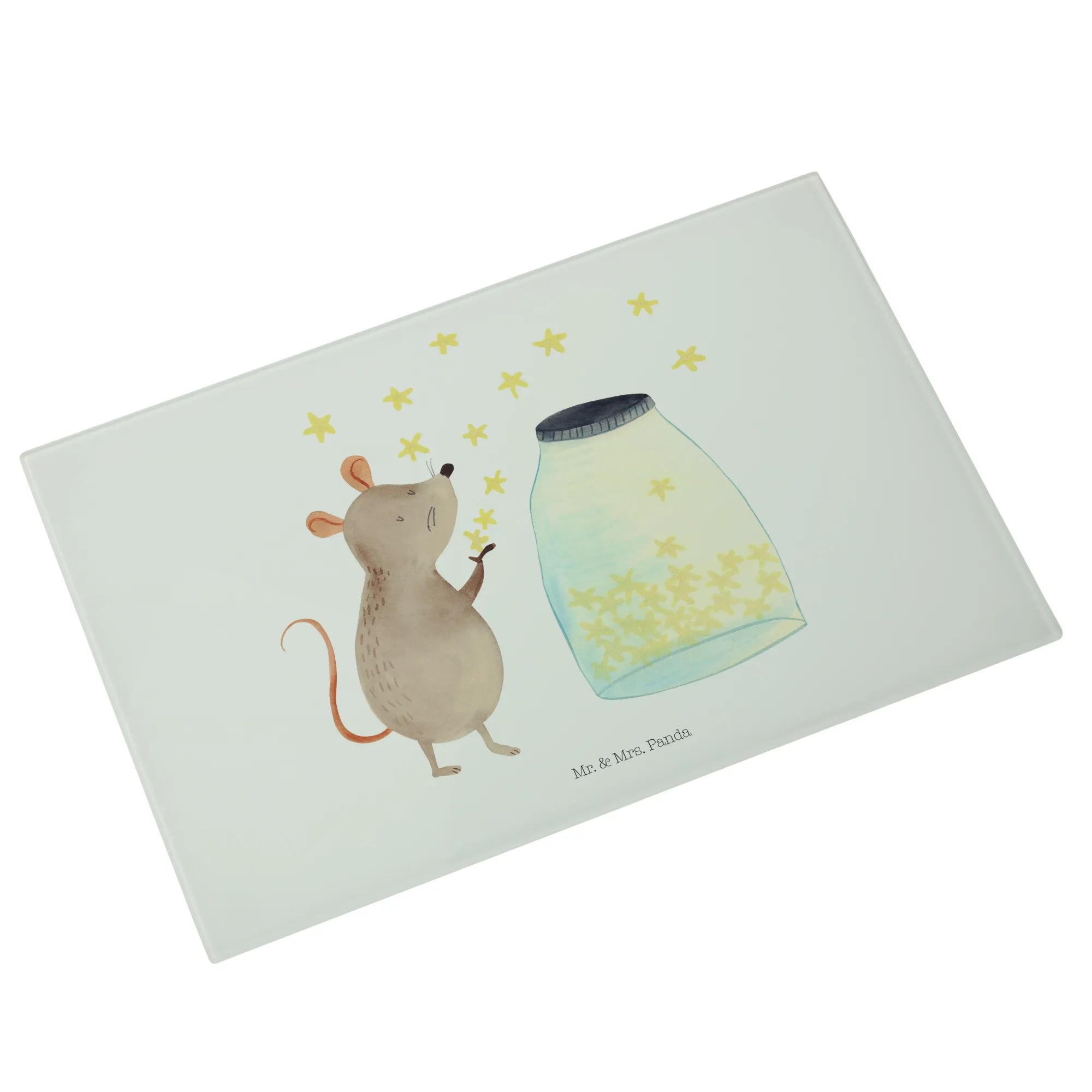 Die kleine Maus, die vor einem Glas voller funkelnder Sterne sitzt, träumt von Abenteuern und entführt Dich auf eine wunderbare Reise durch die Weiten des Universums. Diese besondere Illustration strahlt Hoffnung und Träume aus und eignet sich hervorragend als Taufgeschenk oder für die Geburt des ersten Kindes. Es ist robust, kratzfest und perfekt als Schneidebrett oder zur Zubereitung von köstlichen Speisen geeignet.