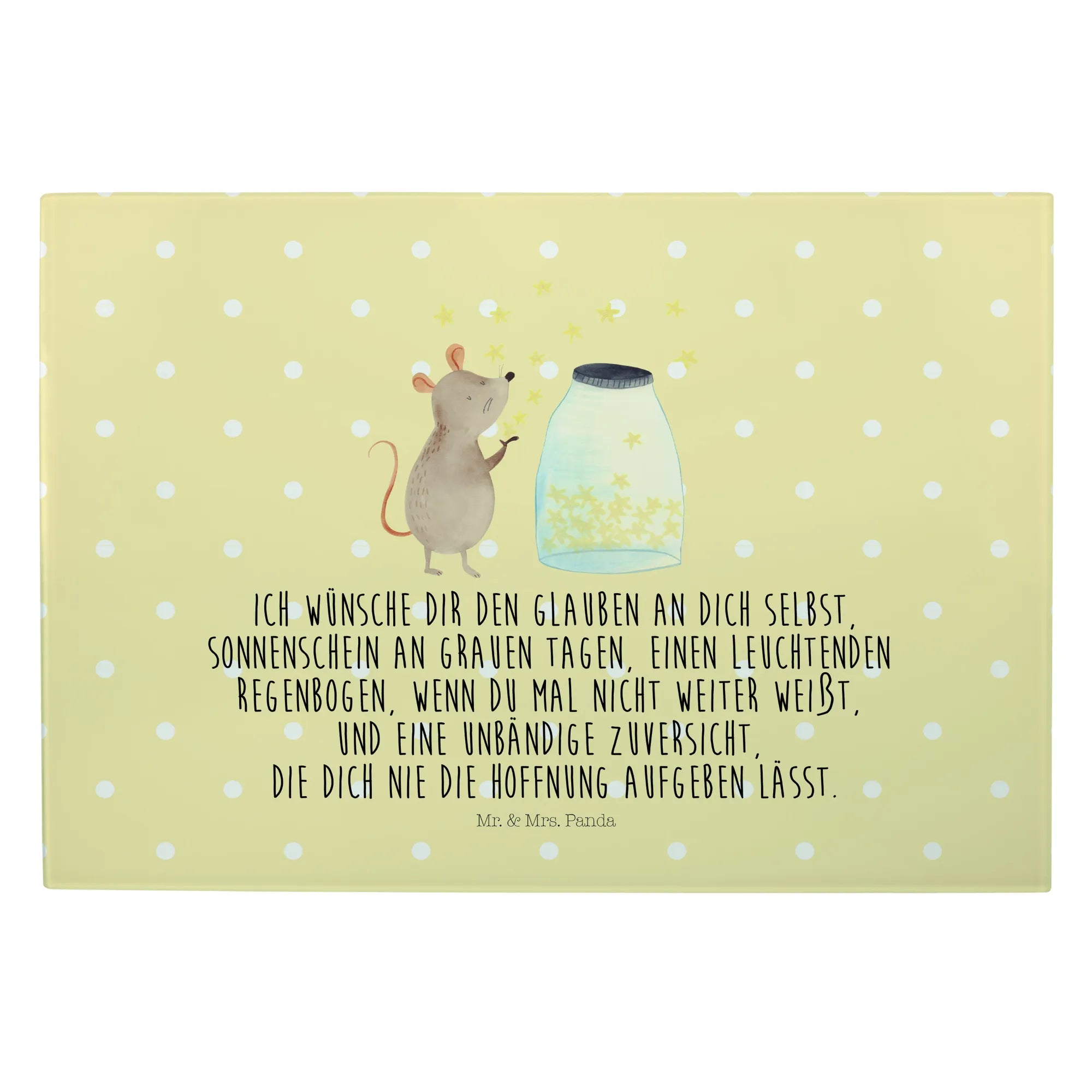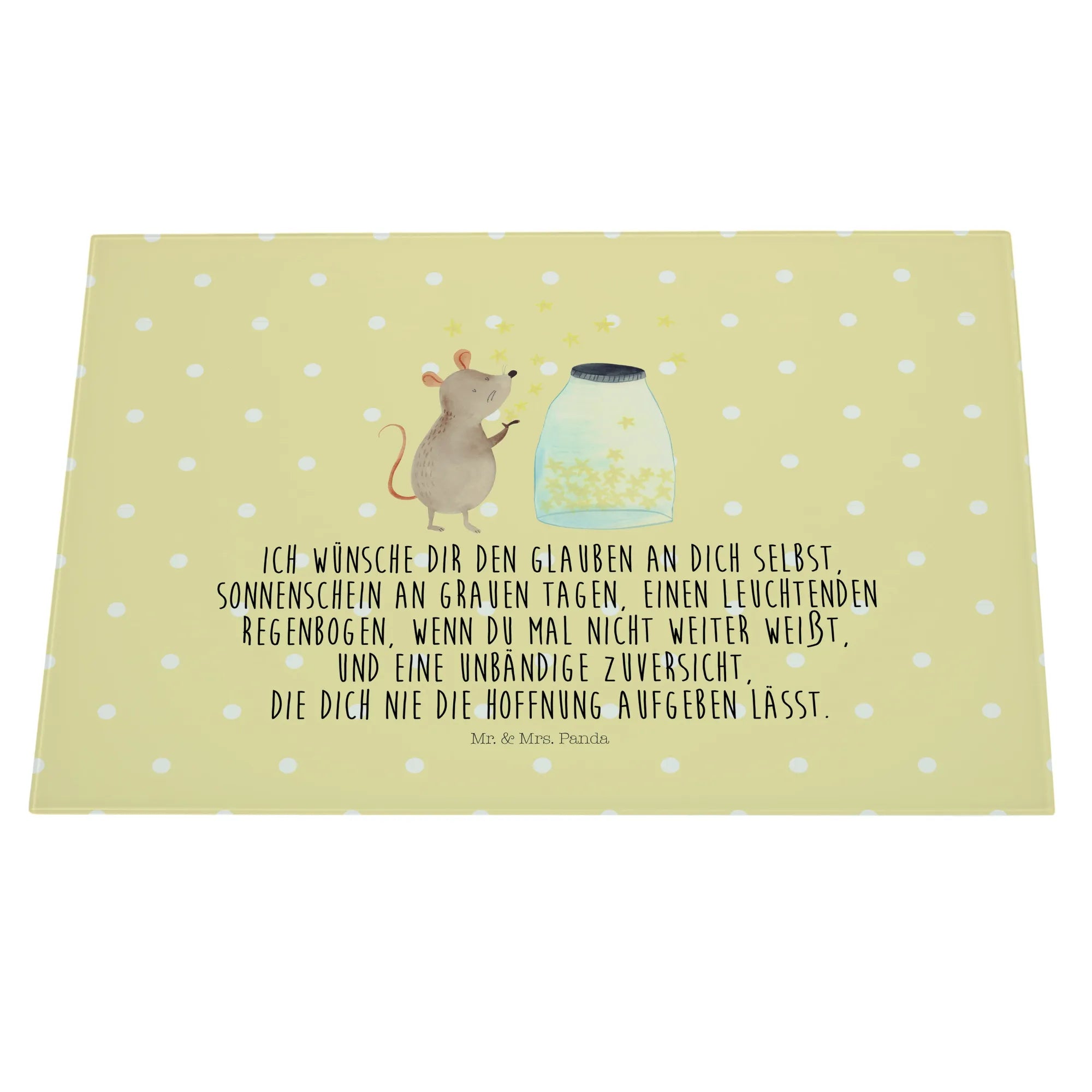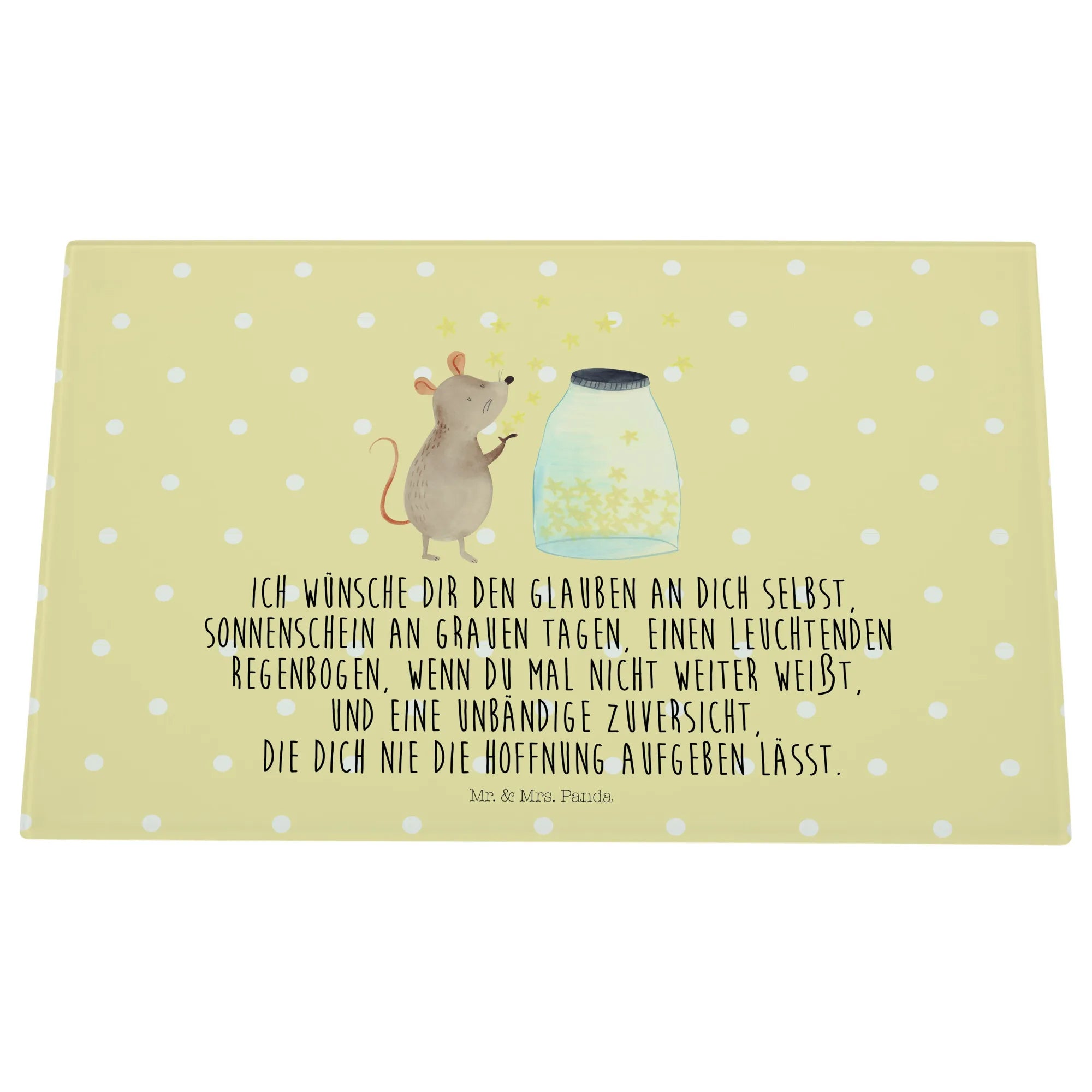 Das XL Glas Schneidbrett mit dem süßen Motiv "Maus Sterne" von Mr. & Mrs. Panda ist nicht nur ein praktisches Küchengerät, sondern auch ein tolles Geschenk für jeden Anlass. Ob zur Taufe, zur Geburt des ersten Kindes oder sogar als Mitbringsel zum Kindergeburtstag – dieses Schneidebrett ist die perfekte Wahl.