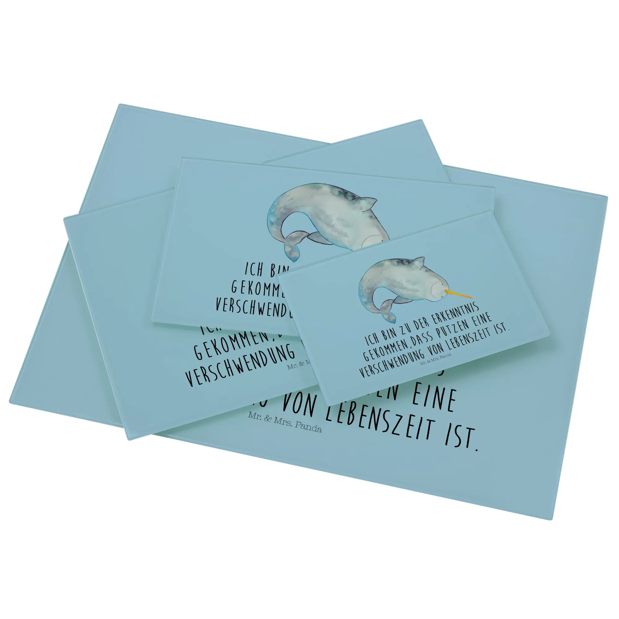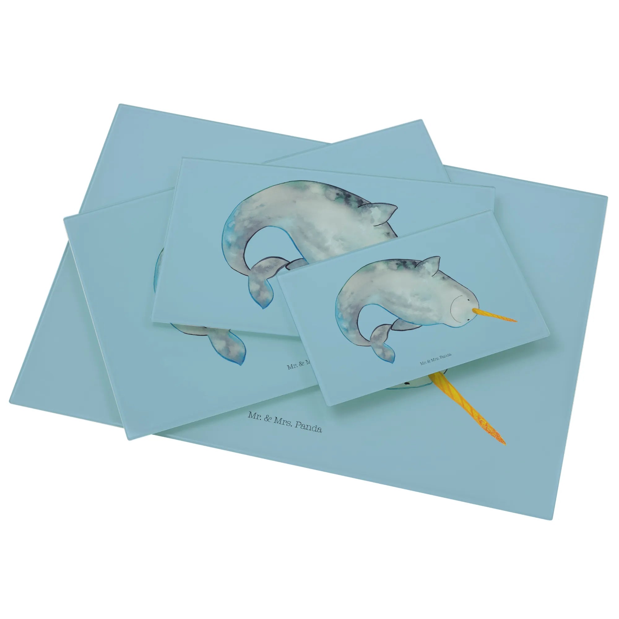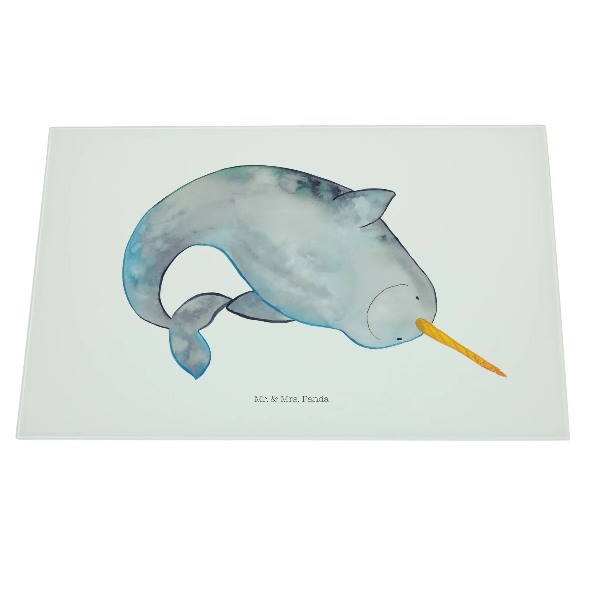 Das XL Glas Schneidbrett mit dem liebenswerten Narwal-Motiv von Mr. & Mrs. Panda ist das perfekte Geschenk für alle Meeresliebhaber und Küchenzauberer!
