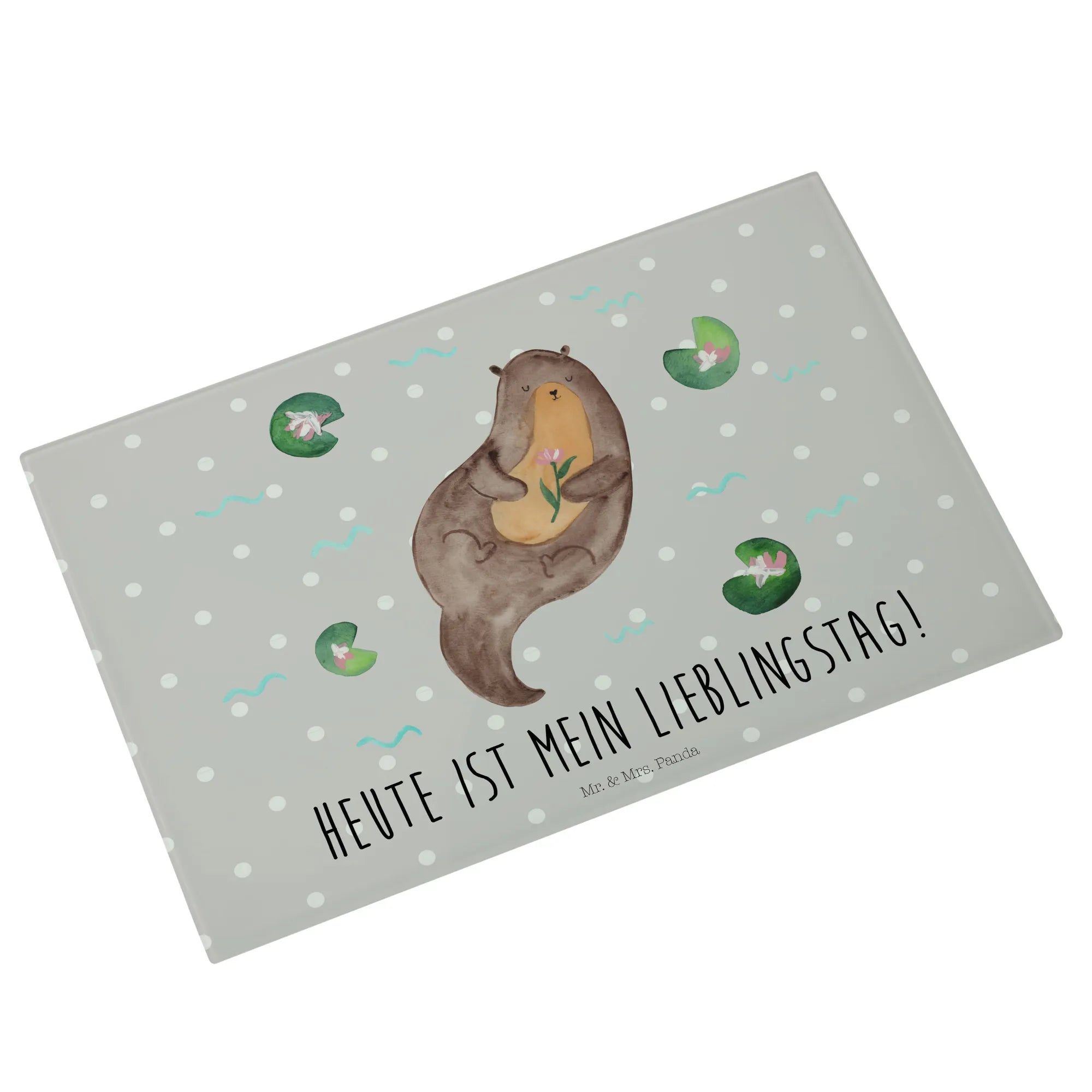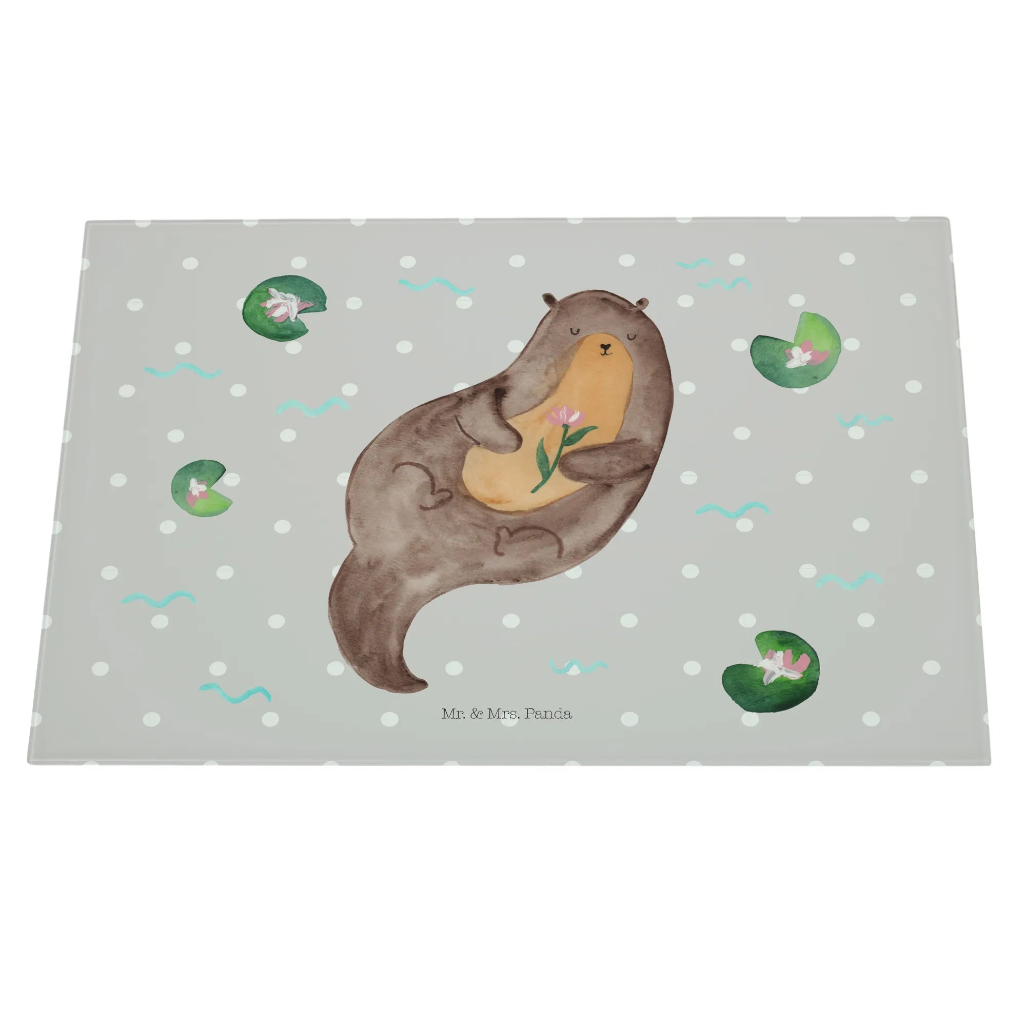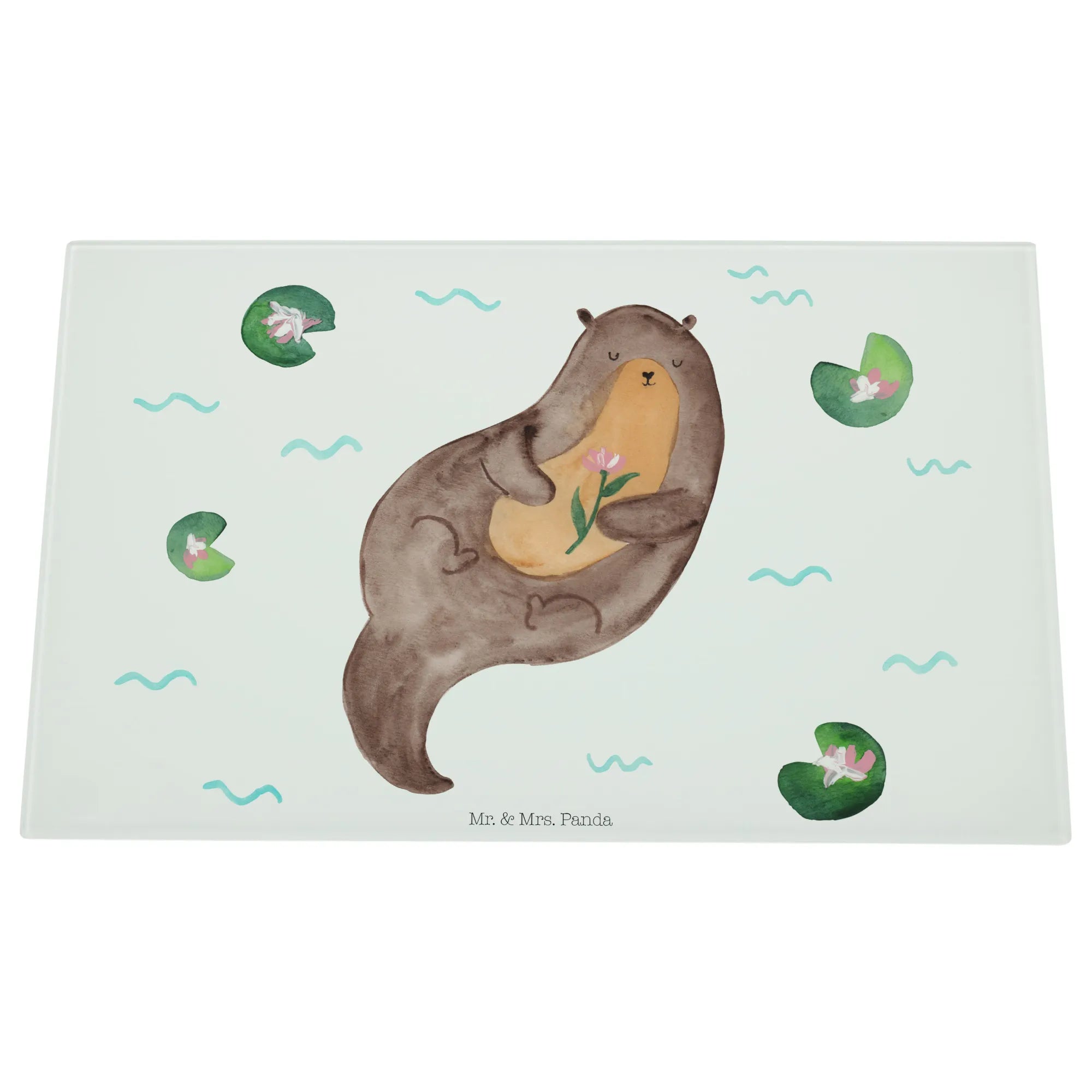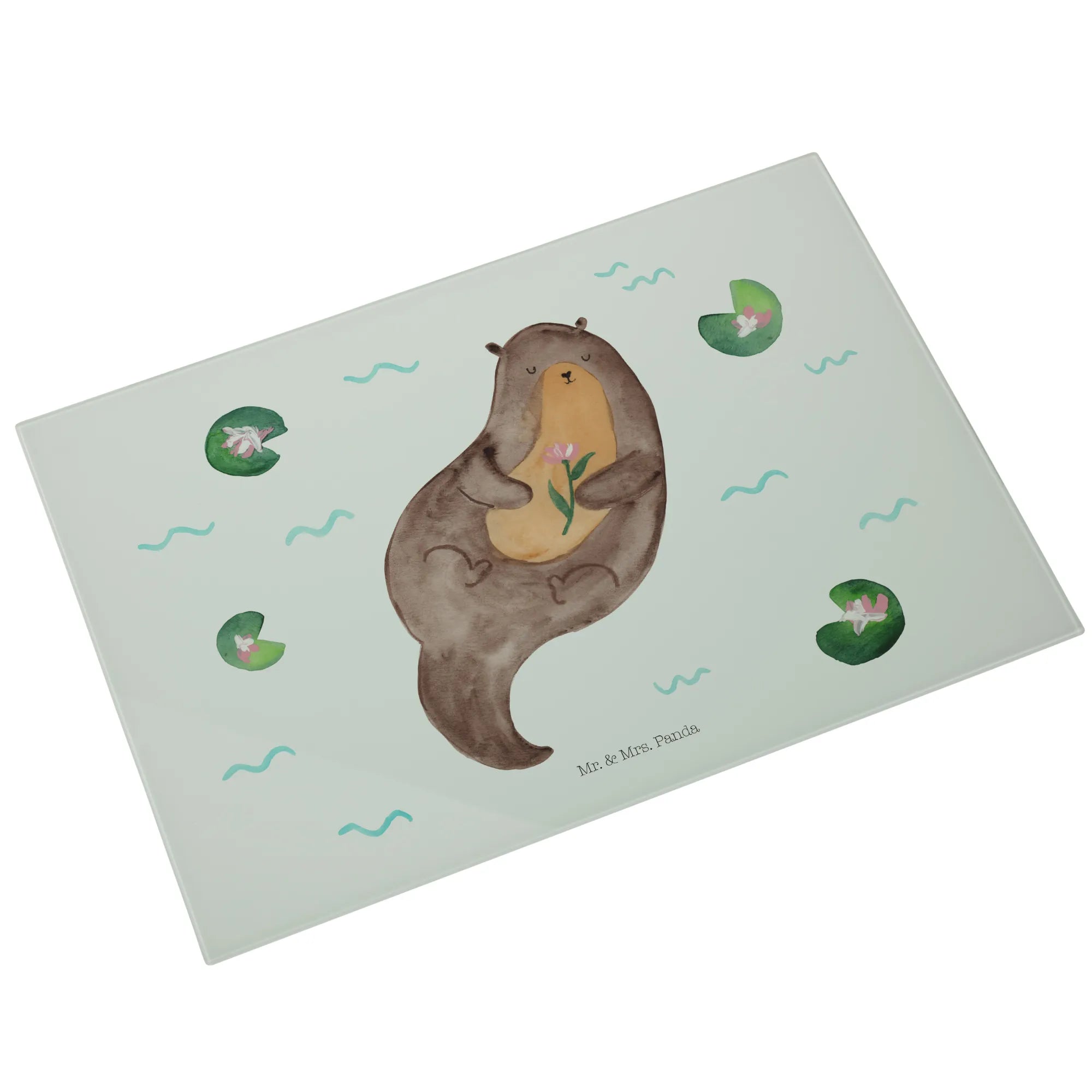 Mr. & Mrs. Panda – Medium Glas Schneidebrett „Otter mit Seerose“