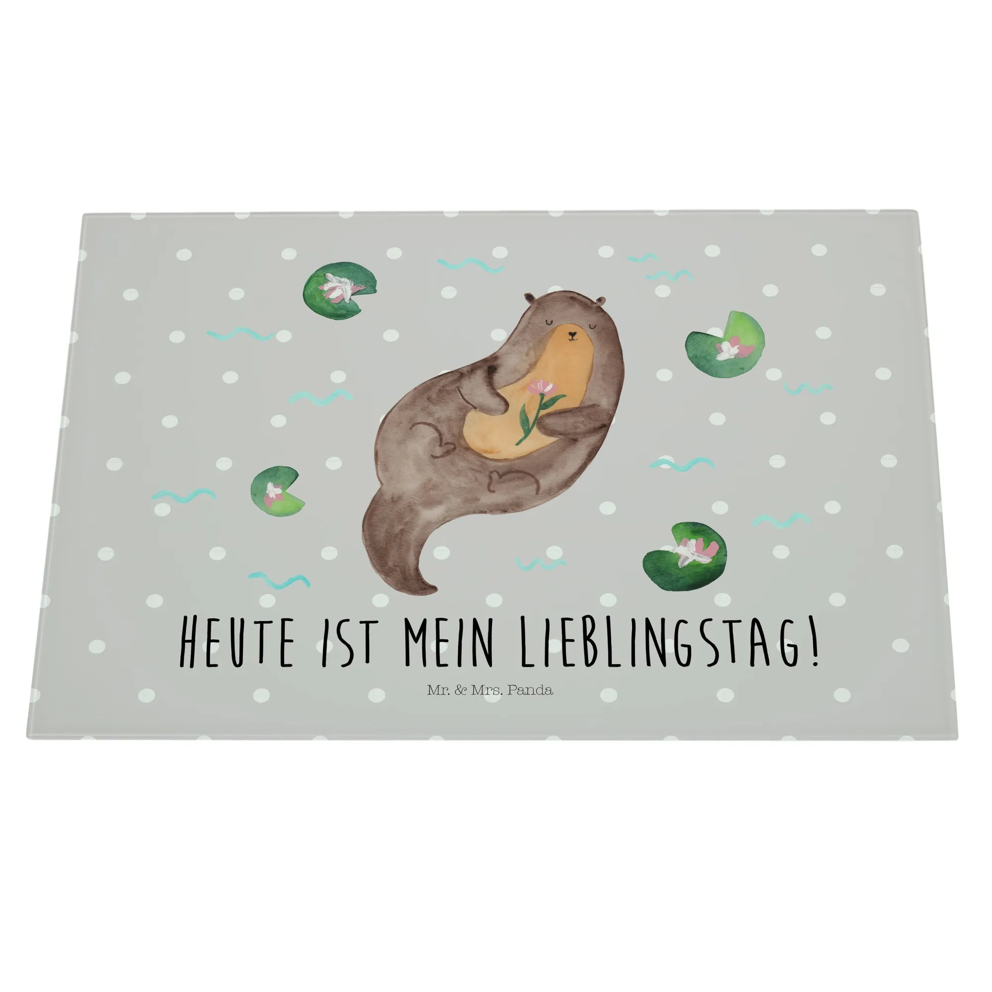 Glasschneidebrett Otter Seerose - Medium Glas Schneidbrett - mit Spruch - Grau Pastell