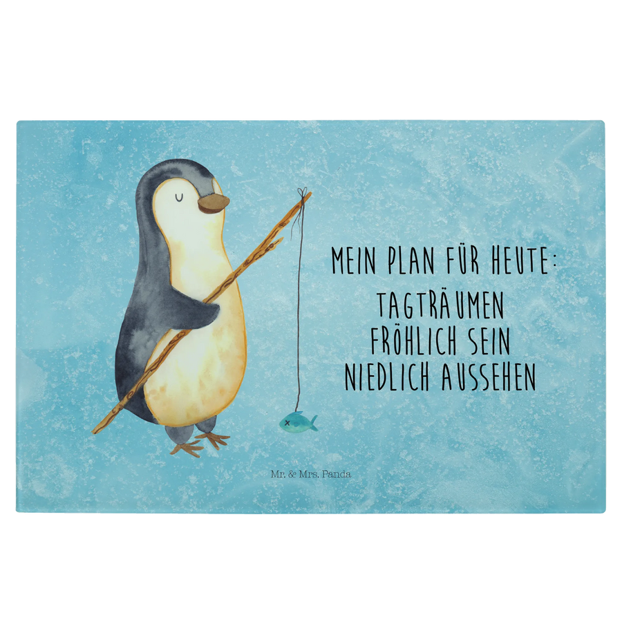 Entdecke das XL Glas Schneidbrett mit dem fröhlichen Pinguin Angler Motiv aus der Pinguin-Kollektion von Mr. & Mrs. Panda!