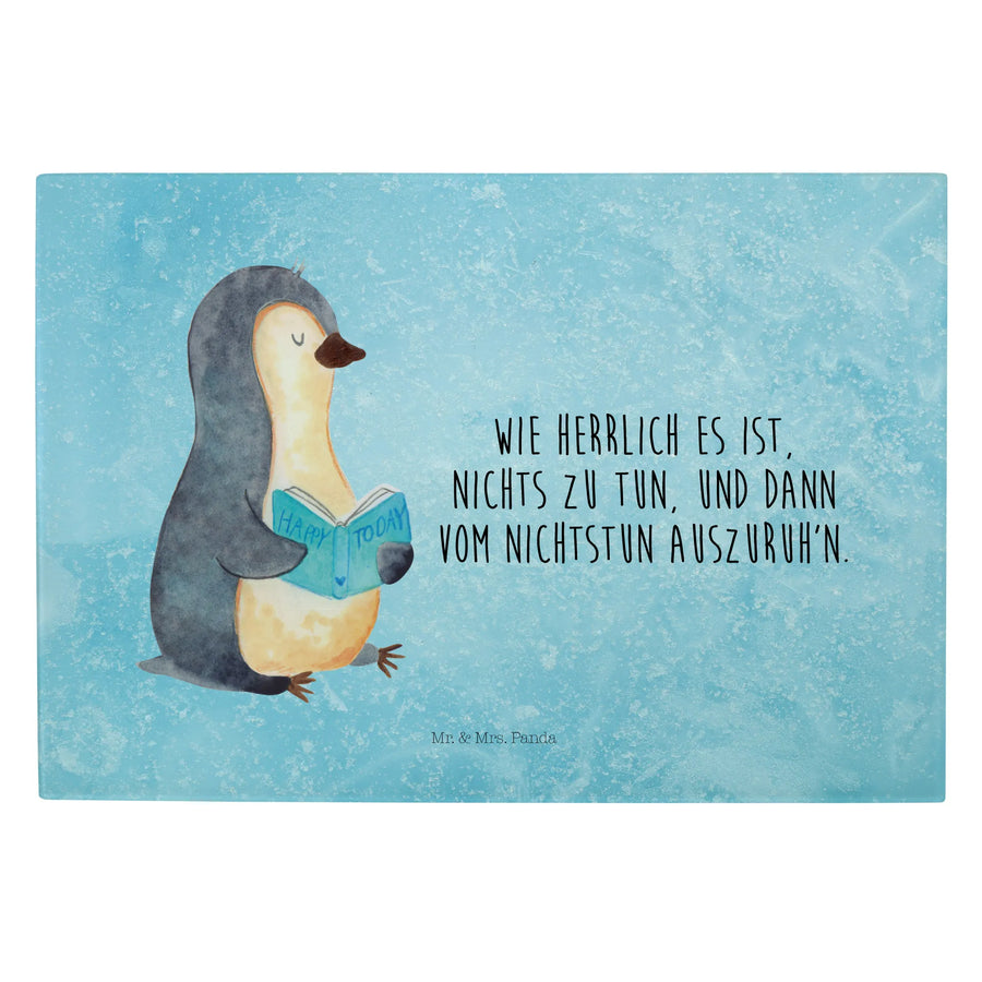 Glasschneidebrett Pinguin Buch - XL Glas Schneidbrett - mit Spruch - Eisblau