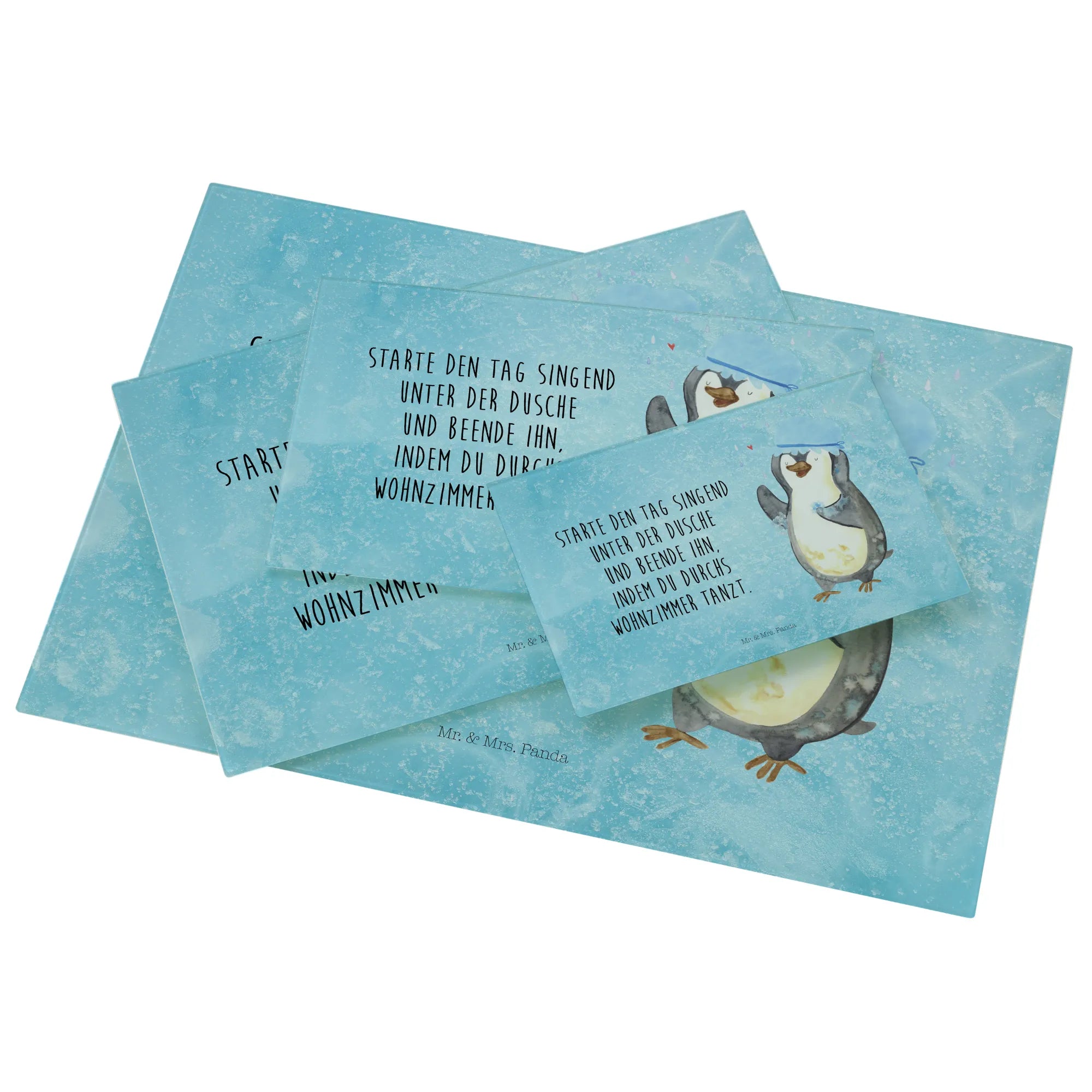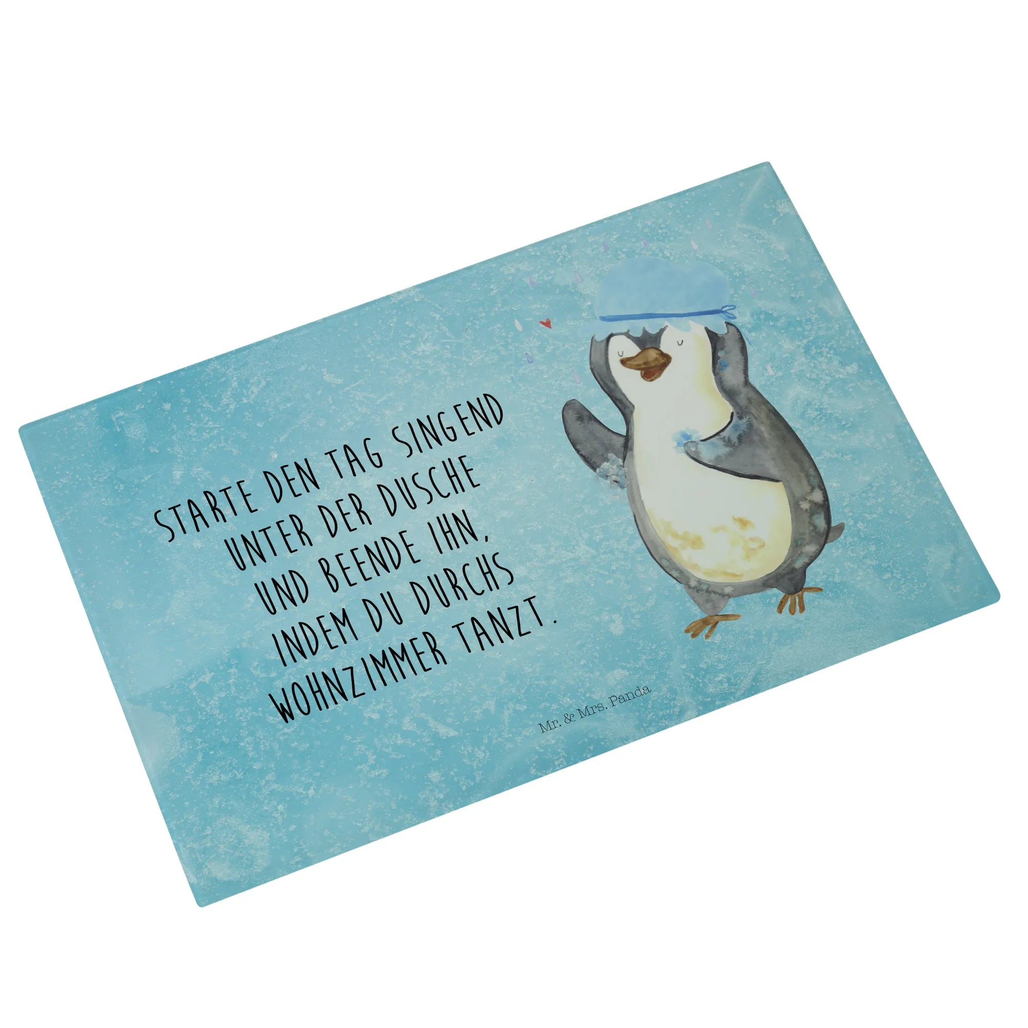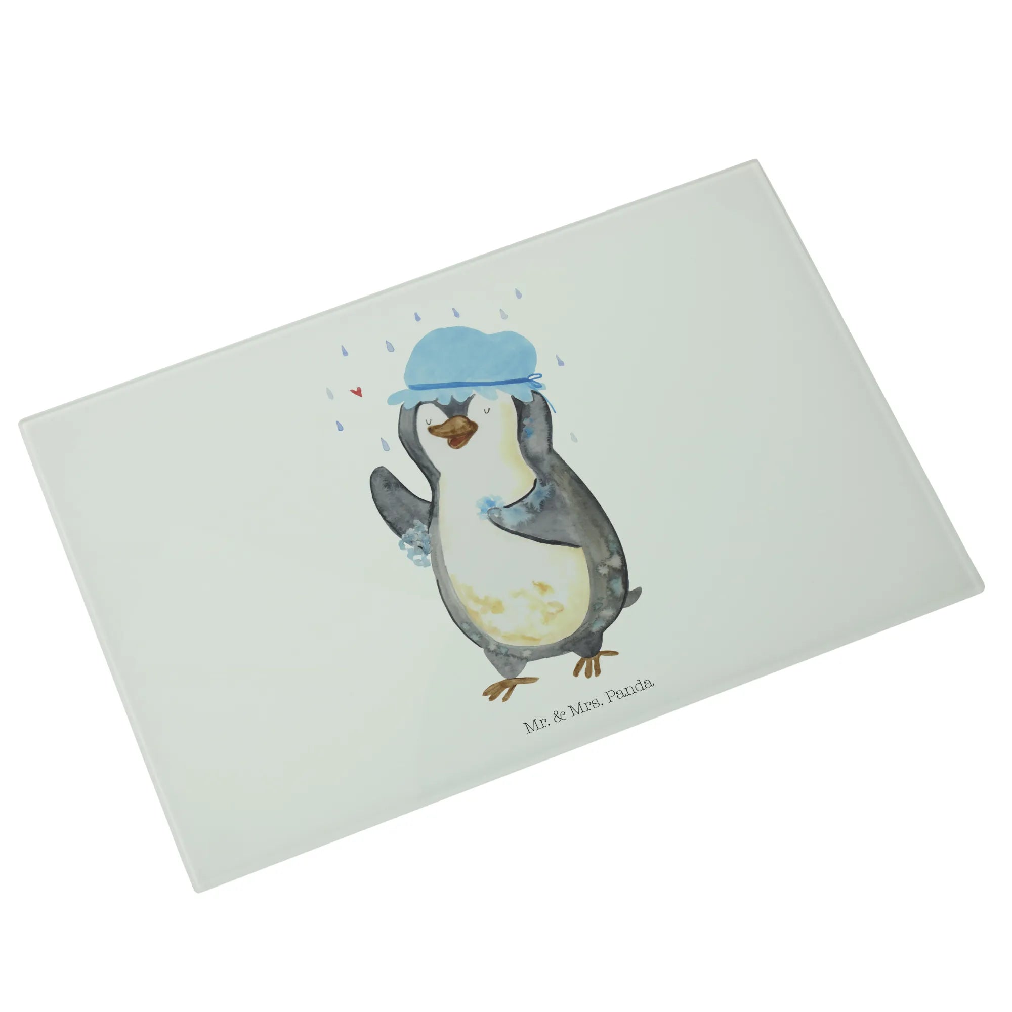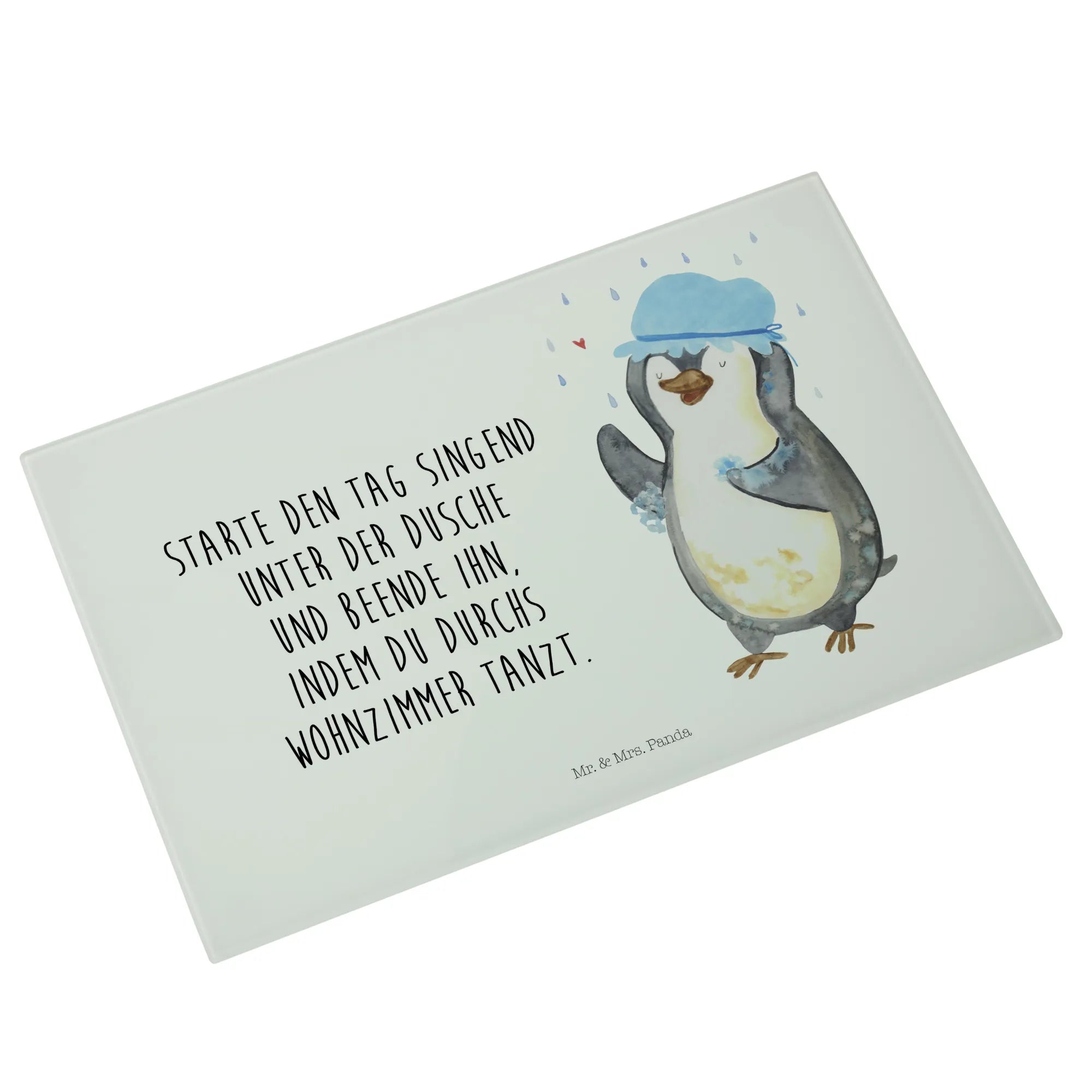 Das XL Glas Schneidbrett "Pinguin duscht" aus der liebevollen Pinguin-Kollektion von Mr. & Mrs. Panda ist das perfekte Geschenk für alle, die eine Prise gute Laune in ihrer Küche benötigen!