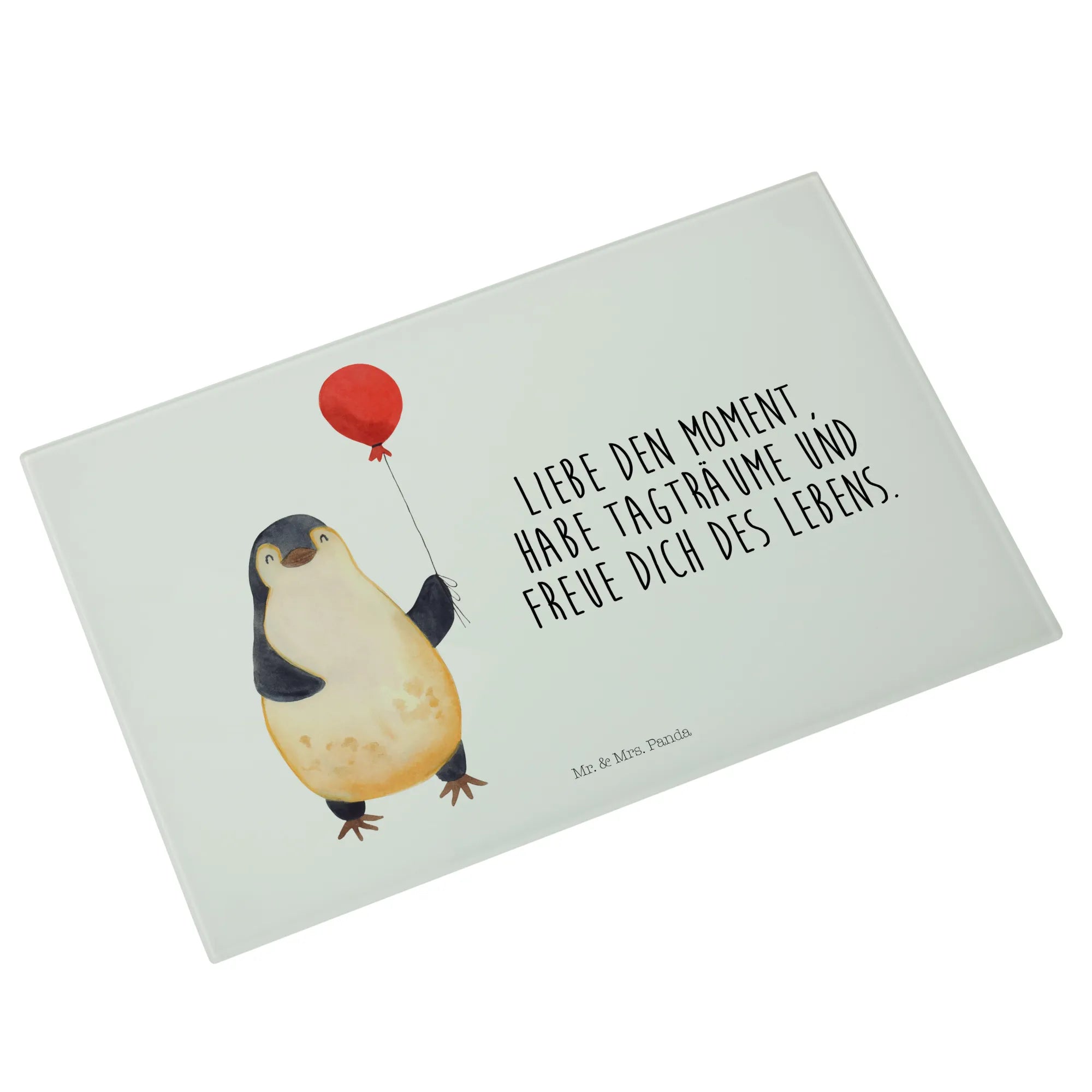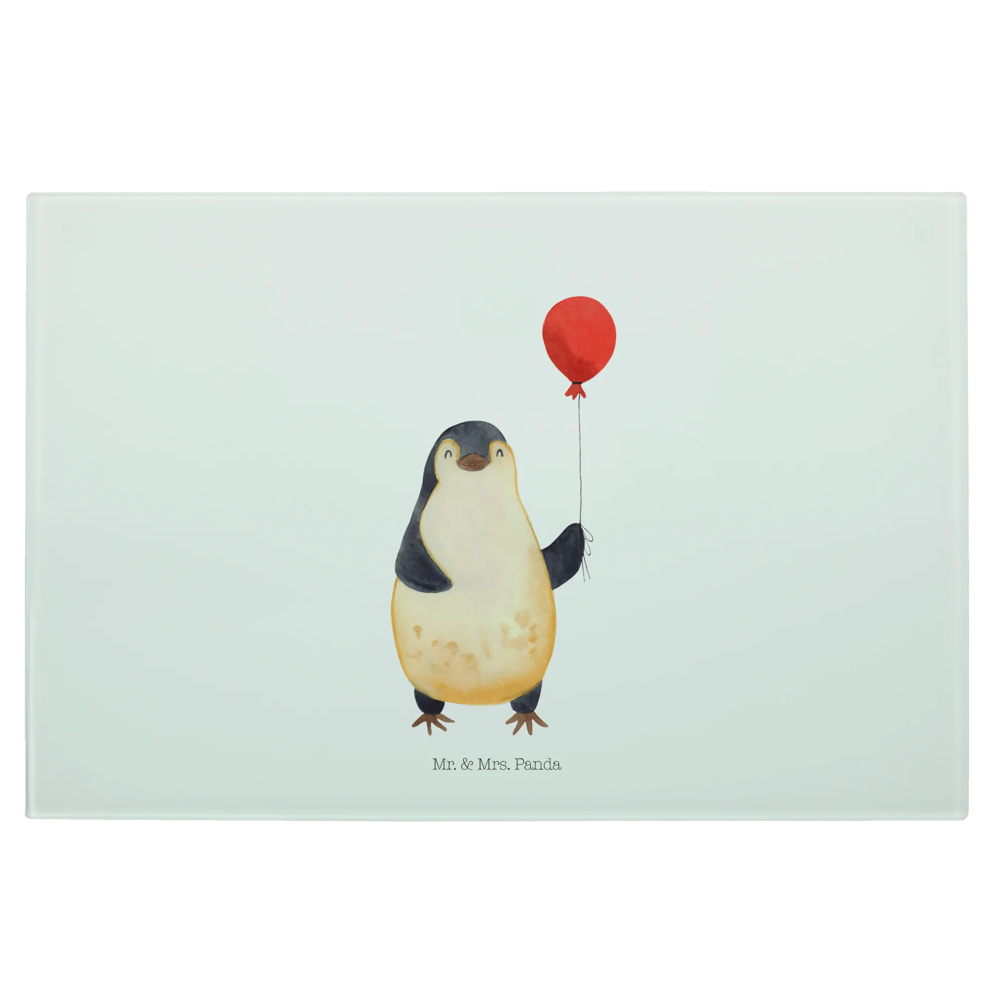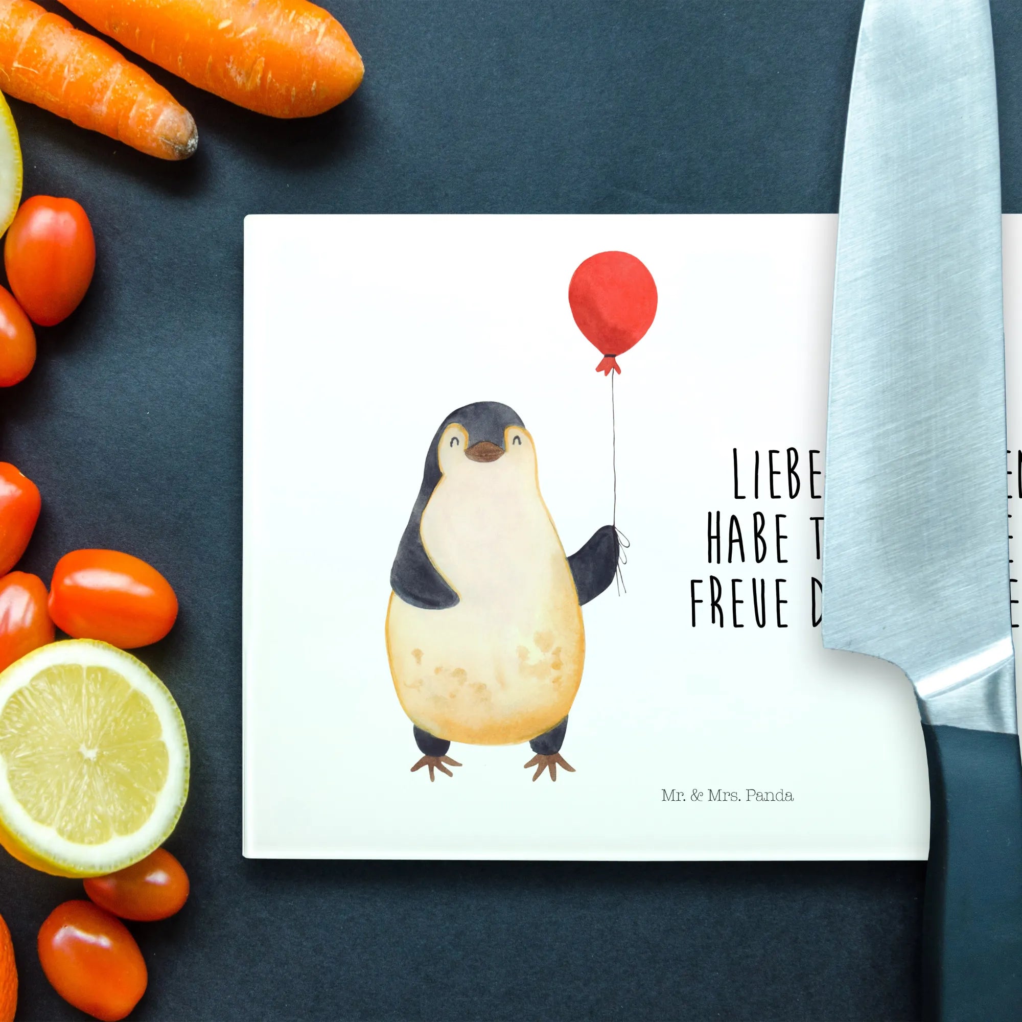 Glasschneidebrett Pinguin Luftballon - Medium Glas Schneidbrett - mit Spruch - Weiß
