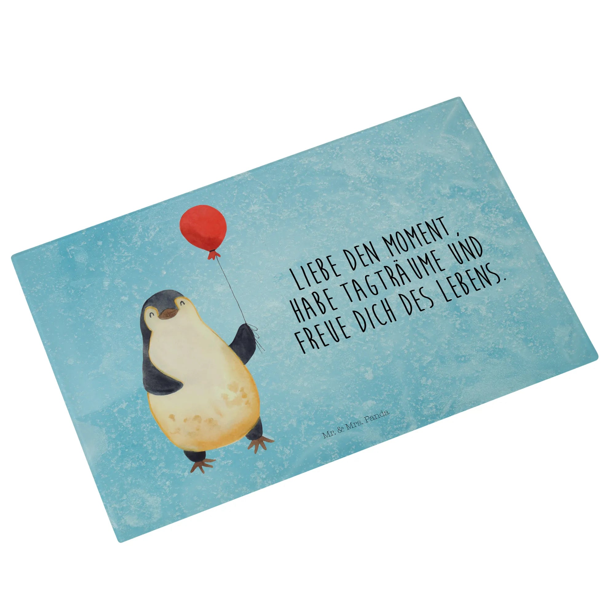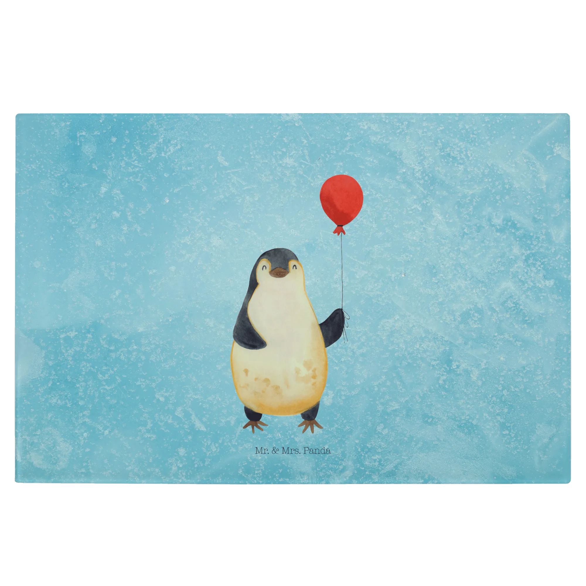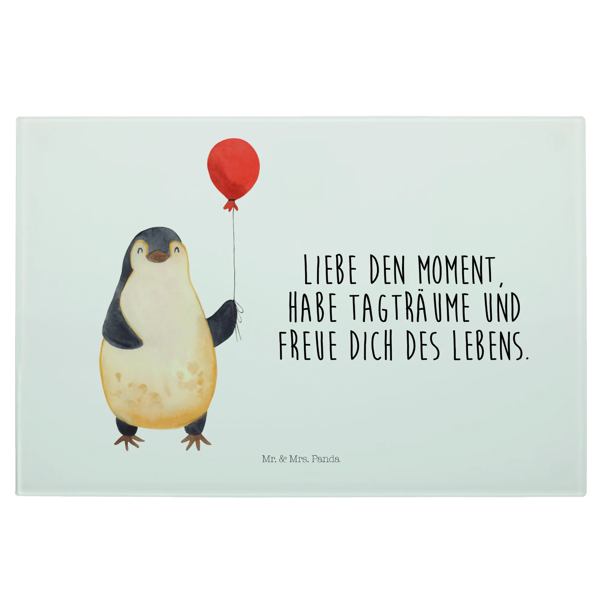 Glasschneidebrett Pinguin Luftballon - Medium Glas Schneidbrett - mit Spruch - Weiß