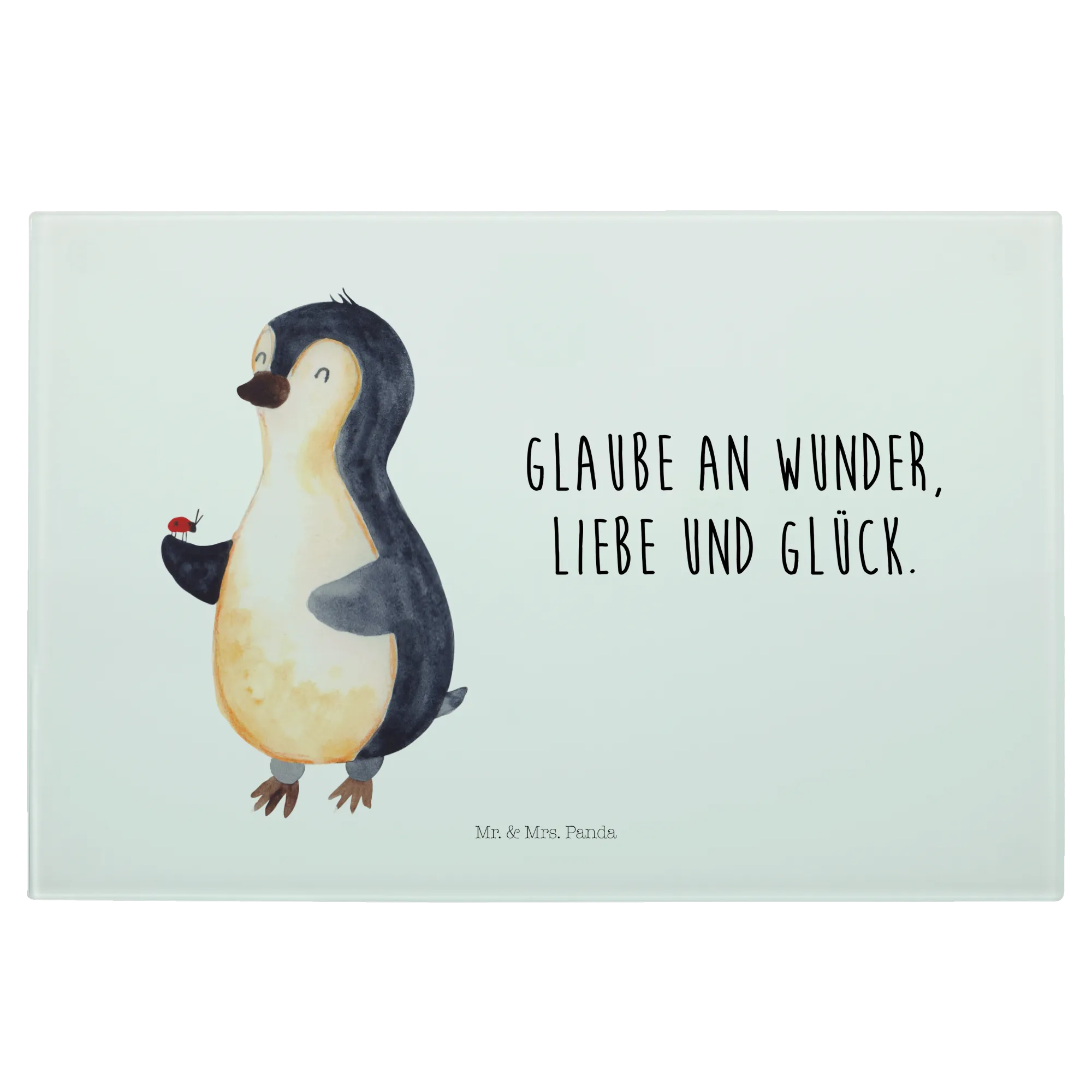 Das Medium Glas Schneidbrett mit dem süßen Pinguin Marienkäfer von Mr. & Mrs. Panda ist das perfekte Geschenk für alle, die Freude und Glück in ihrer Küche verbreiten möchten.
