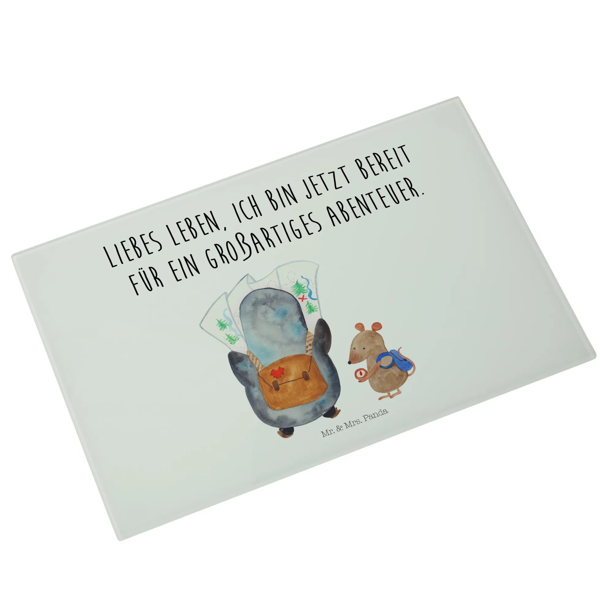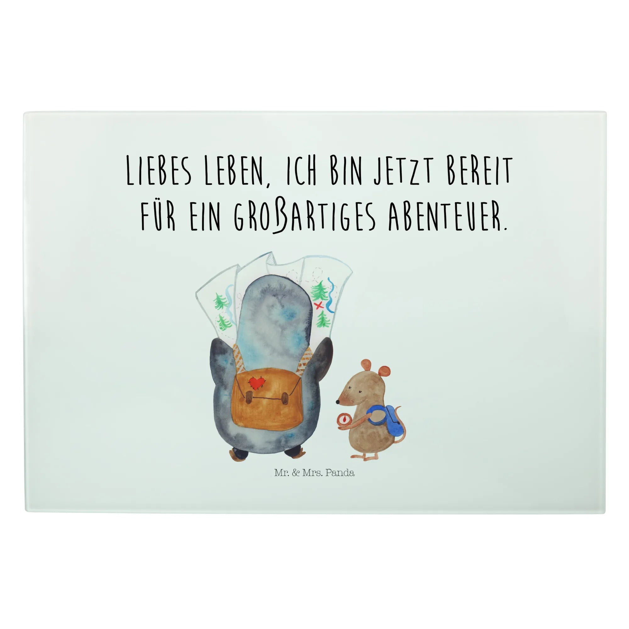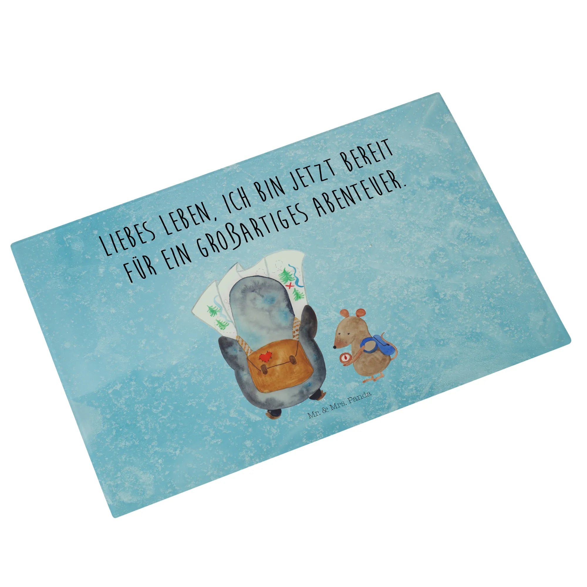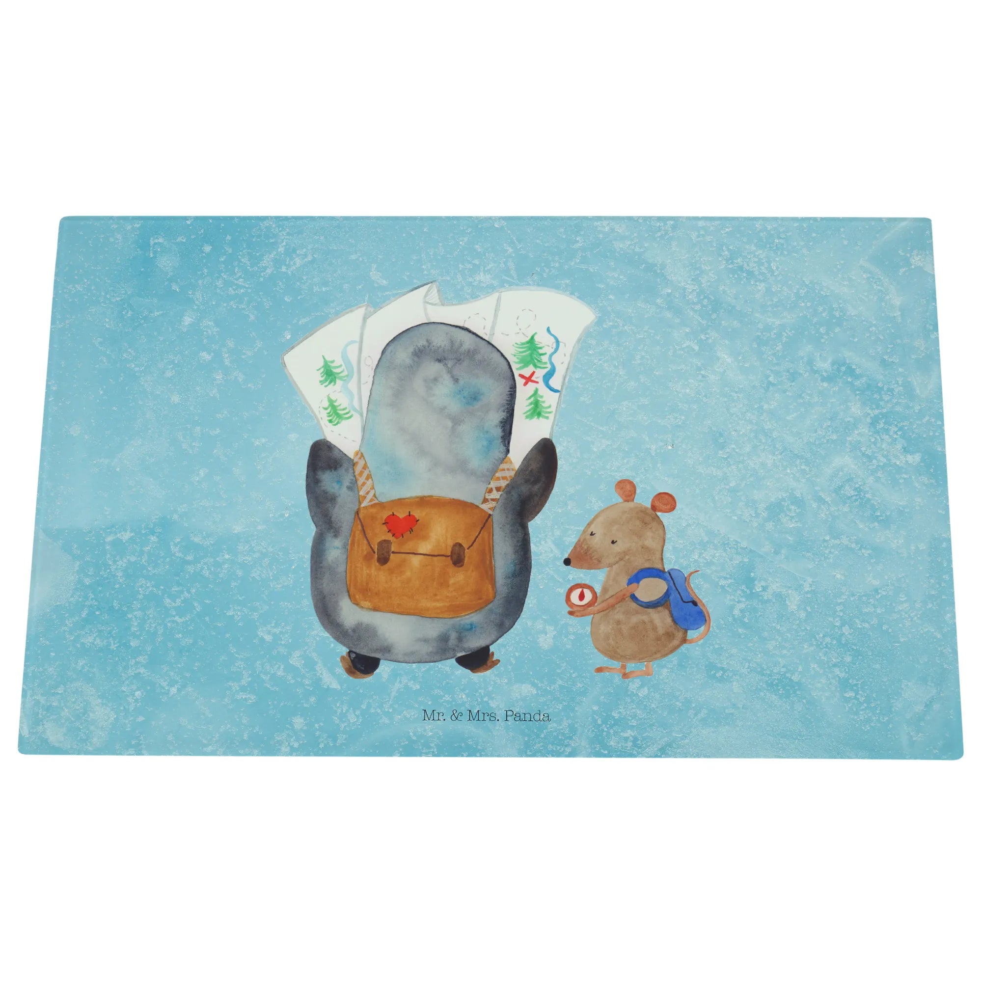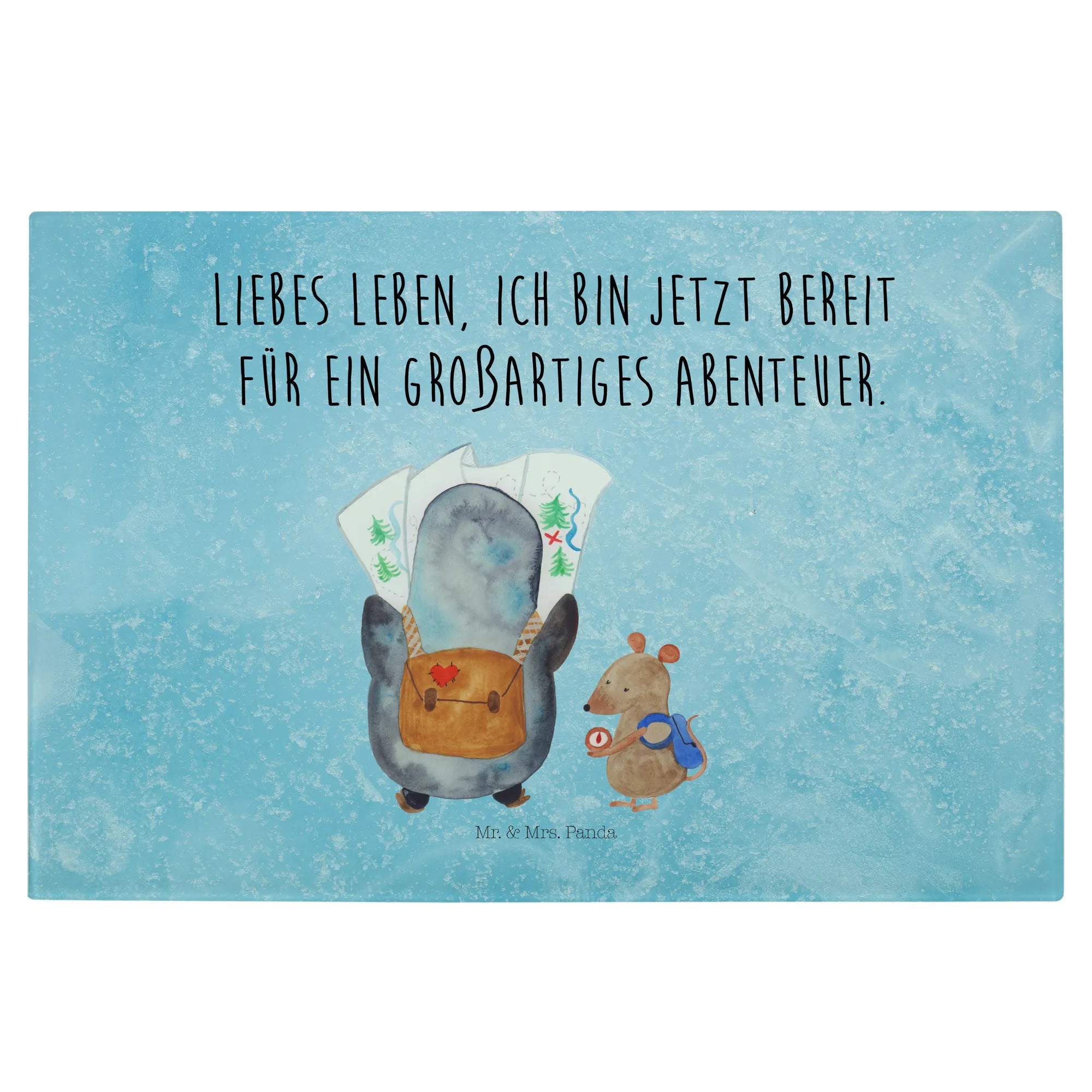 Glasschneidebrett Pinguin & Maus Wanderer - Medium Glas Schneidbrett - mit Spruch - Weiß