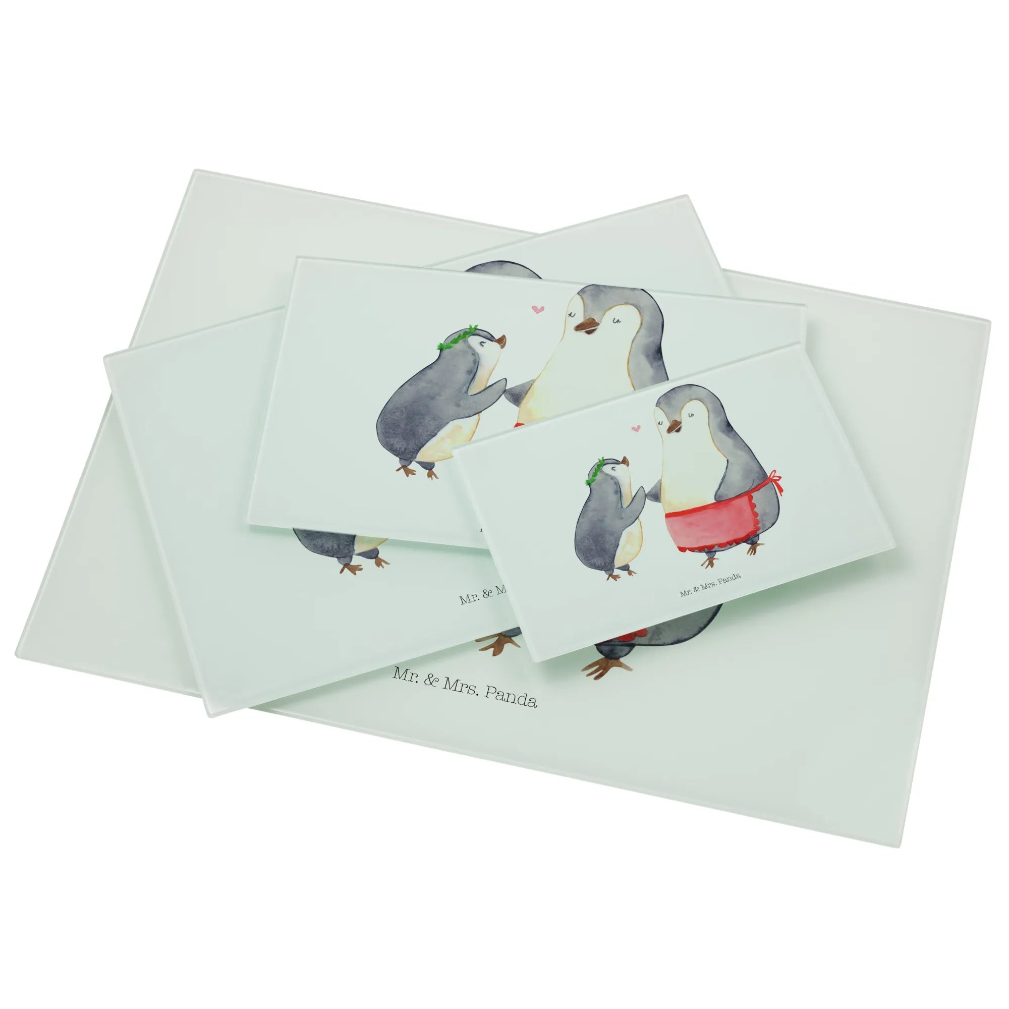 Das XL Glas Schneidbrett mit dem süßen Motiv "Pinguin mit Kind" von Mr. & Mrs. Panda ist das ideale Geschenk für alle Mamas und Muttis, die du wertschätzt. Es ist nicht nur ein praktisches Küchenutensil, sondern auch eine liebevolle Dekoration für deine Küche.